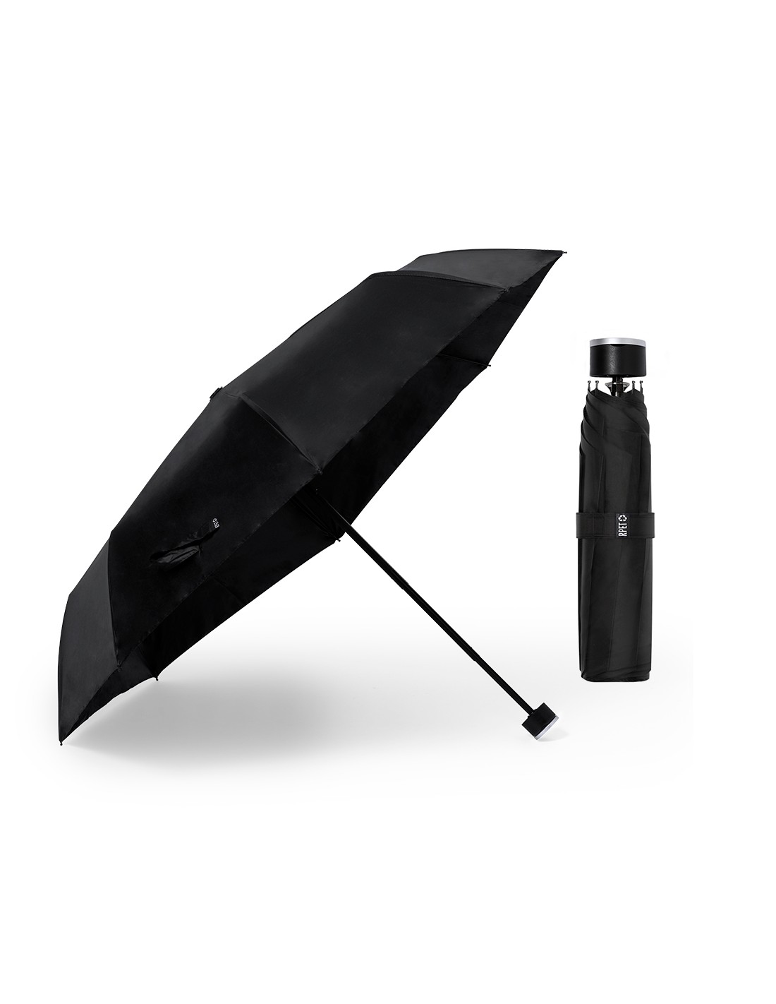 - Paraguas Pongee 190T RPET, Varillas Fibra de Vidrio, 21", Sistema Antiviento. Funda Pongee RPET