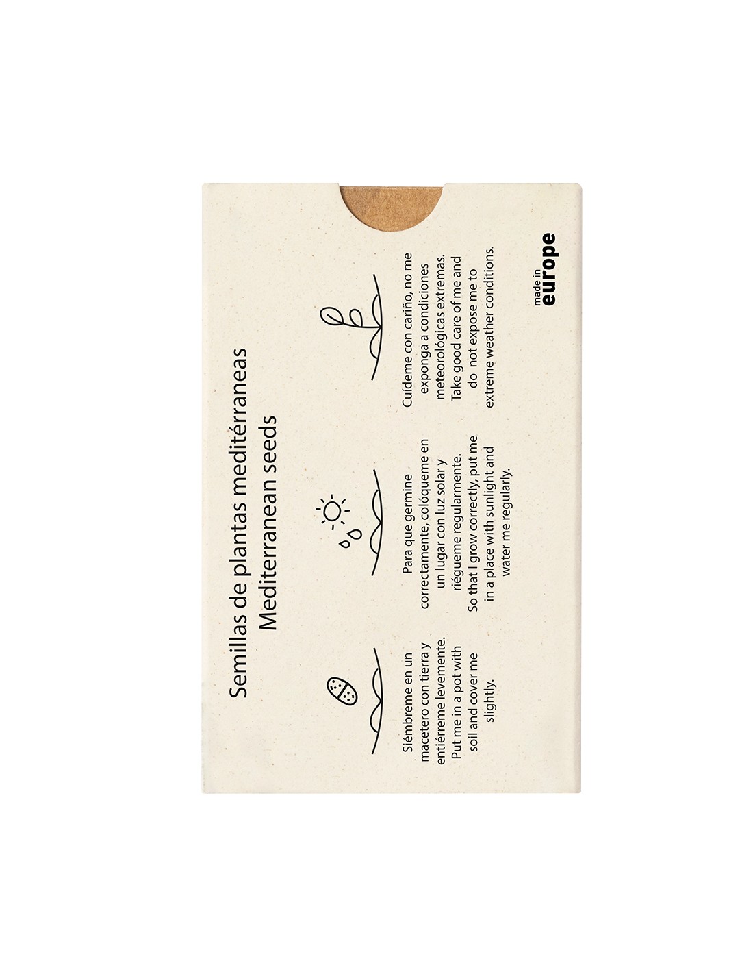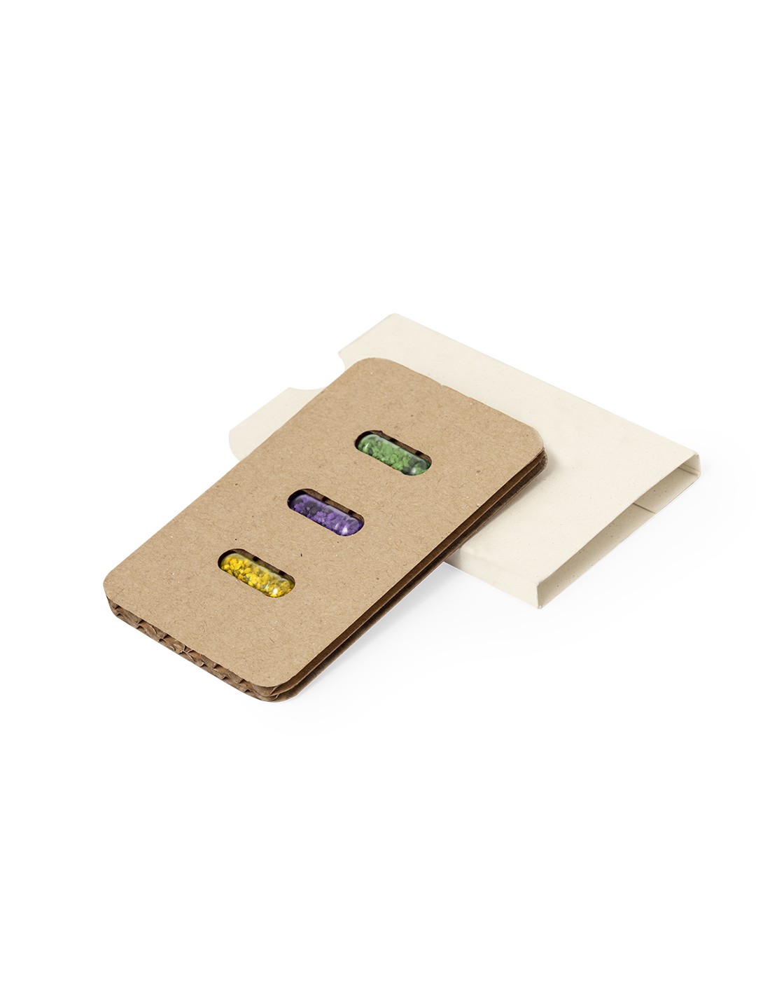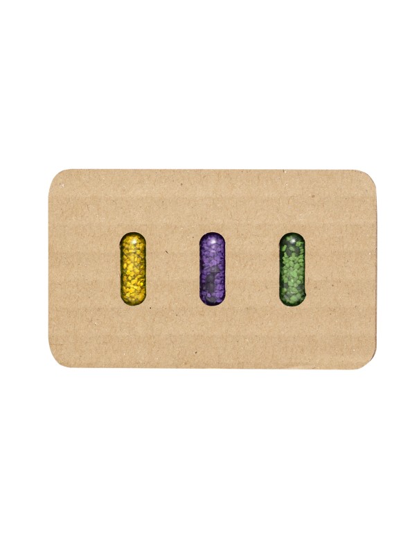 Set de cápsulas con semillas presentado en estuche troquelado de cartón reciclado con instrucciones de plantado. Este kit de huerto contiene semillas de lavanda, hinojo y eneldo.