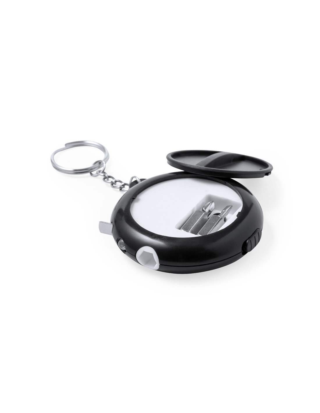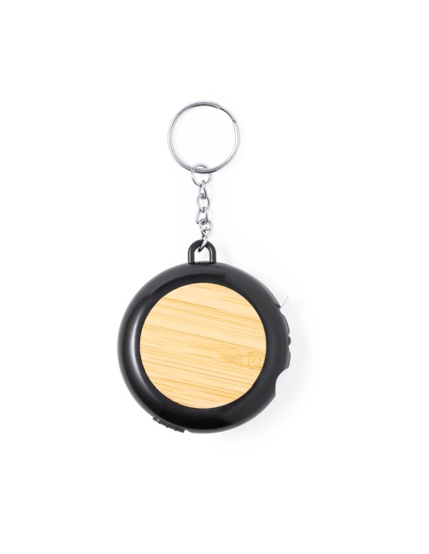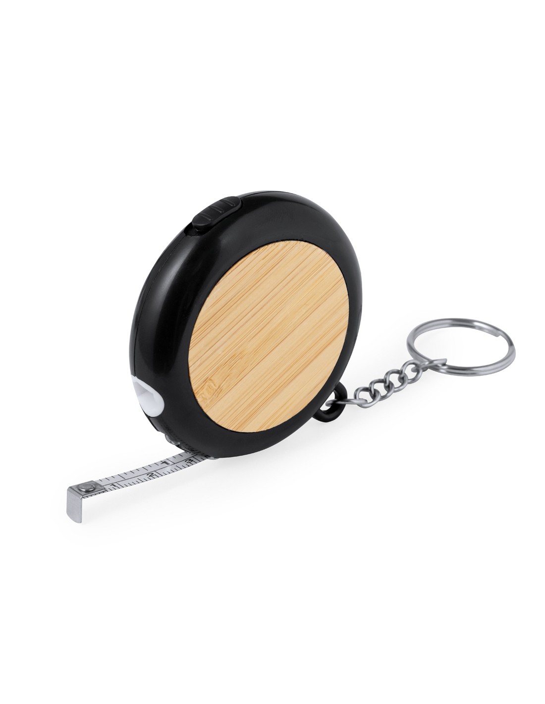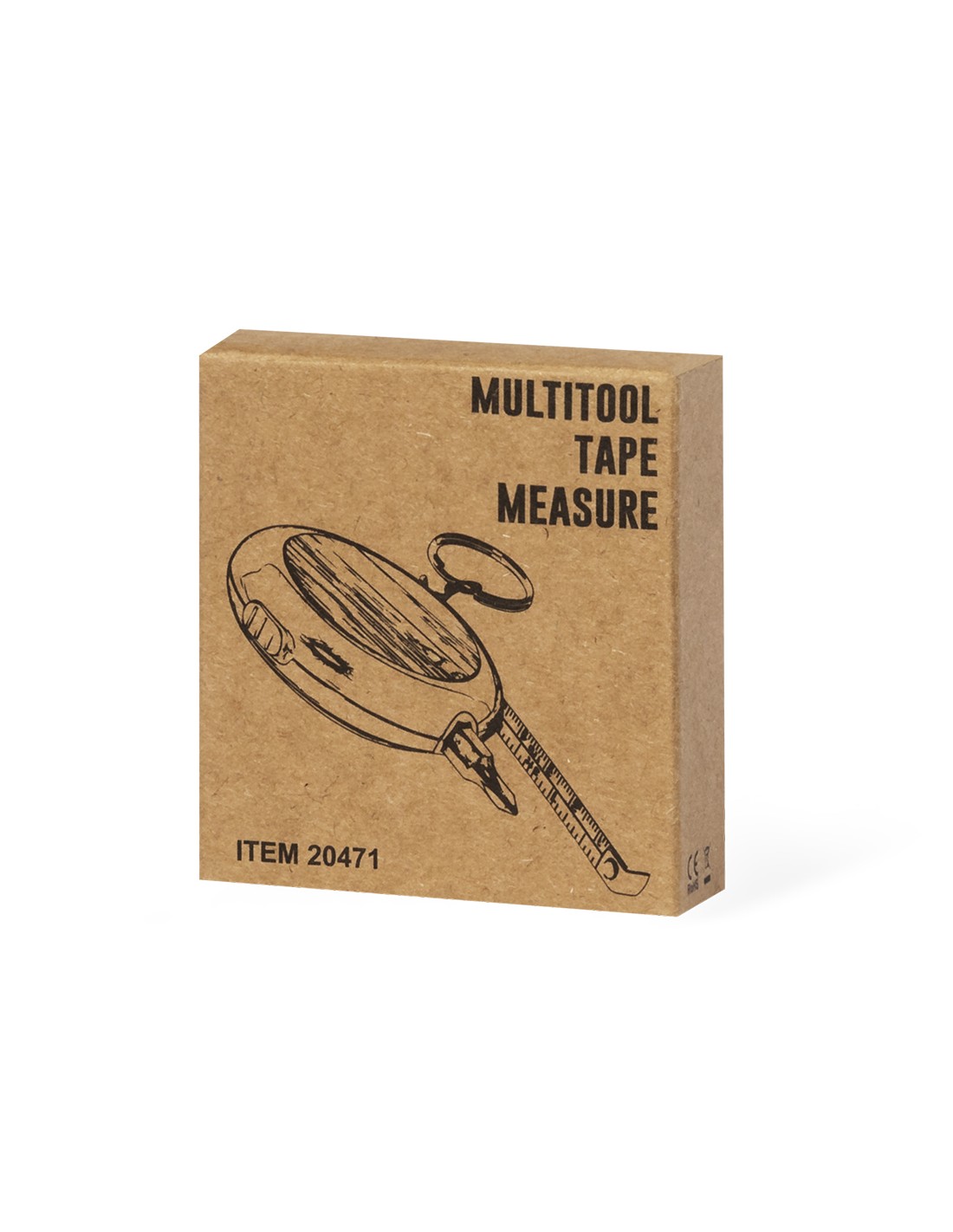 Práctico flexómetro fabricado en resistente combinación de bambú y ABS, con multiherramienta integrada en cuerpo y cierre mediante tapa. 4 funciones: linterna LED (pilas de botón incluidas), una cinta métrica de 1 metro en centí metros y pulgadas; y un cabezal destornillador magnético con puntas plana y phillips. Además, cuenta con anilla llavero y viene presentado individualmente en caja de diseño kraft. Materiales como el bambú fomentan la utilización de materias primas naturales, reduciendo las emisiones contaminantes. Proviene de una planta de gran resistencia y versatilidad, con crecimiento y regeneración rápidos, siendo una excelente alternativa al uso de madera tradicional.