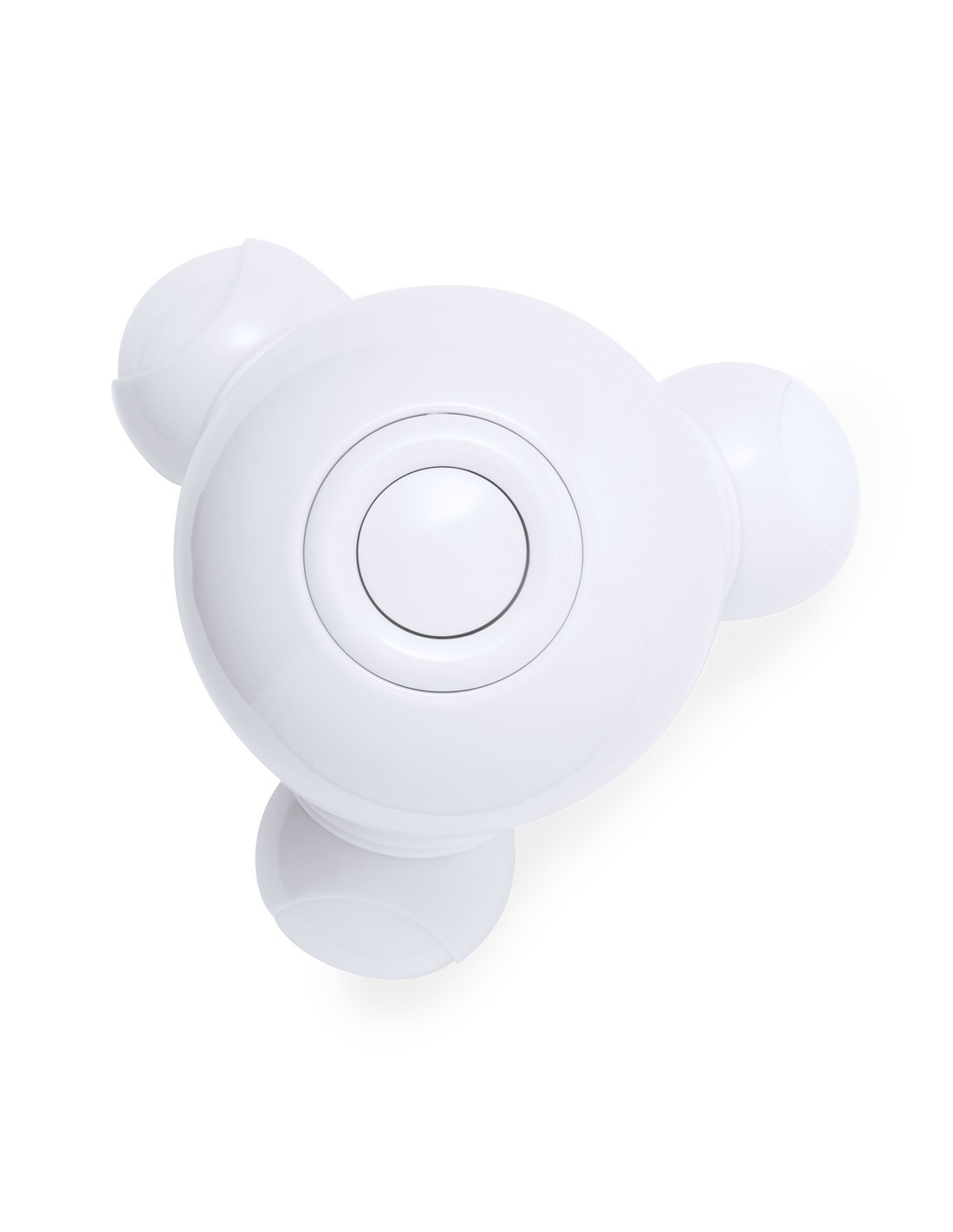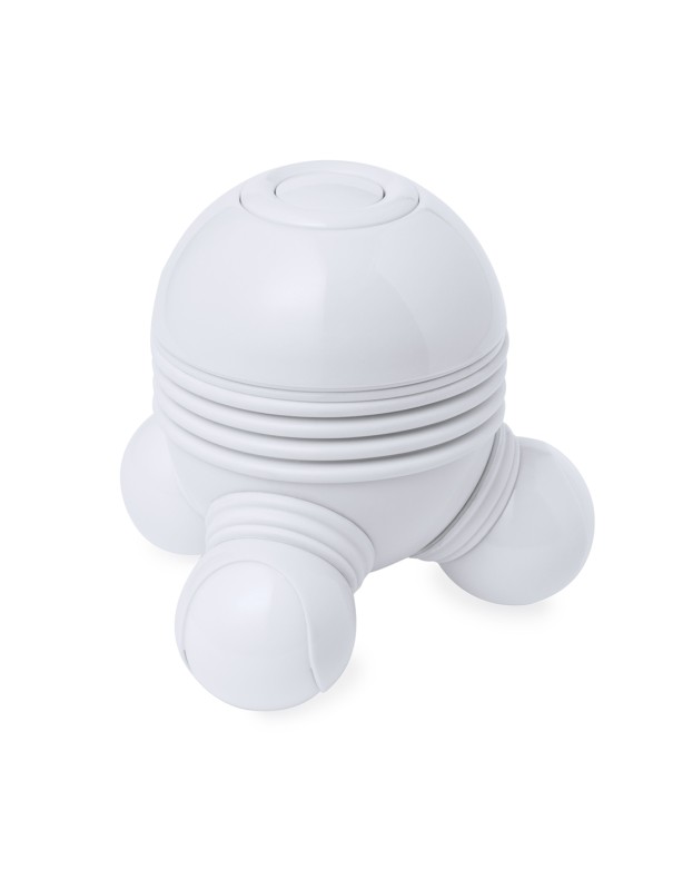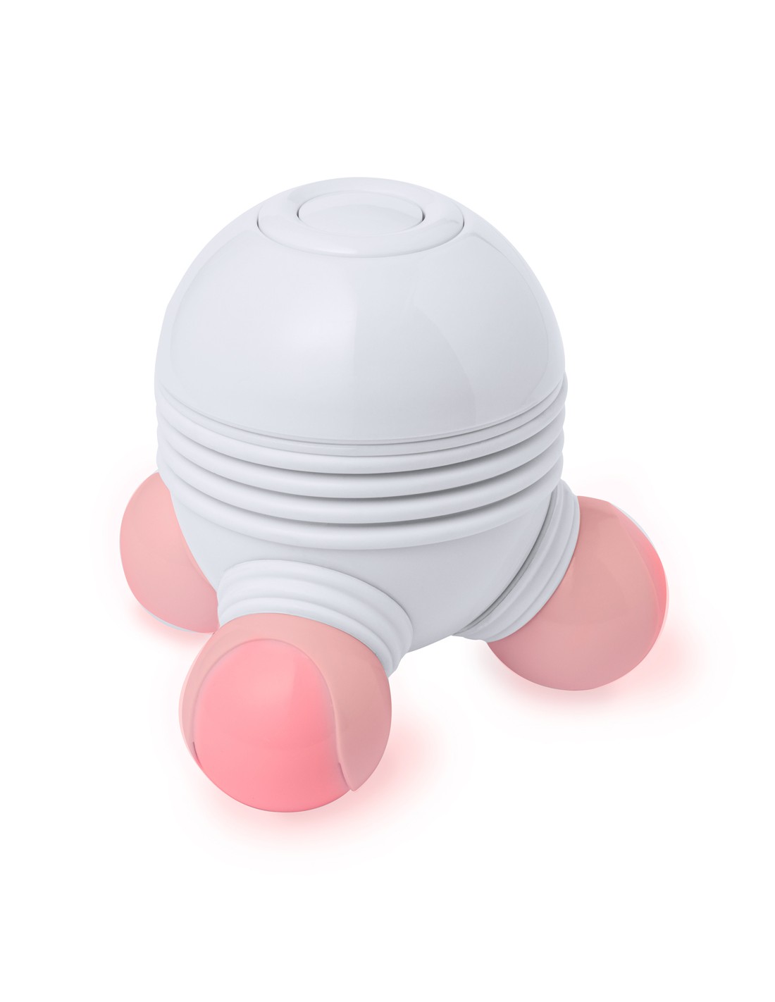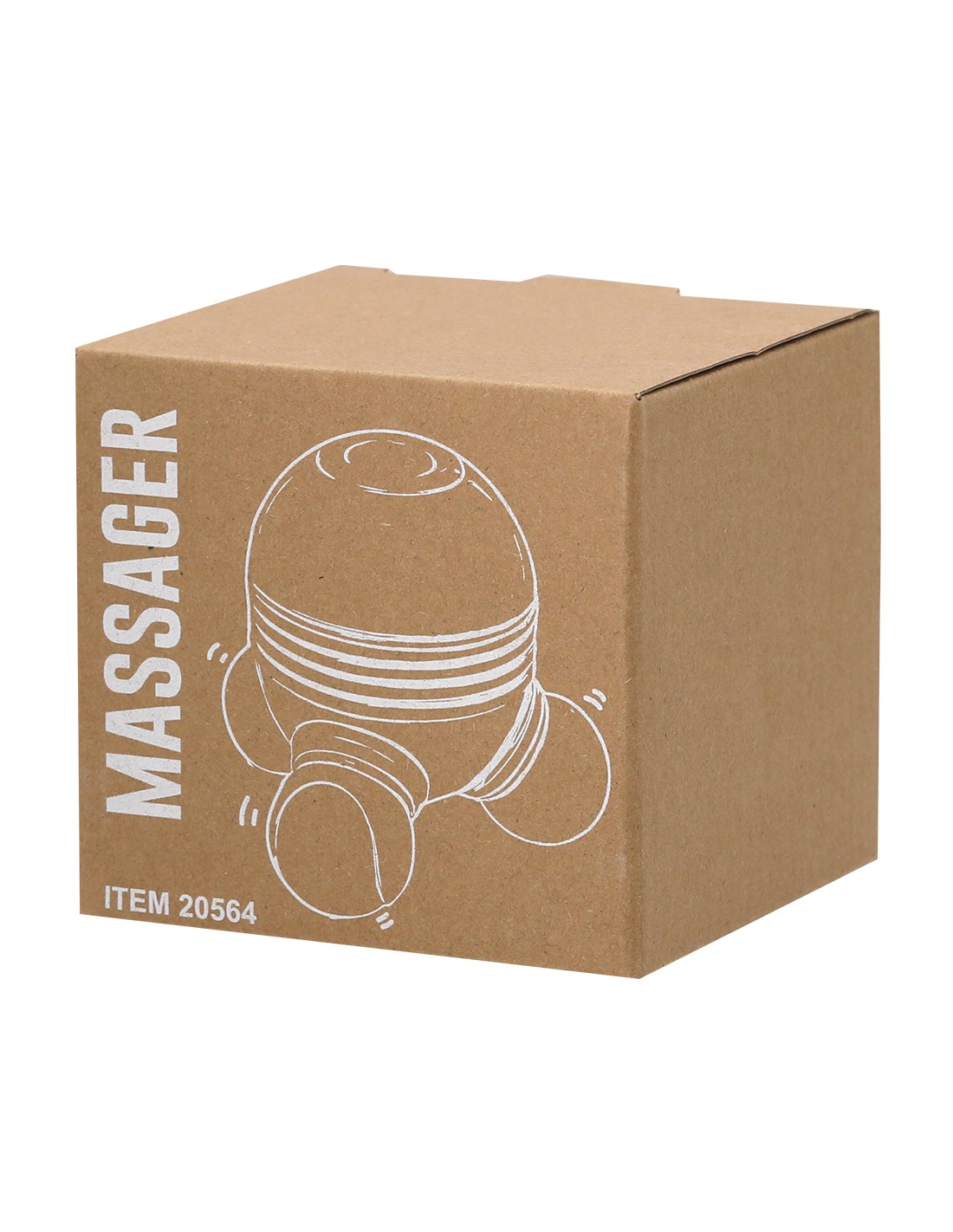 Masajeador de mano eléctrico. Excelente confort por sus propiedades de vibración, ofreciendo una experiencia de relajación y alivio. Su diseño se adapta fácilmente a la mano para un agarre firme, con luces indicadoras de funcionamiento dentro de las bolas. Compacto y portátil, alimentado por 3 pilas AAA (no incluidas). Presentado en una caja de diseño kraft.