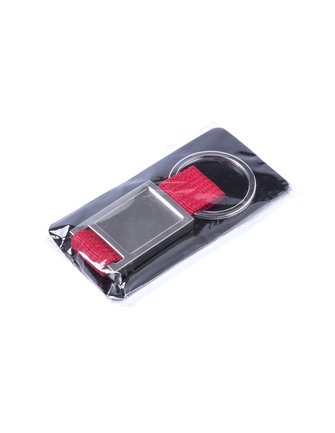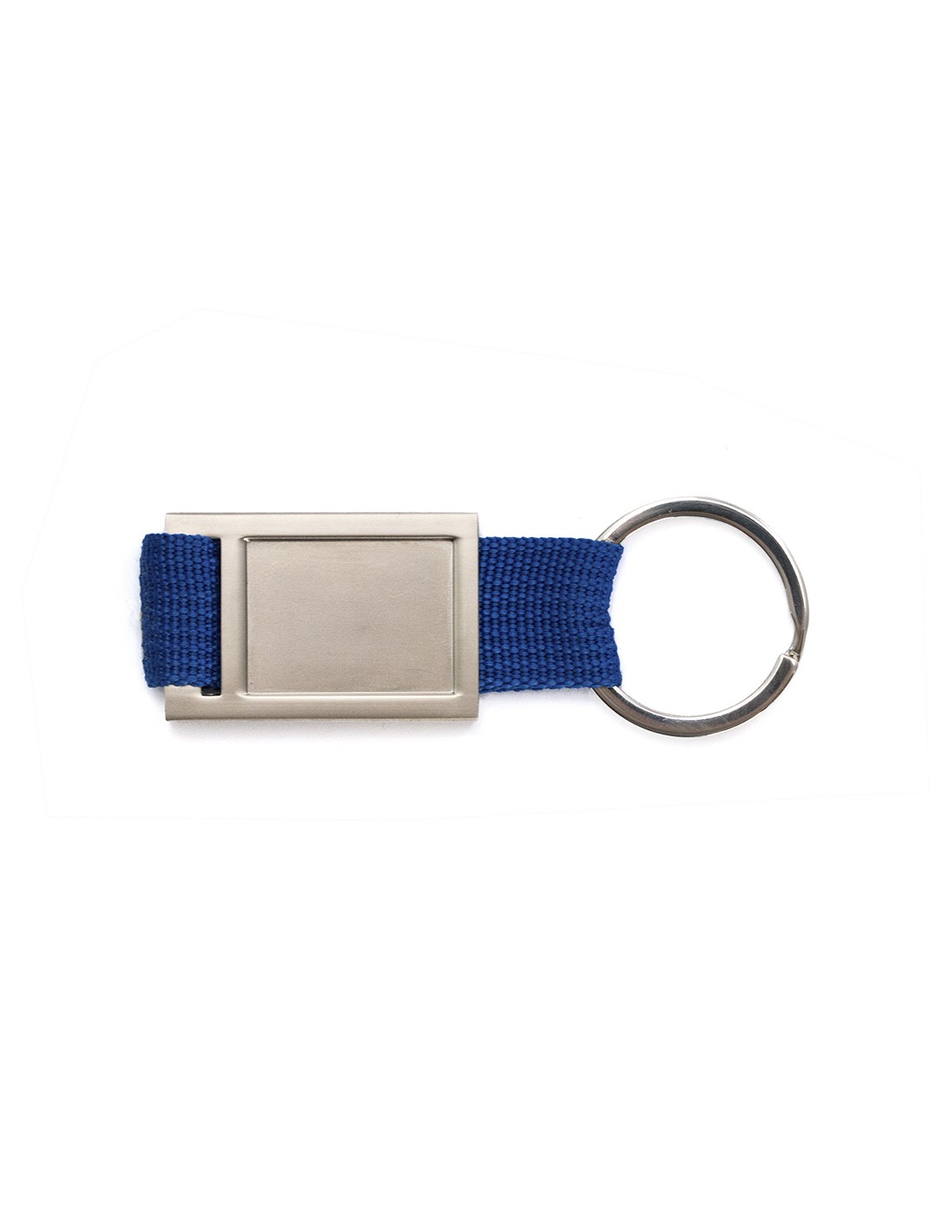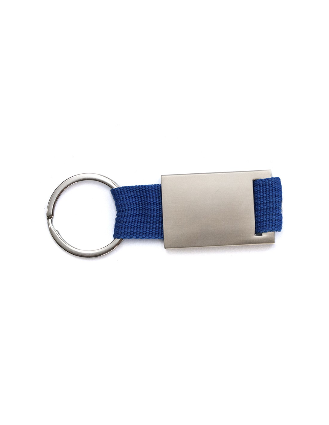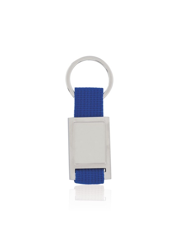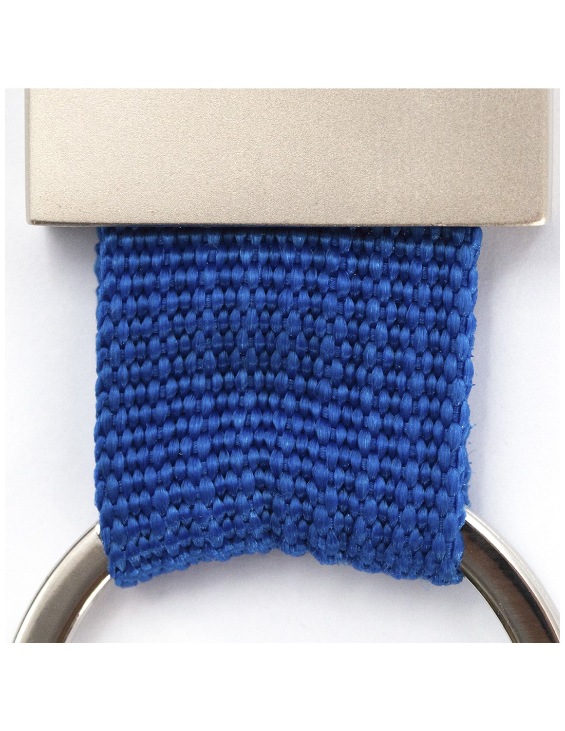 Llavero de divertido diseño con cinta de poliéster de variados y vivos colores. Con cuerpo metálico troquelado especialmente diseñado para marcaje en doming/gota de resina.