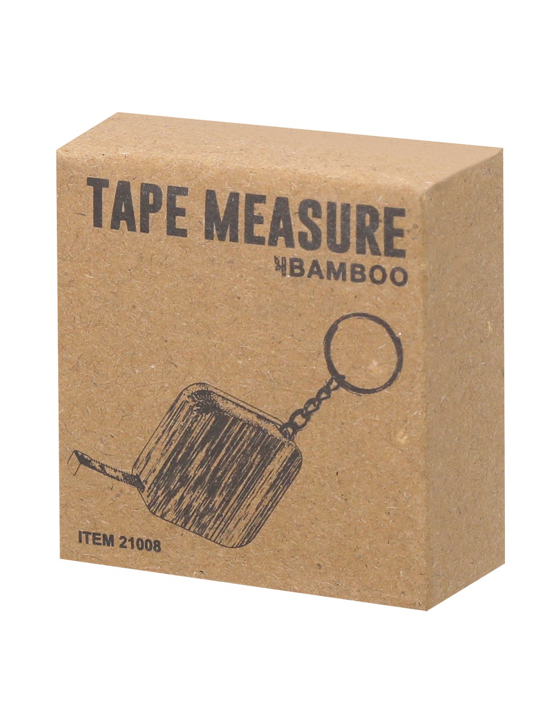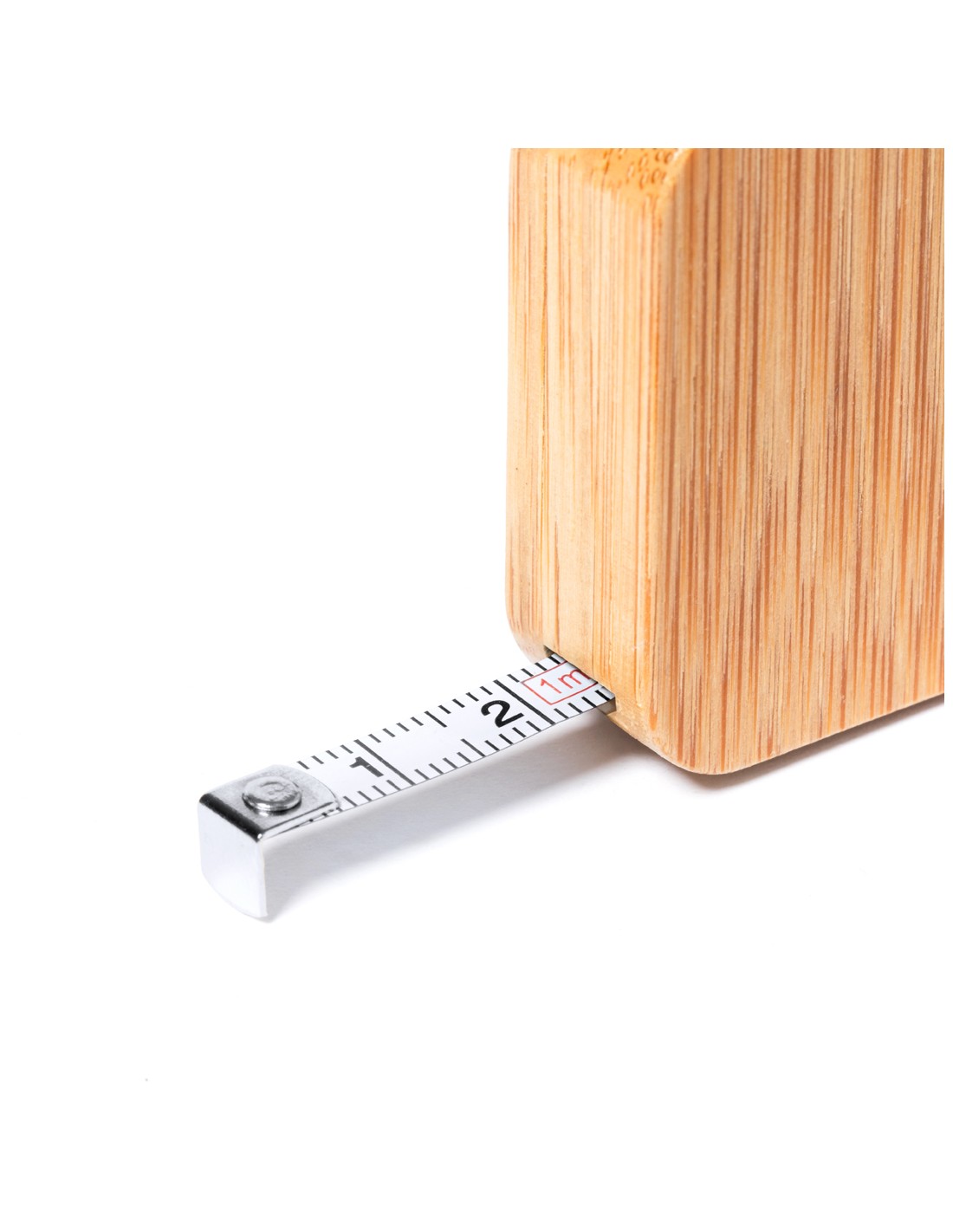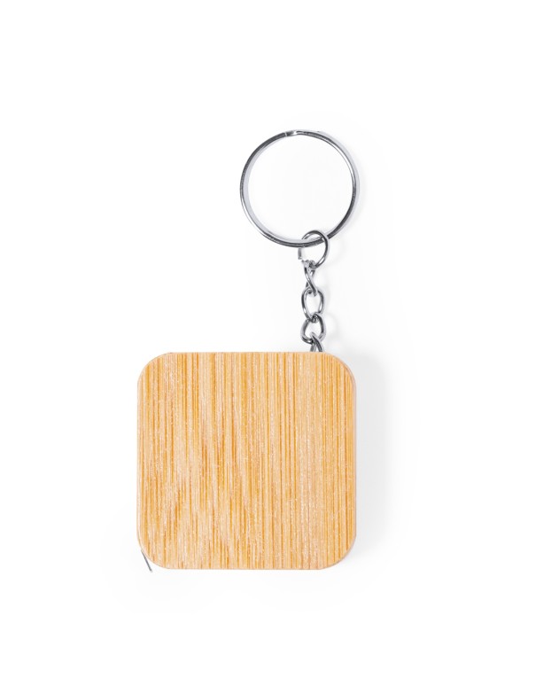 Flexómetro llavero fabricado en bambú. Con cuchilla metálica de 1 metro y medidas en centí metros.Materiales como el bambú fomentan la utilización de materias primas naturales, reduciendo las emisiones contaminantes. Proviene de una planta de gran resistencia y versatilidad, con crecimiento y regeneración rápidos, siendo una excelente alternativa al uso de madera tradicional.