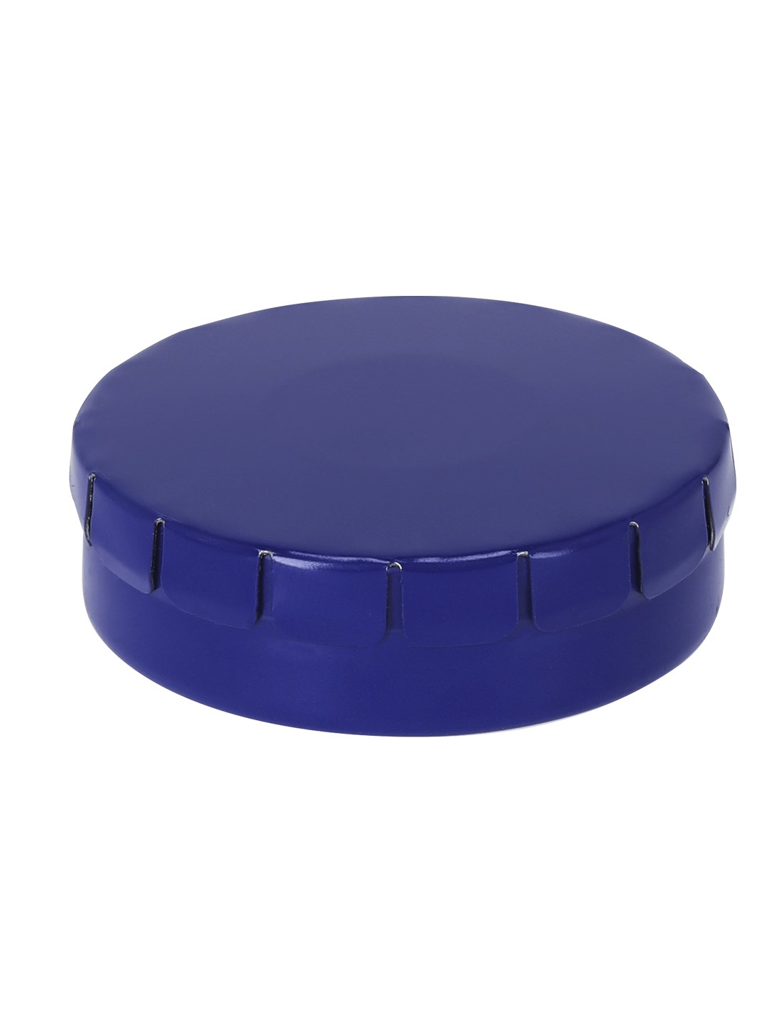 Dispensador de caramelos de menta sin azúcar de 12 gr. En caja de metal con tapadera a presión.