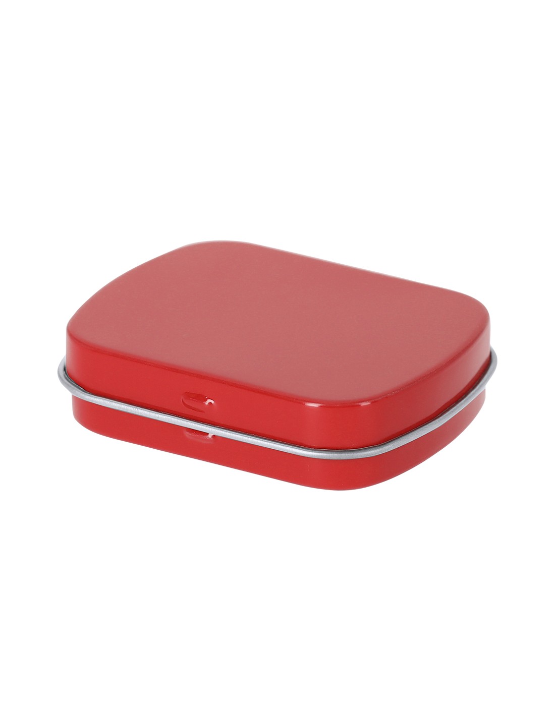 Dispensador de caramelos de menta sin azúcar de 23 gr. En caja de metal con sistema de apertura de bisagra.