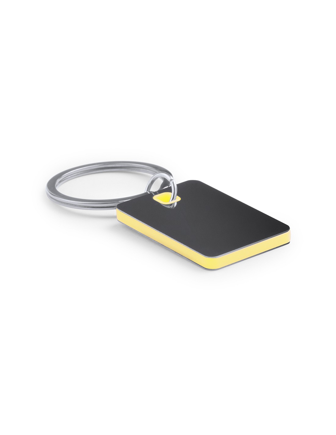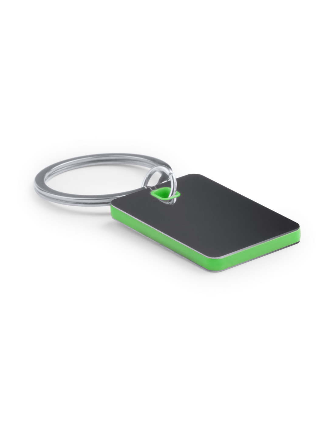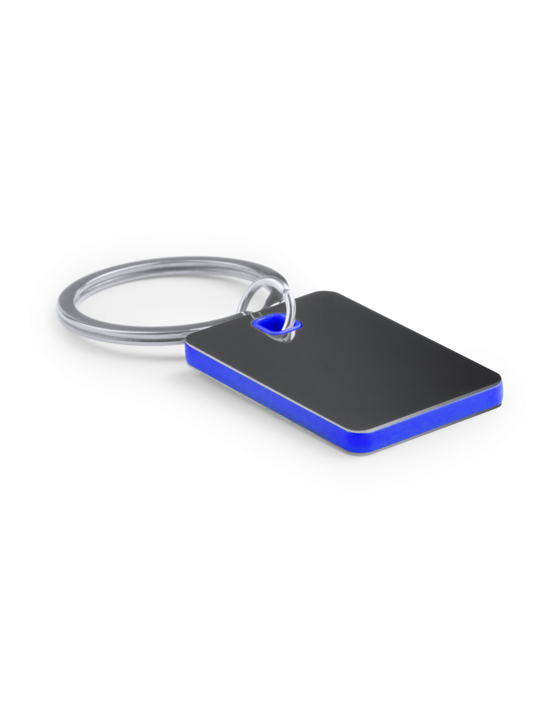 Llavero de acero inox en diseño bicolor de variados colores y especialmente diseñado para marcaje en láser.