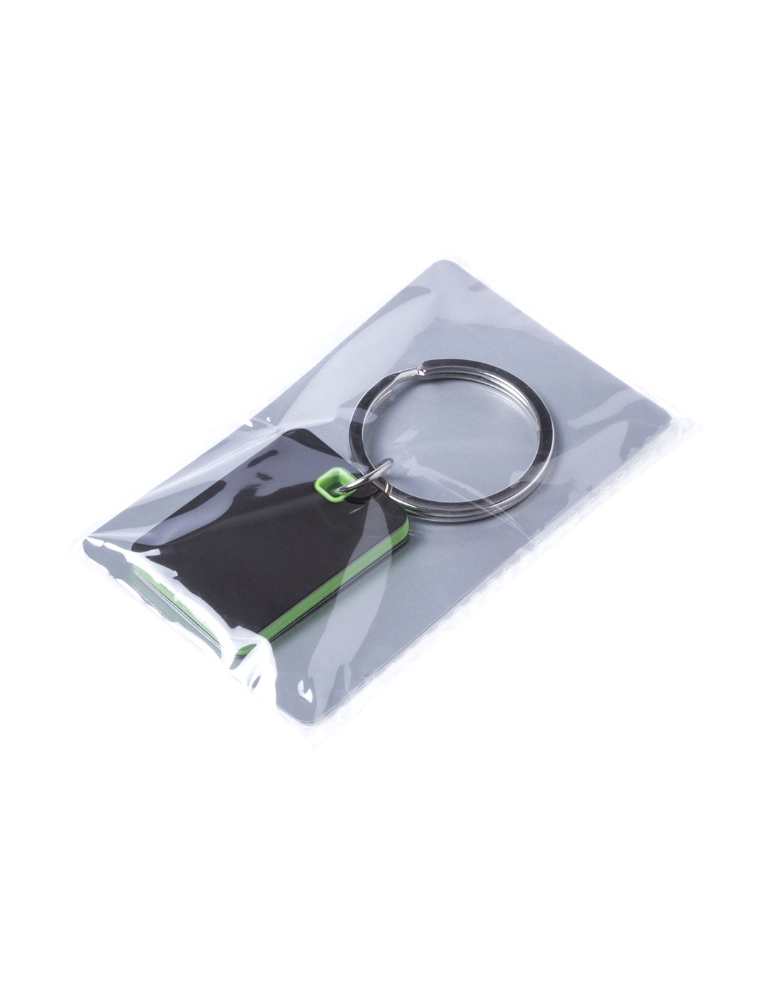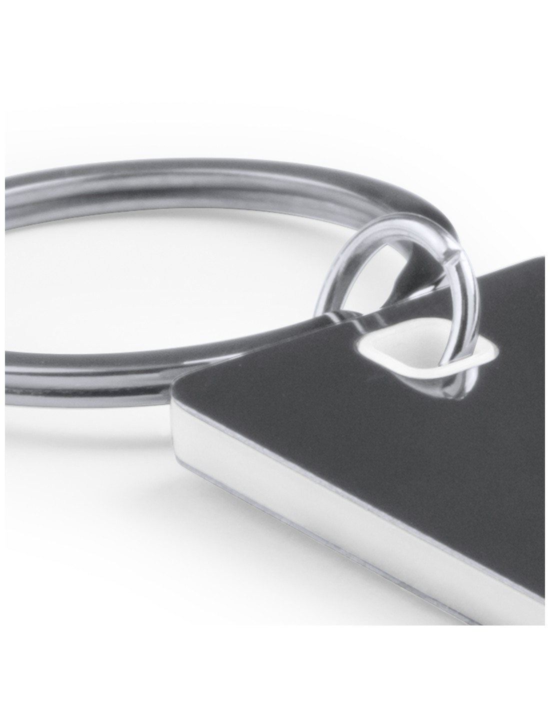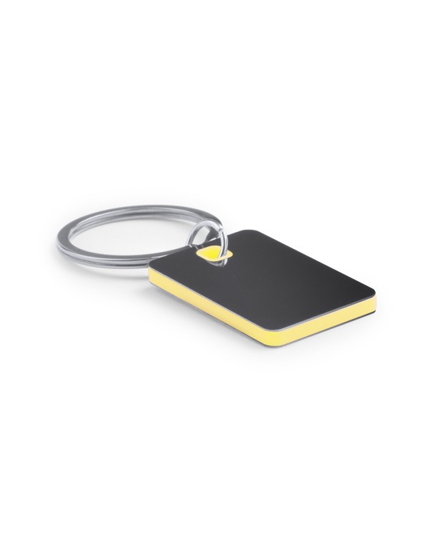 Llavero de acero inox en diseño bicolor de variados colores y especialmente diseñado para marcaje en láser.
