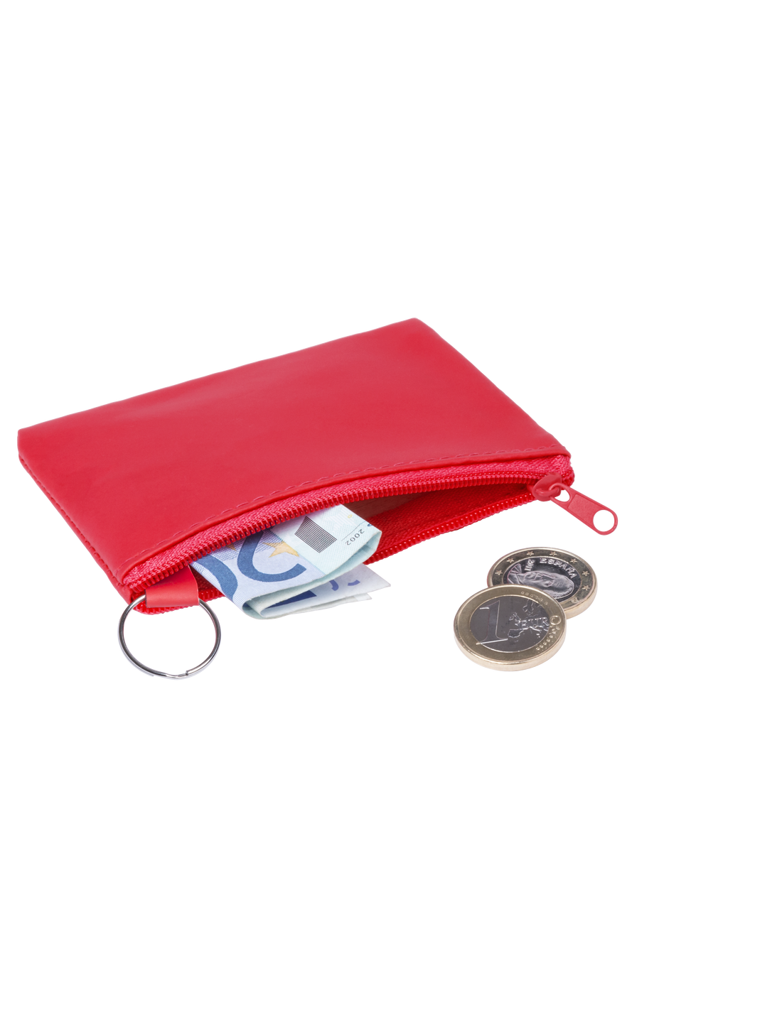 Monedero de suave polipiel en variada gama de vivos colores. Con cierre de cremallera a juego y anilla llavero interior.