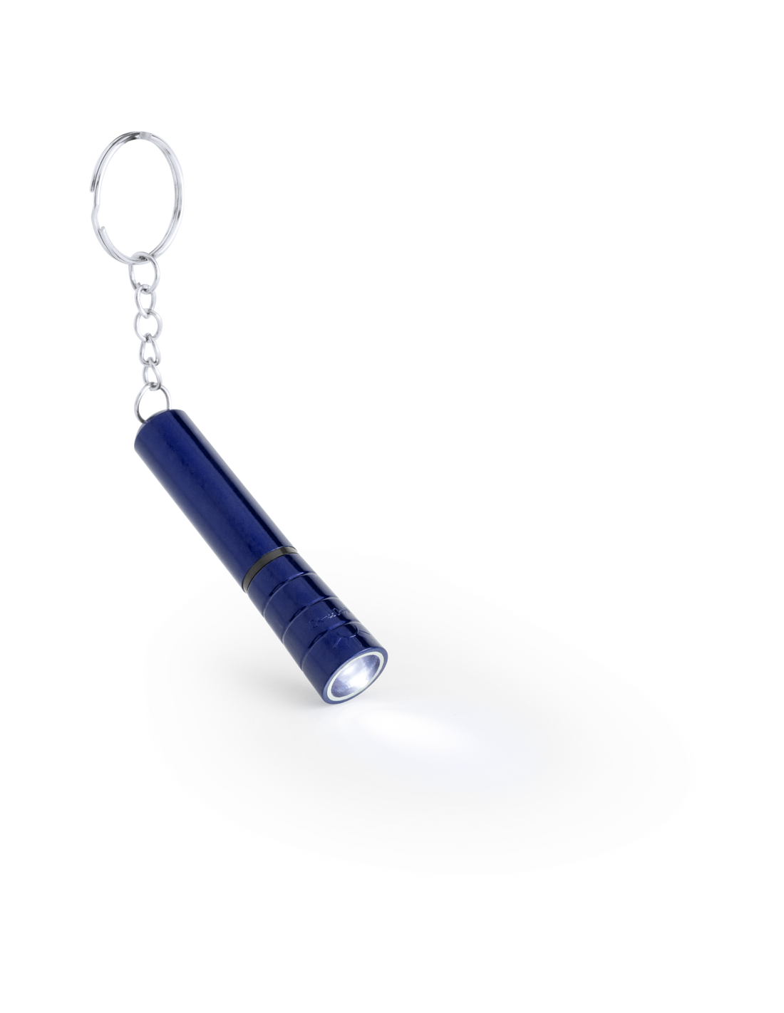 Llavero linterna led con cuerpo de suave acabado brillante en variados colores. Pilas de botón incluidas.