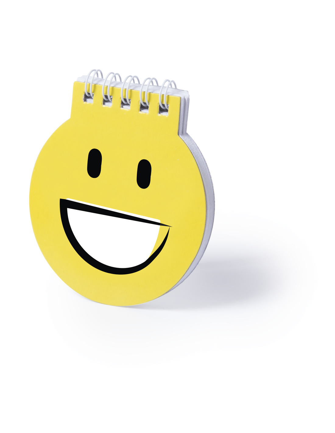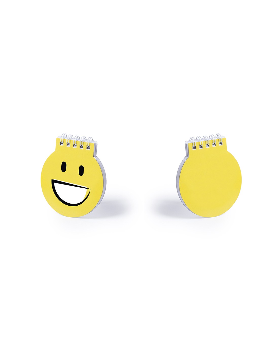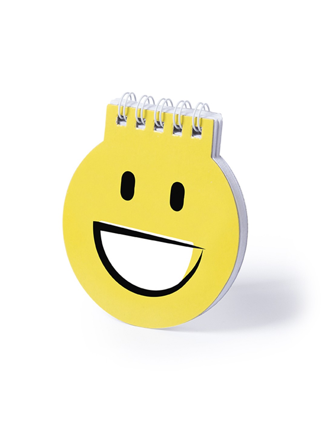 Libreta de divertidos diseños emoji en llamativo color amarillo. De anillas blancas, con tapas de cartón rígidas de suave acabado brillante y 40 hojas lisas.