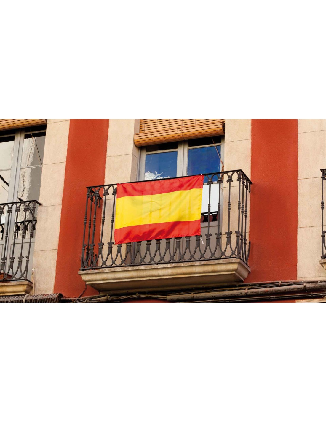 Bandera de España en suave y resistente poliéster con cintas de ajuste.
