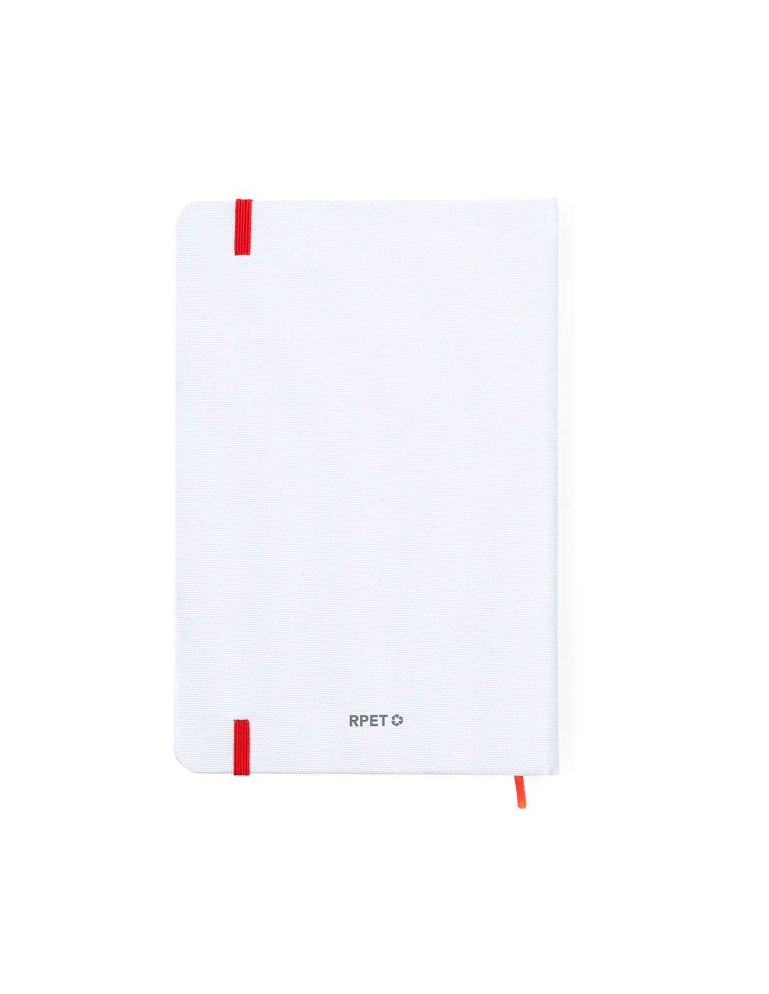 Bloc de notas con tapas rígidas elaboradas con RPET 600D. Con portada y contraportada en blanco, de 100 páginas en lisas, con banda elástica y marcapáginas en variados y vivos colores. Especialmente diseñado para marcaje a todo en sublimación. Con logotipo RPET en contraportada. Presentado en bolsa individual. El material RPET se elabora a partir de plástico reciclado, para así fomentar la reutilización de residuos plásticos y ayudar a la sostenibilidad del planeta.