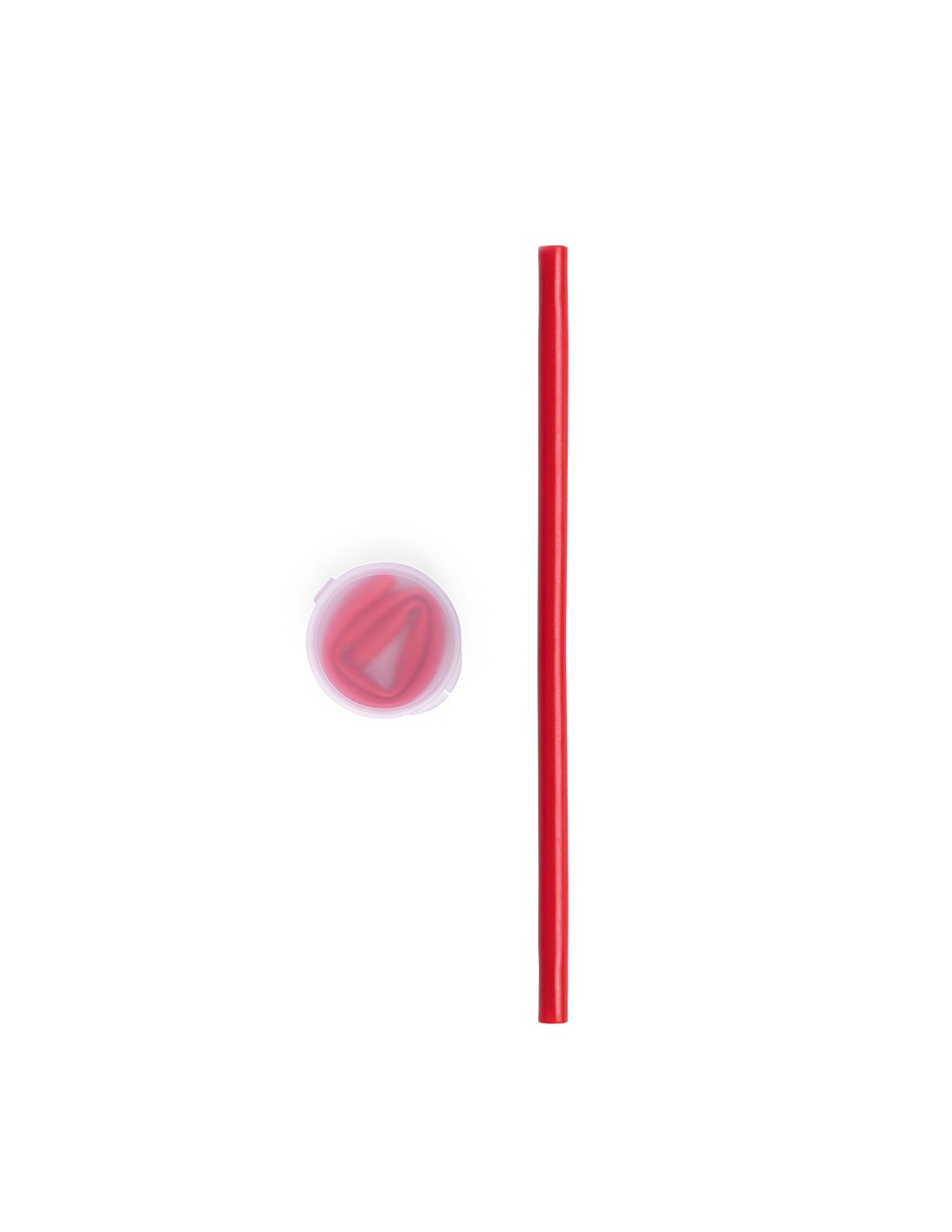 Pajita de silicona flexible y reutilizable, de 25,5cm de largo. Disponible en variada gama de colores brillantes y presentada en estuche de PP con acabado translúcido.