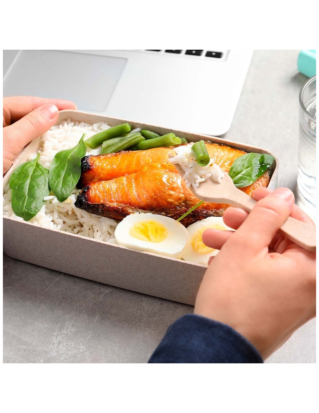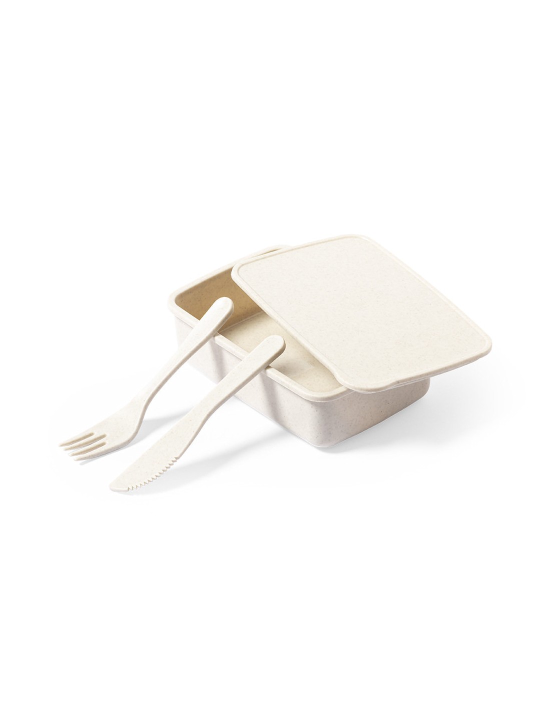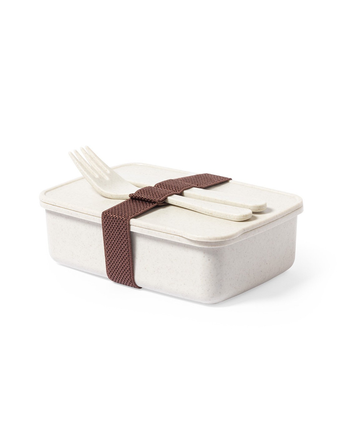 Fiambrera fabricada en PP veteado libre de BPA. De 700ml de capacidad, incluye cinta elástica de seguridad con tenedor y cuchillo. Certificación Food Grade, garantizando la seguridad cuando los alimentos entran en contacto con el material usado para fabricar el producto.