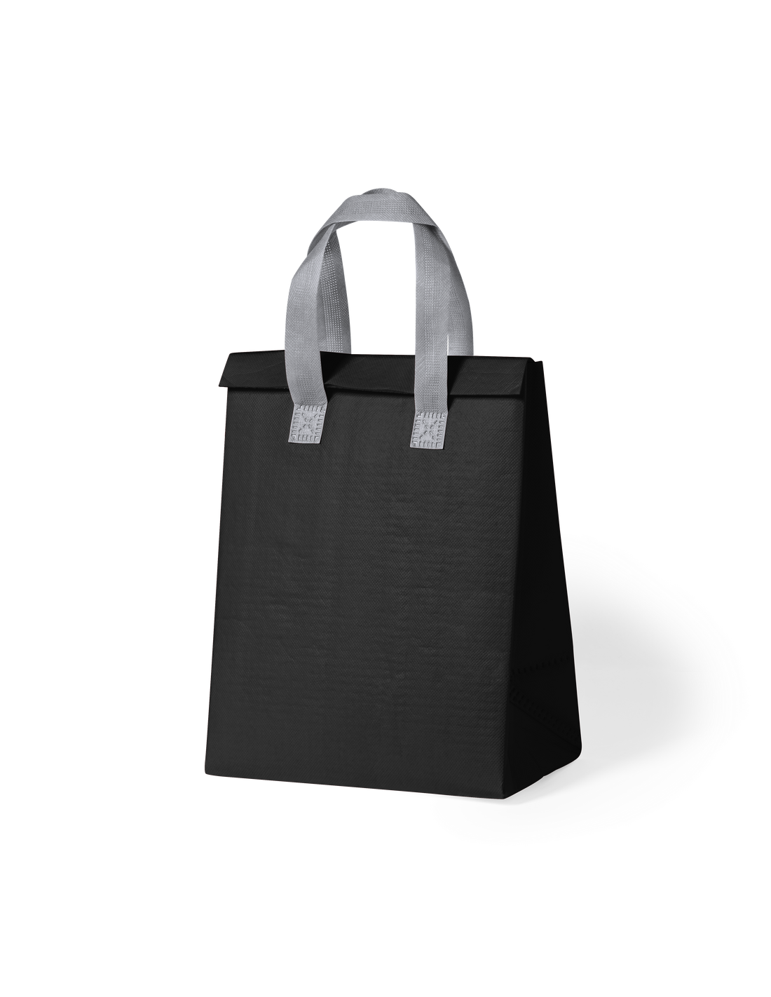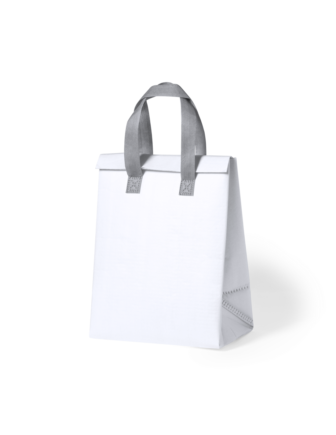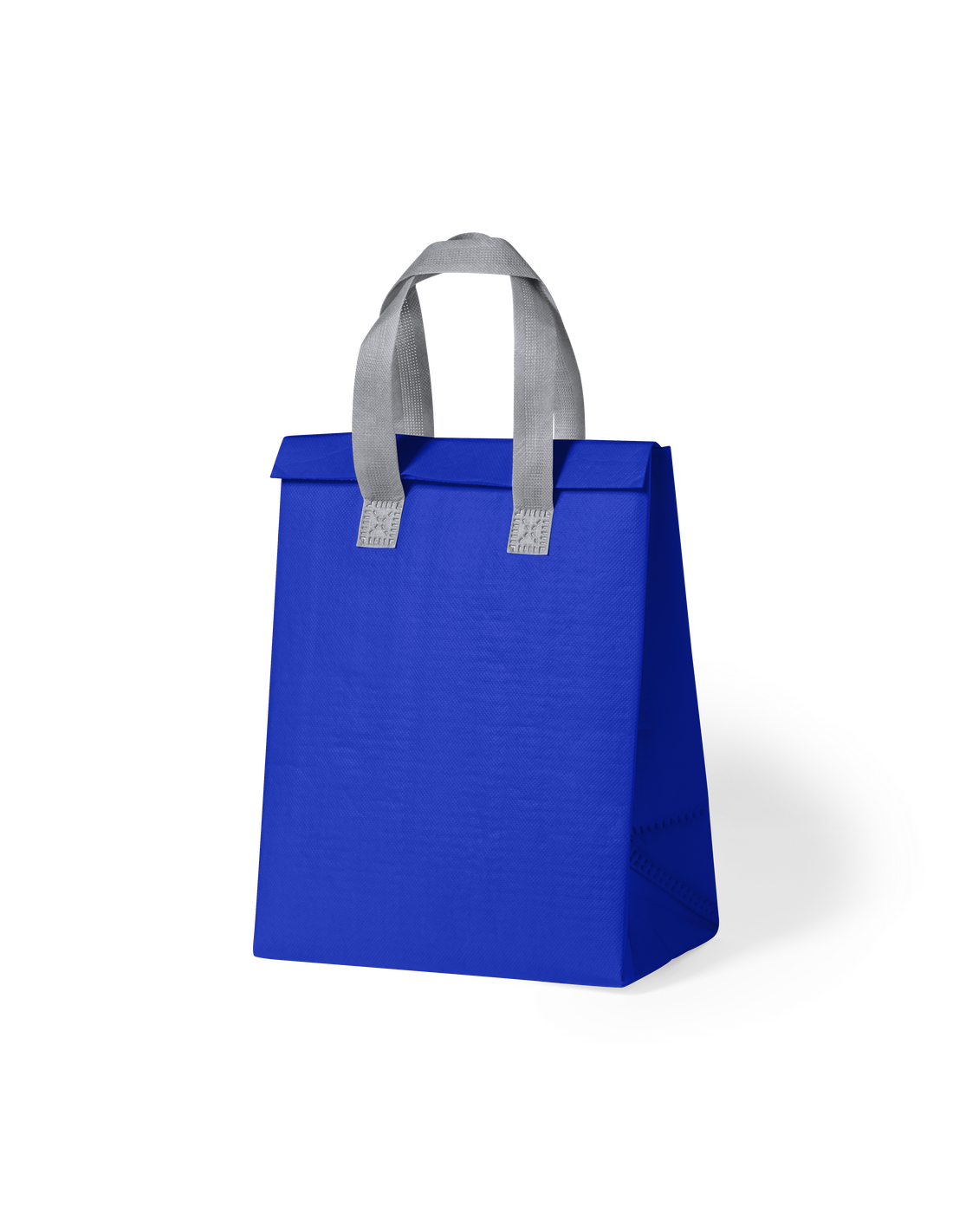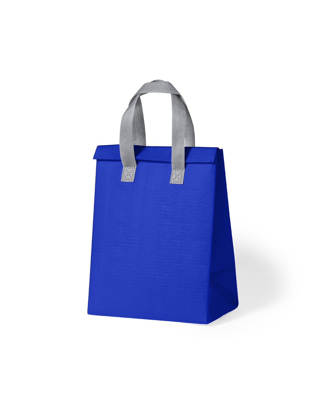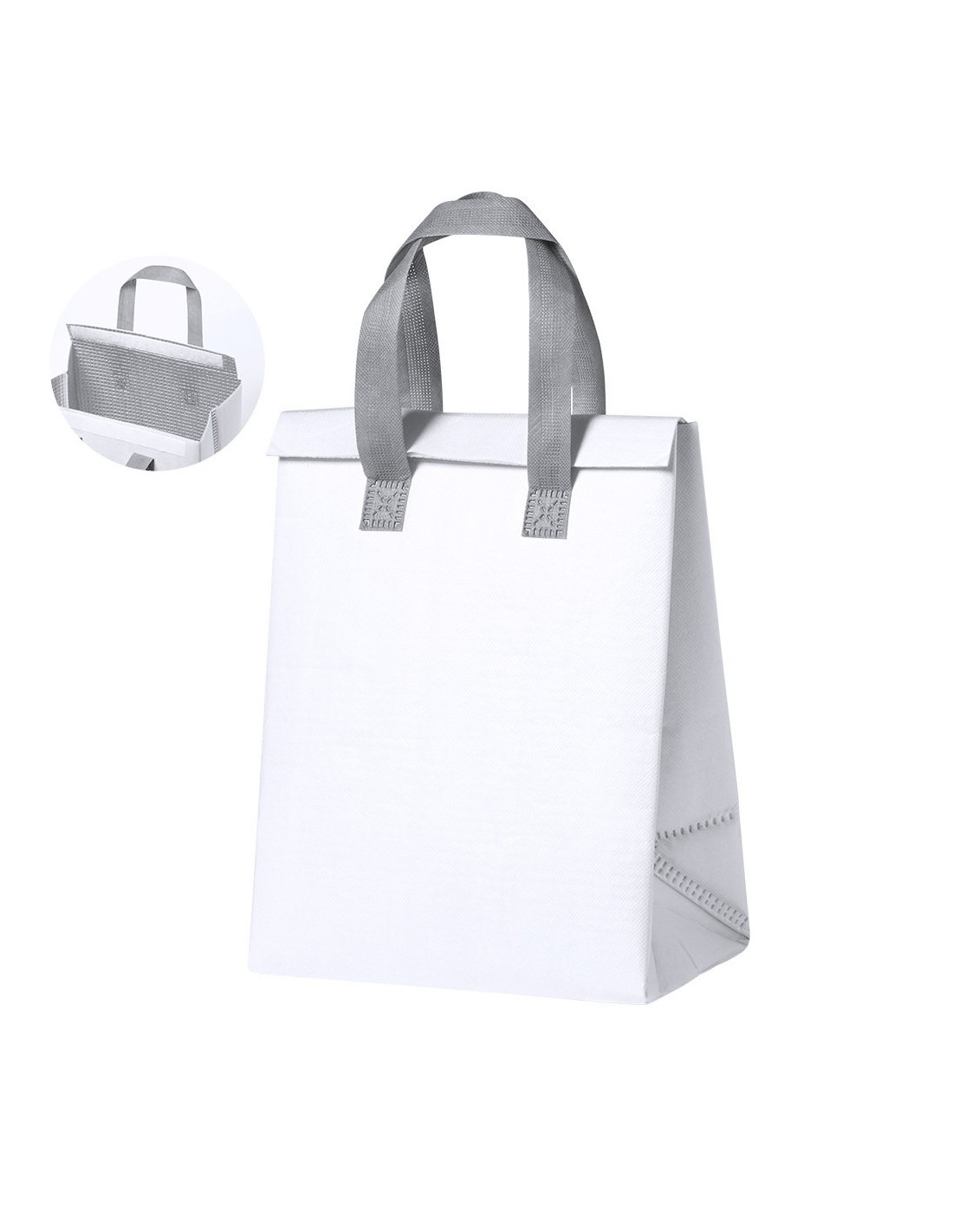 Bolsa nevera en non-woven laminado. Compartimento principal con cierre de velcro e interior isotermo de aluminio. De acabado termosellado, con fuelle y asas reforzadas. Disponible en variada gama de colores.