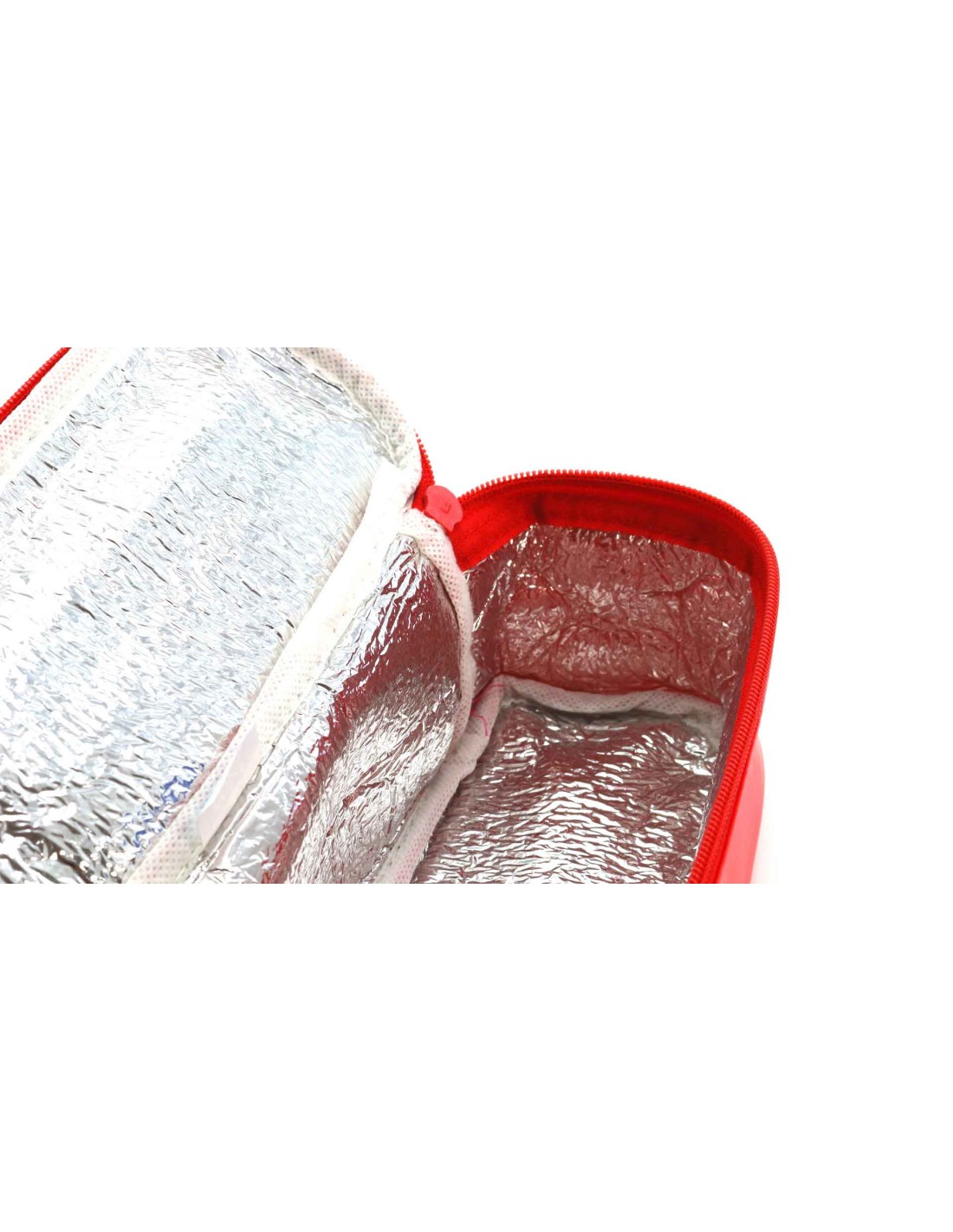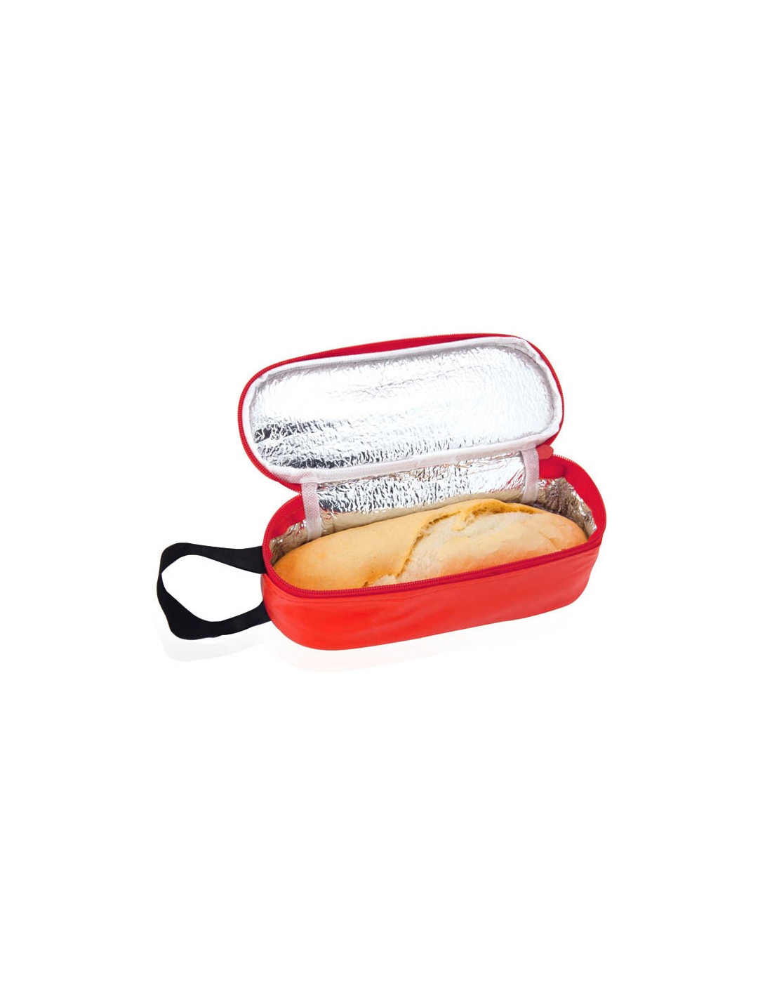 Portabocadillos en resistente PVC de vivos colores y con cierre de cremallera. Con asa en nylon reforzado e interior isotermo en acabado de aluminio.