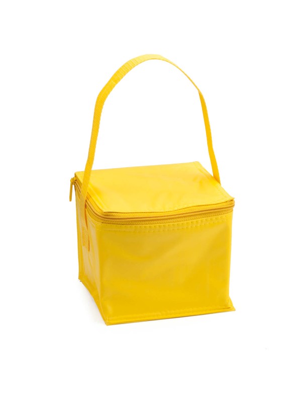 Nevera de 4 latas en resistente PVC de vivos colores. Interior isotermo en acabado de aluminio. Con cremallera y asa de transporte a juego.