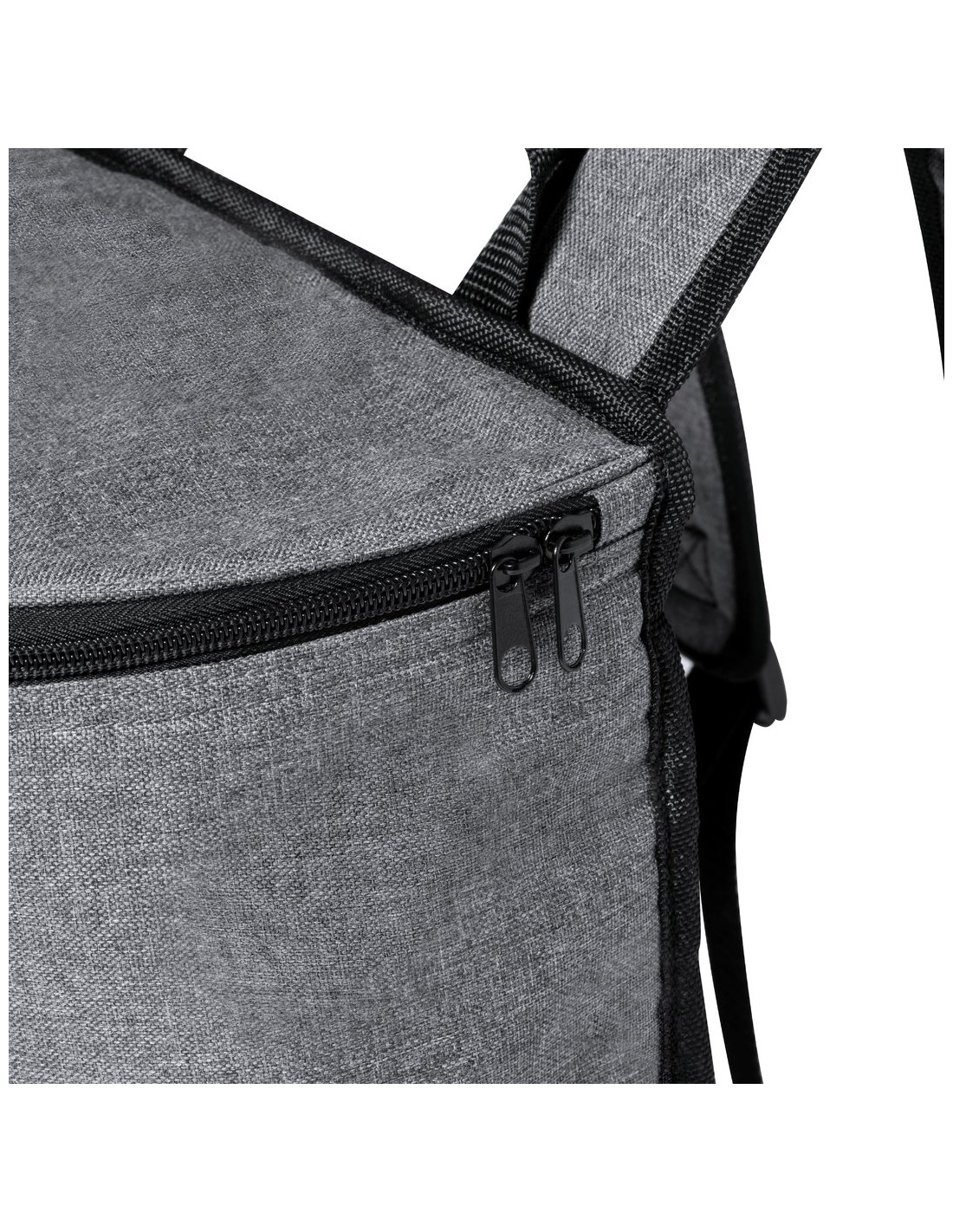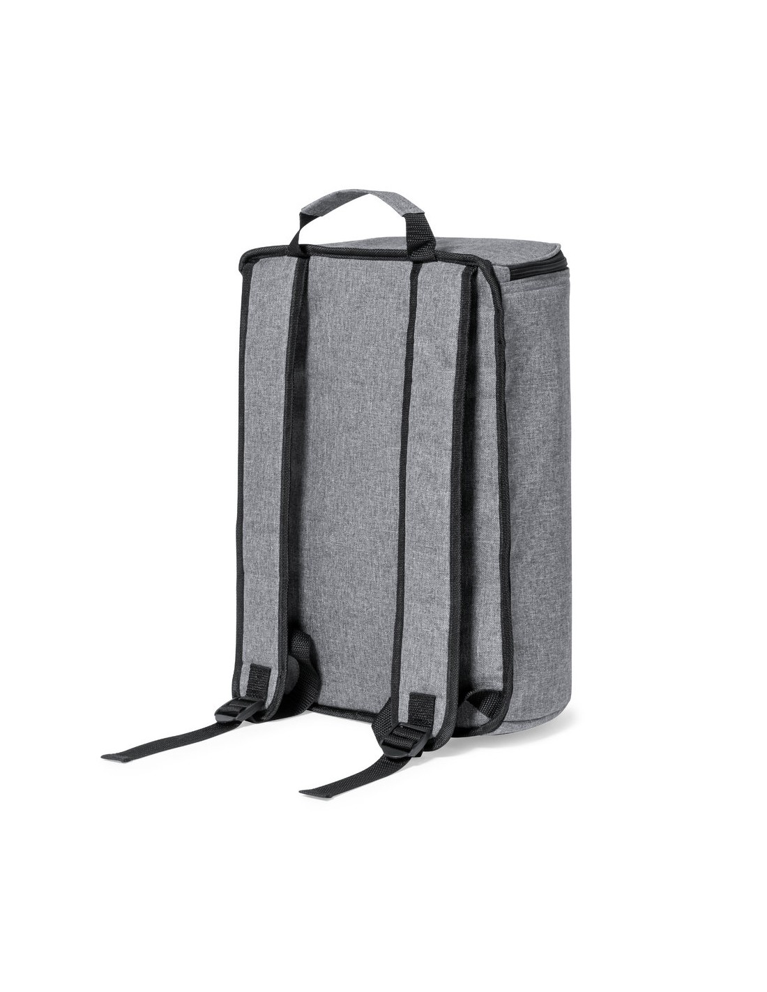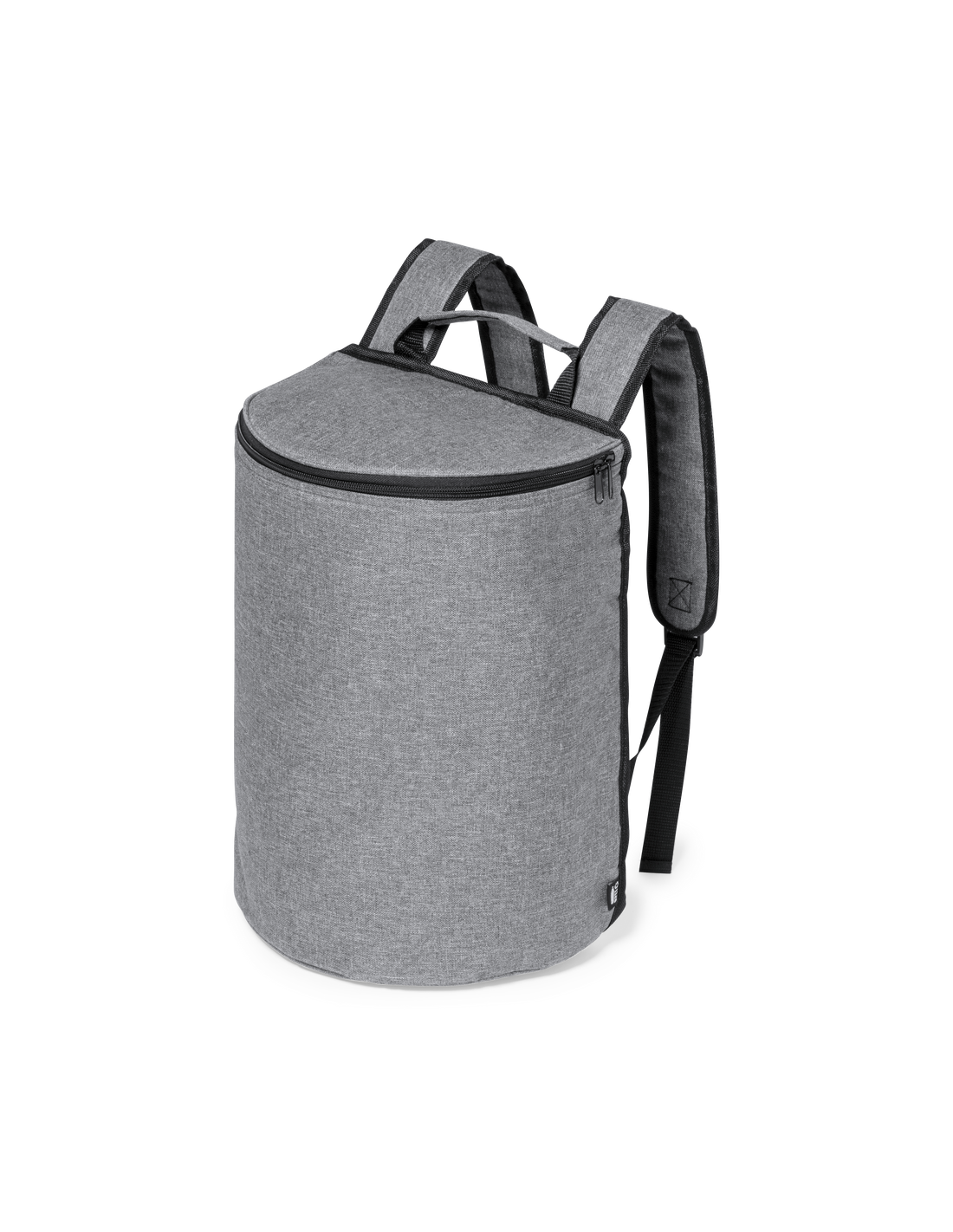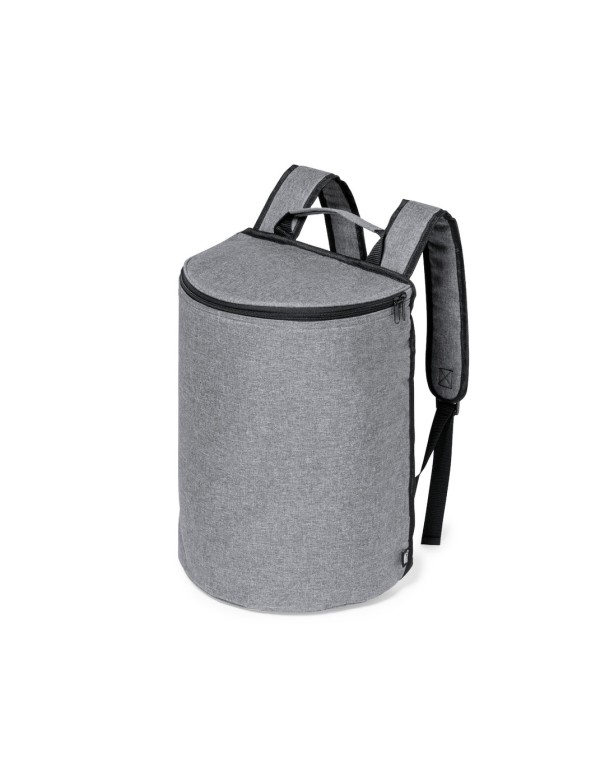 Mochila nevera fabricada en resistente 600D RPET. Acabado en color gris, con asa de transporte. Cintas para hombros acolchadas y ajustables. Compartimento principal con cierre de cremallera y tiradores metálicos. Interior isotermo en aluminio y etiqueta exterior con distintivo RPET.El material RPET se elabora a partir de plástico reciclado, para así fomentar la reutilización de residuos plásticos y ayudar a la sostenibilidad del planeta.