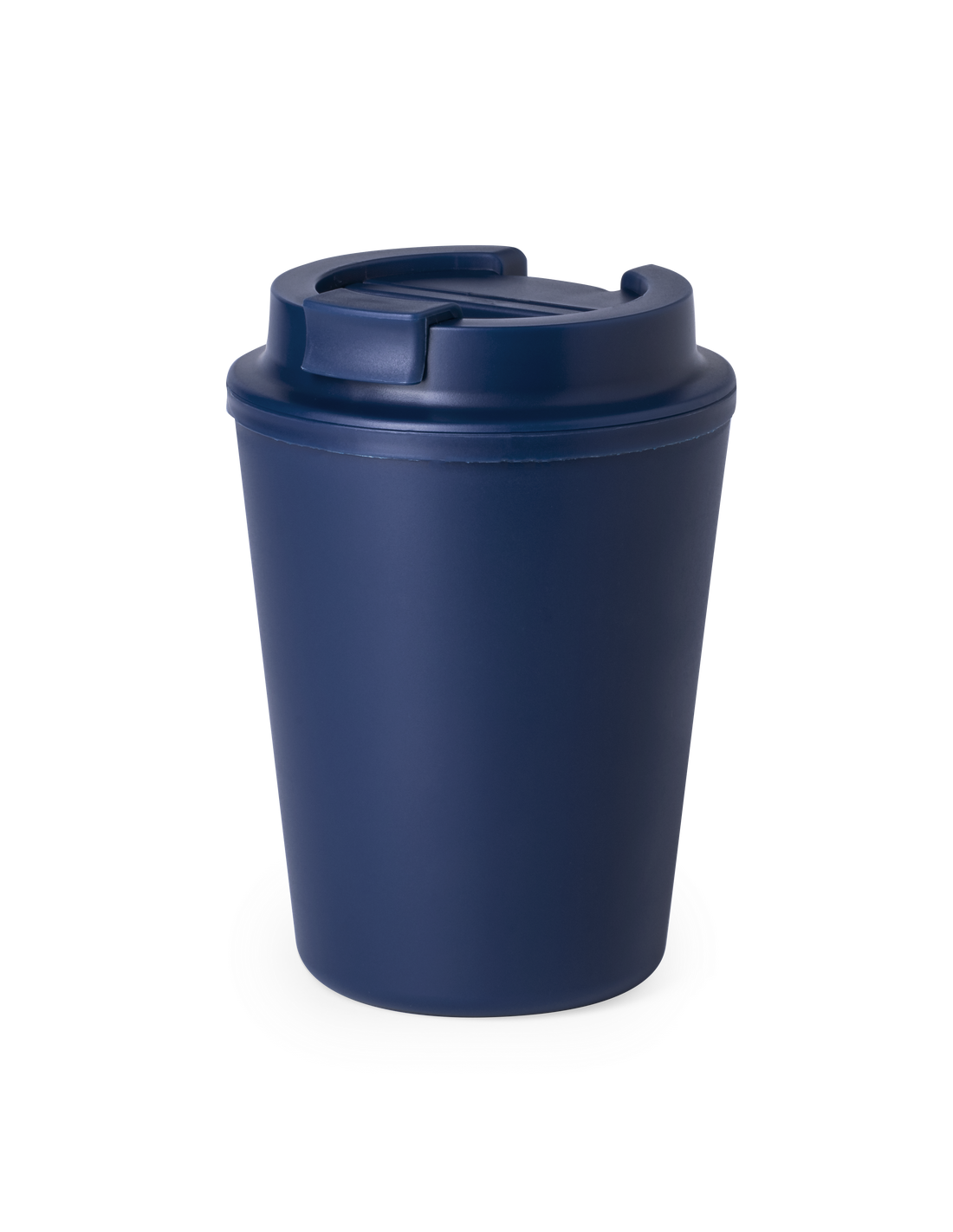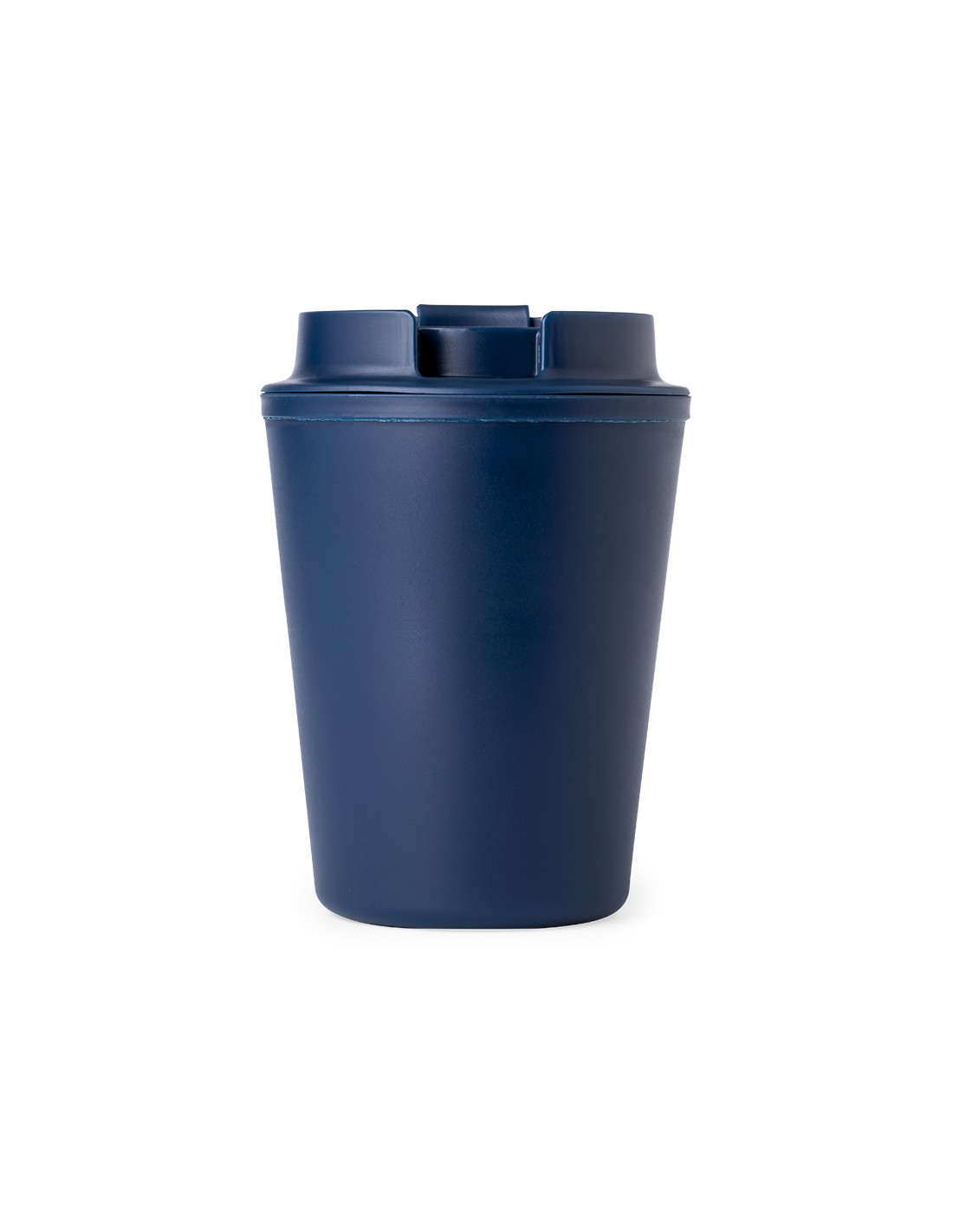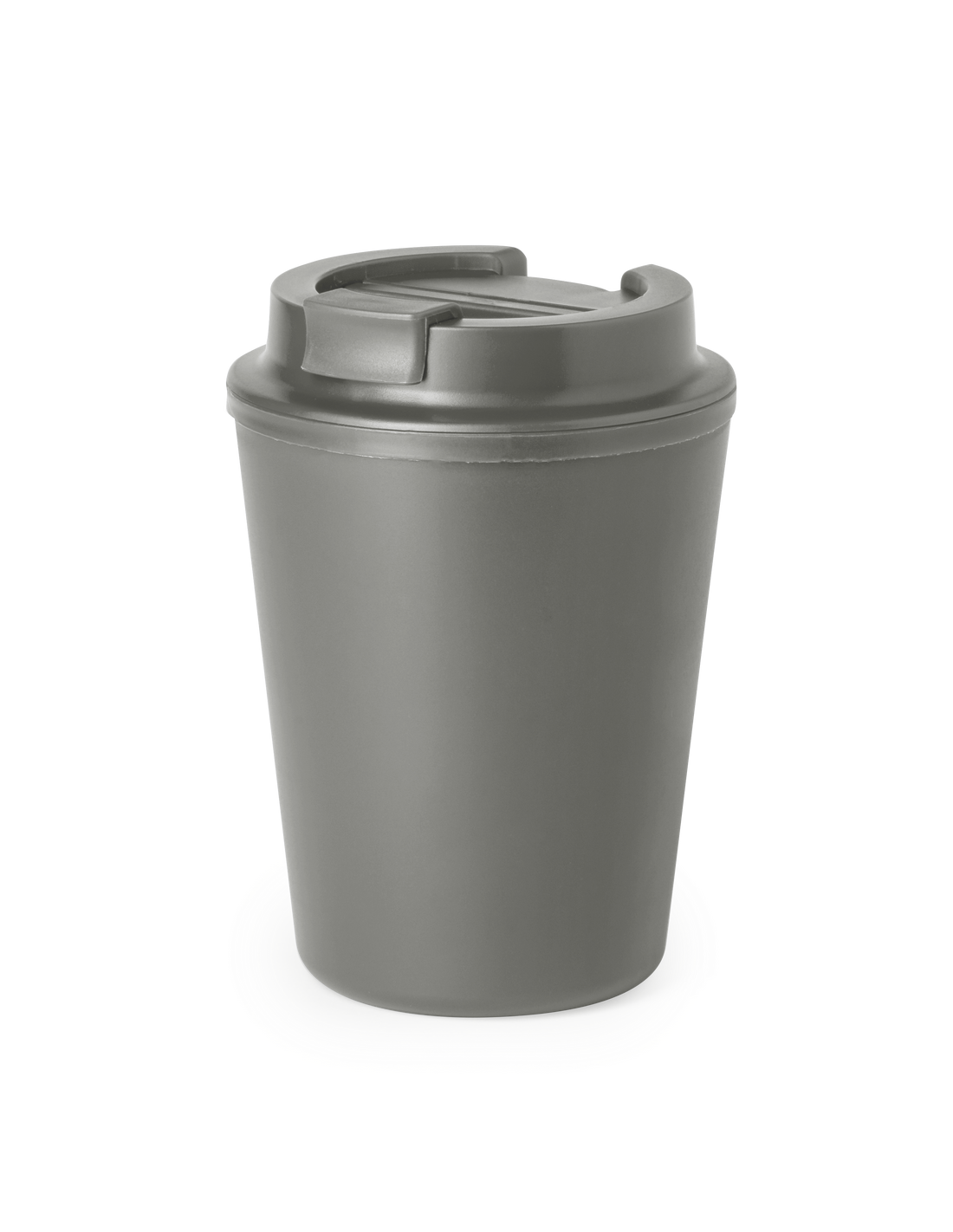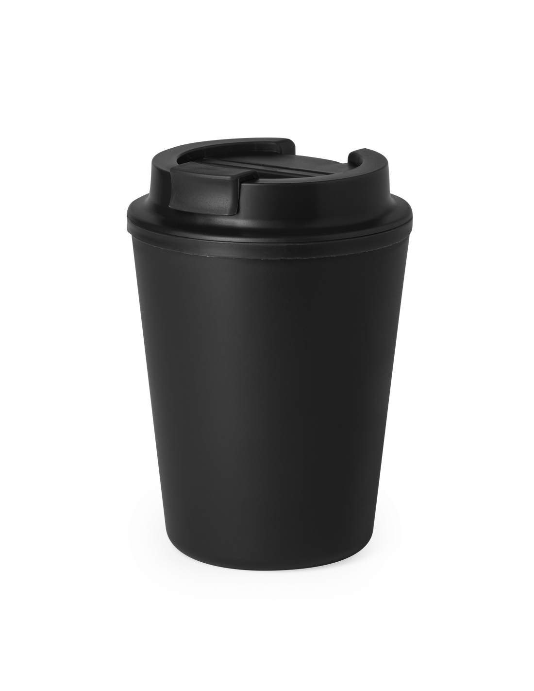 Vaso térmico fabricado en resistente PP de doble pared y 300ml de capacidad de color mate. Tapa con dosificador y abrefácil, libre de BPA. Es ideal para tener en tu escritorio, mesa o en cualquier superficie donde disfrutar tranquilamente de tu bebida favorita. Con certificación Food Grade, garantizando la seguridad cuando los alimentos entran en contacto con el material usado para fabricar el producto. El PP reciclado es un plástico reciclado y altamente reciclable, de gran resistencia y apto para multitud de aplicaciones.