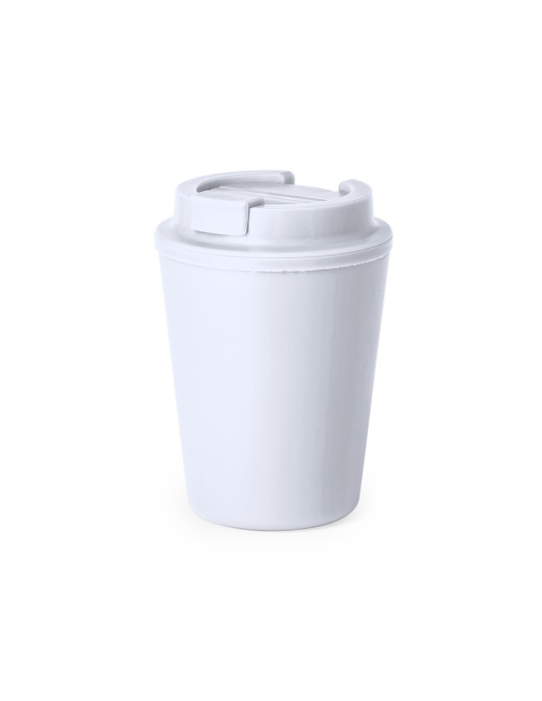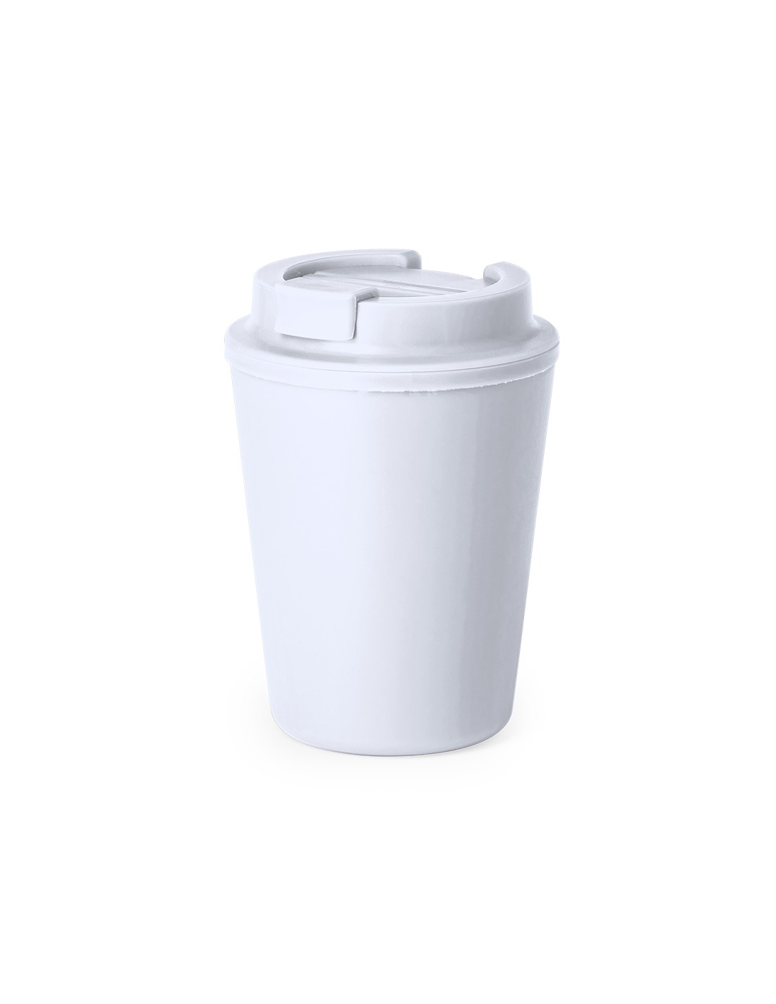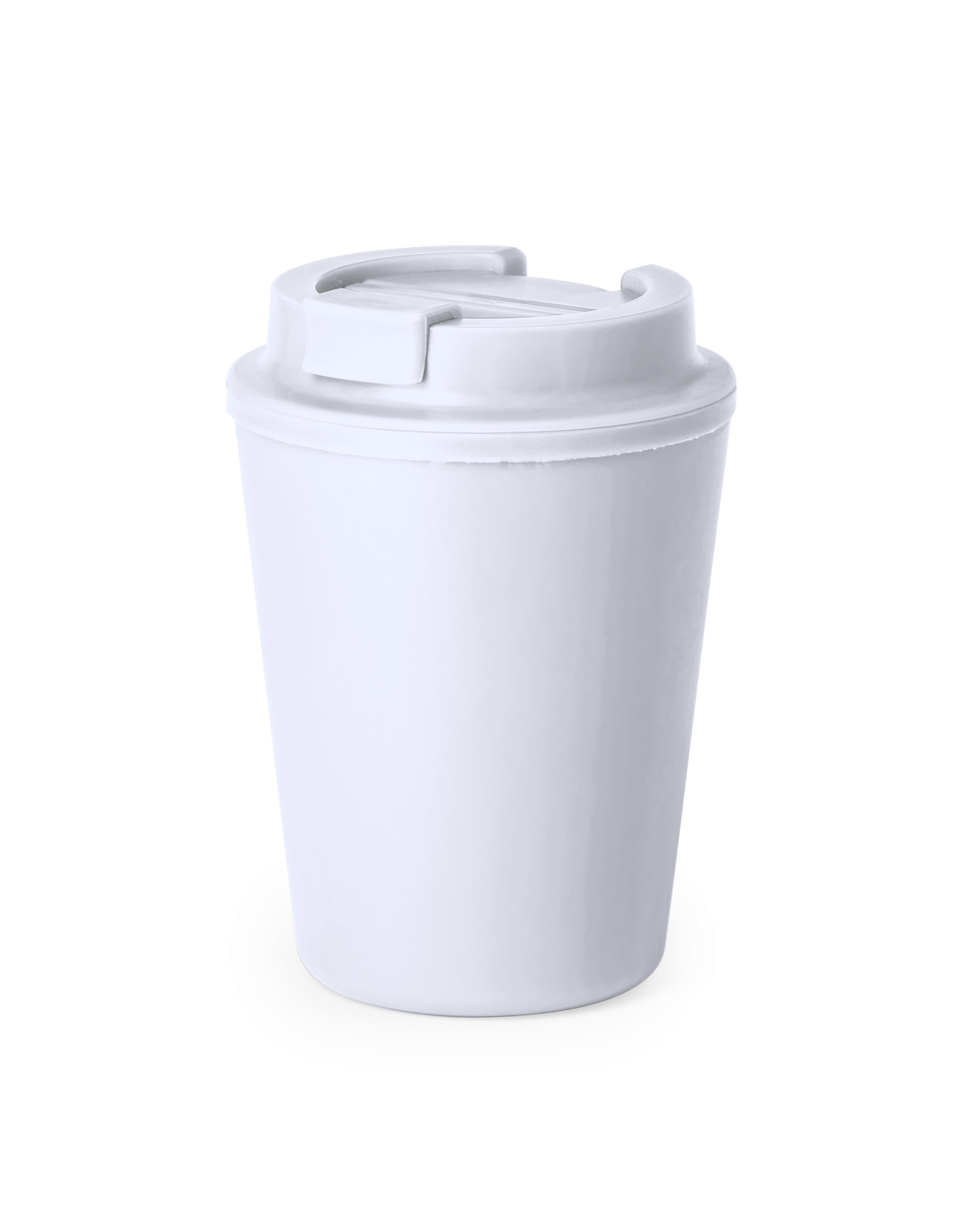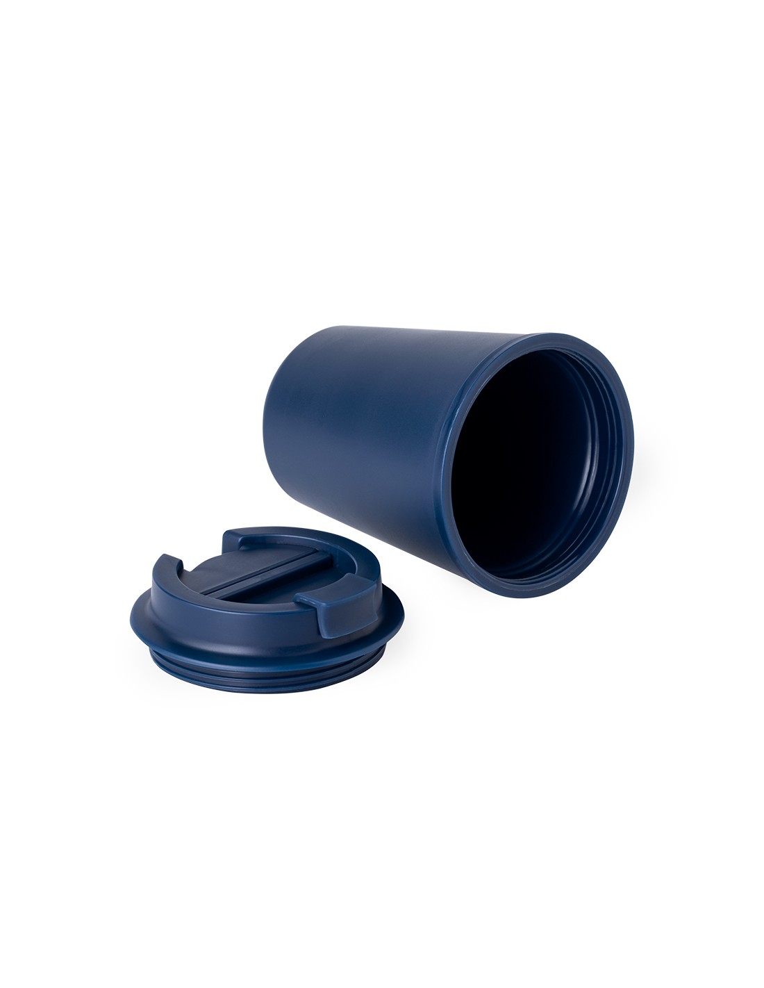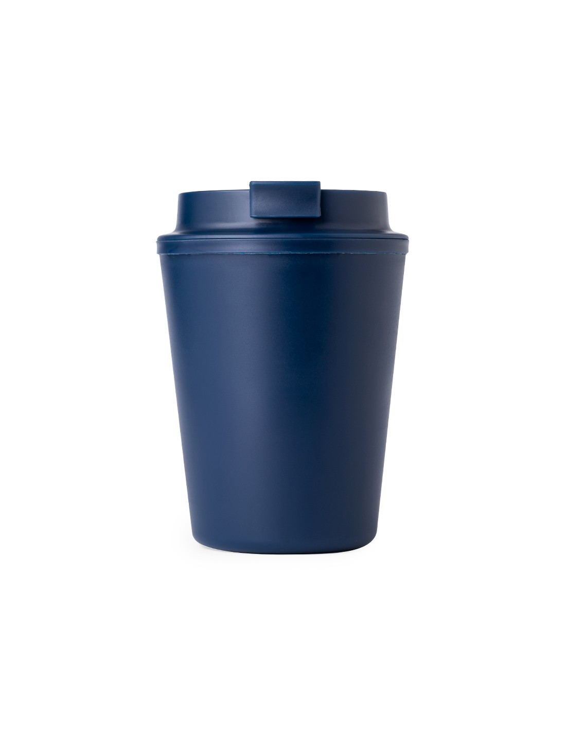 Vaso térmico fabricado en resistente PP de doble pared y 300ml de capacidad de color mate. Tapa con dosificador y abrefácil, libre de BPA. Es ideal para tener en tu escritorio, mesa o en cualquier superficie donde disfrutar tranquilamente de tu bebida favorita. Con certificación Food Grade, garantizando la seguridad cuando los alimentos entran en contacto con el material usado para fabricar el producto. El PP reciclado es un plástico reciclado y altamente reciclable, de gran resistencia y apto para multitud de aplicaciones.