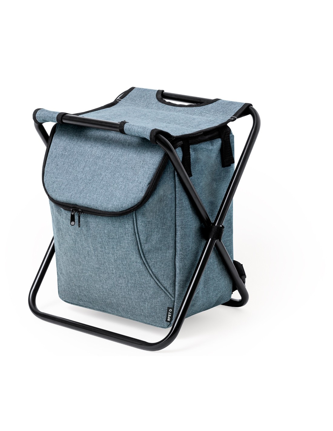 Silla plegable con cuerpo de aluminio y nevera integrada en asiento fabricada en RPET 600D, con costuras reforzadas, cierre de cremallera y prácticas asas de hombros para transporte, pudiendo guardarlas en el bolsillo específico. Con tira de refuerzo de nylon en las patas e interior isotermo PEVA. Presentada en bolsa individual.El material RPET se elabora a partir de plástico reciclado, para así fomentar la reutilización de residuos plásticos y ayudar a la sostenibilidad del planeta.