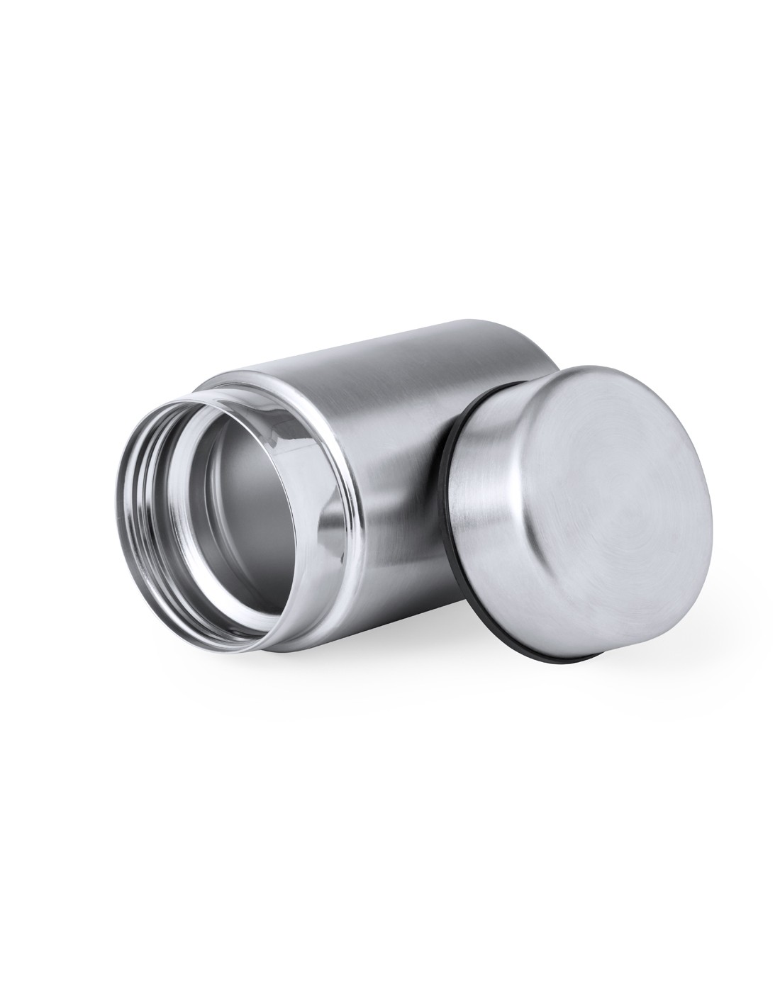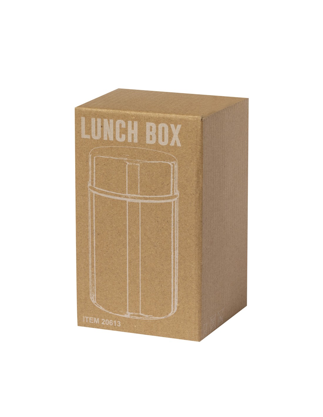 Fiambrera de doble pared, fabricada en acero inox y de 600 ml de capacidad. Cierre de seguridad con tapadera estanca de rosca en acero inox. Disponible en varios colores y presentada en atractiva caja individual de diseño.