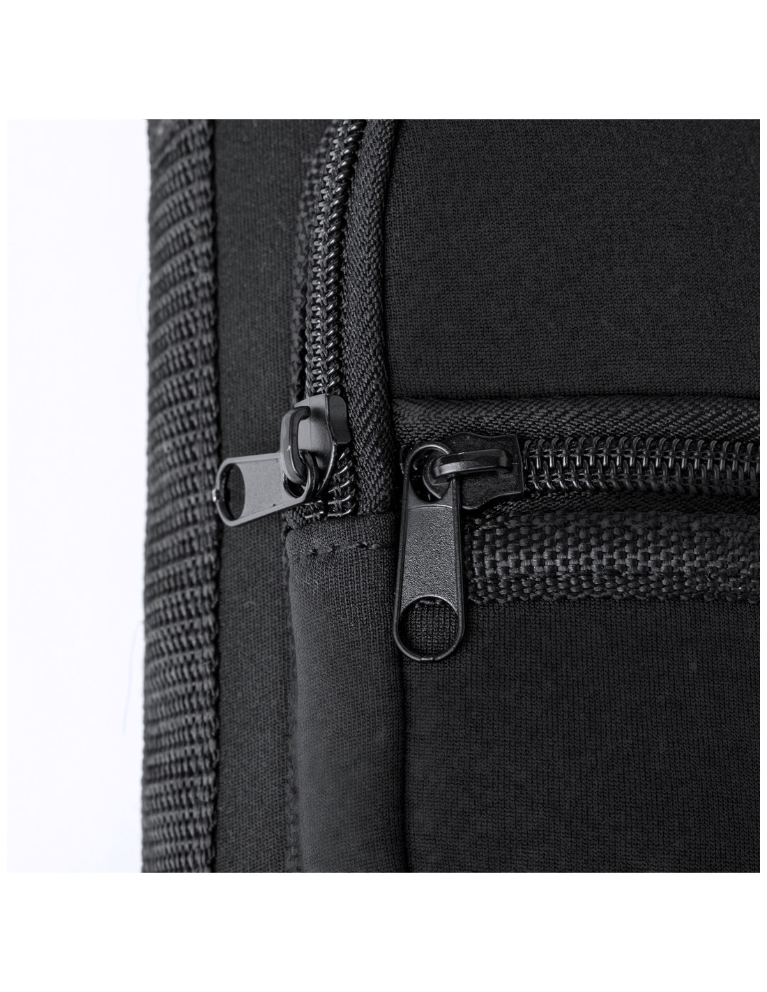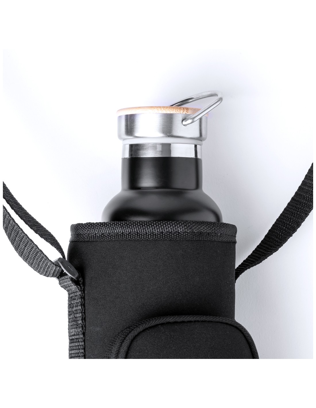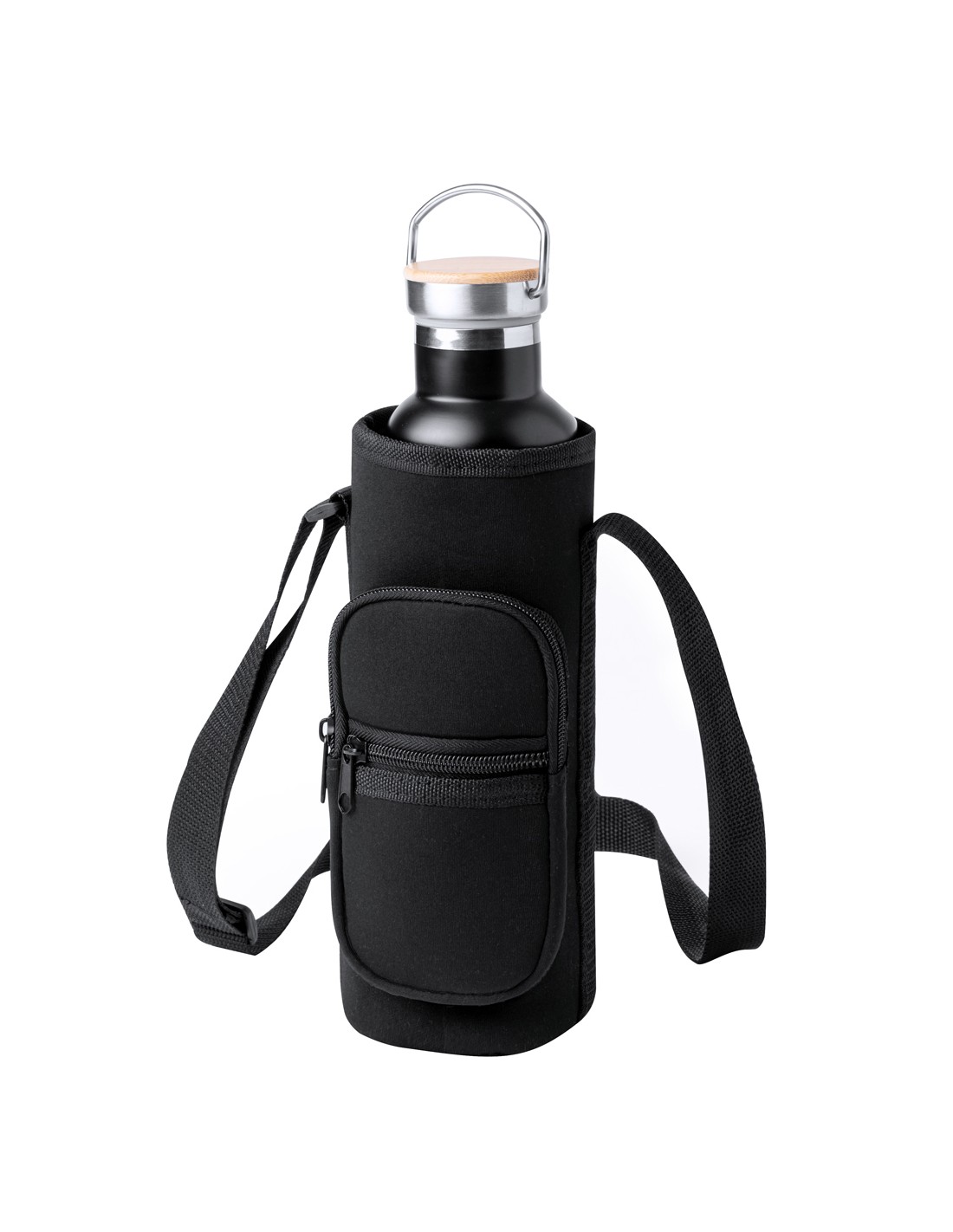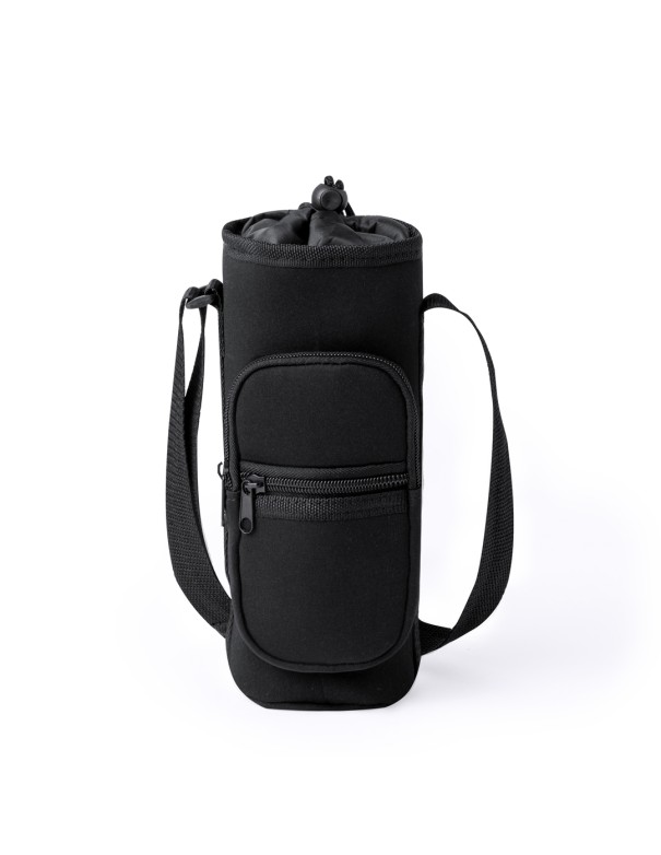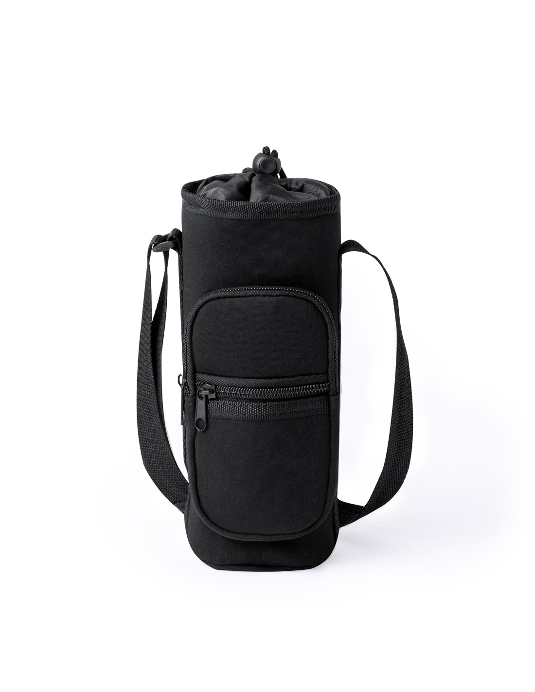 Portabidones de hasta 1,5L, fabricada en soft shell. Con cierre de cordón y se lleva cómodamente con la cinta para el hombro ajustable. Con bolsillos frontales de cremallera. Presentado individualmente en bolsa reciclada.