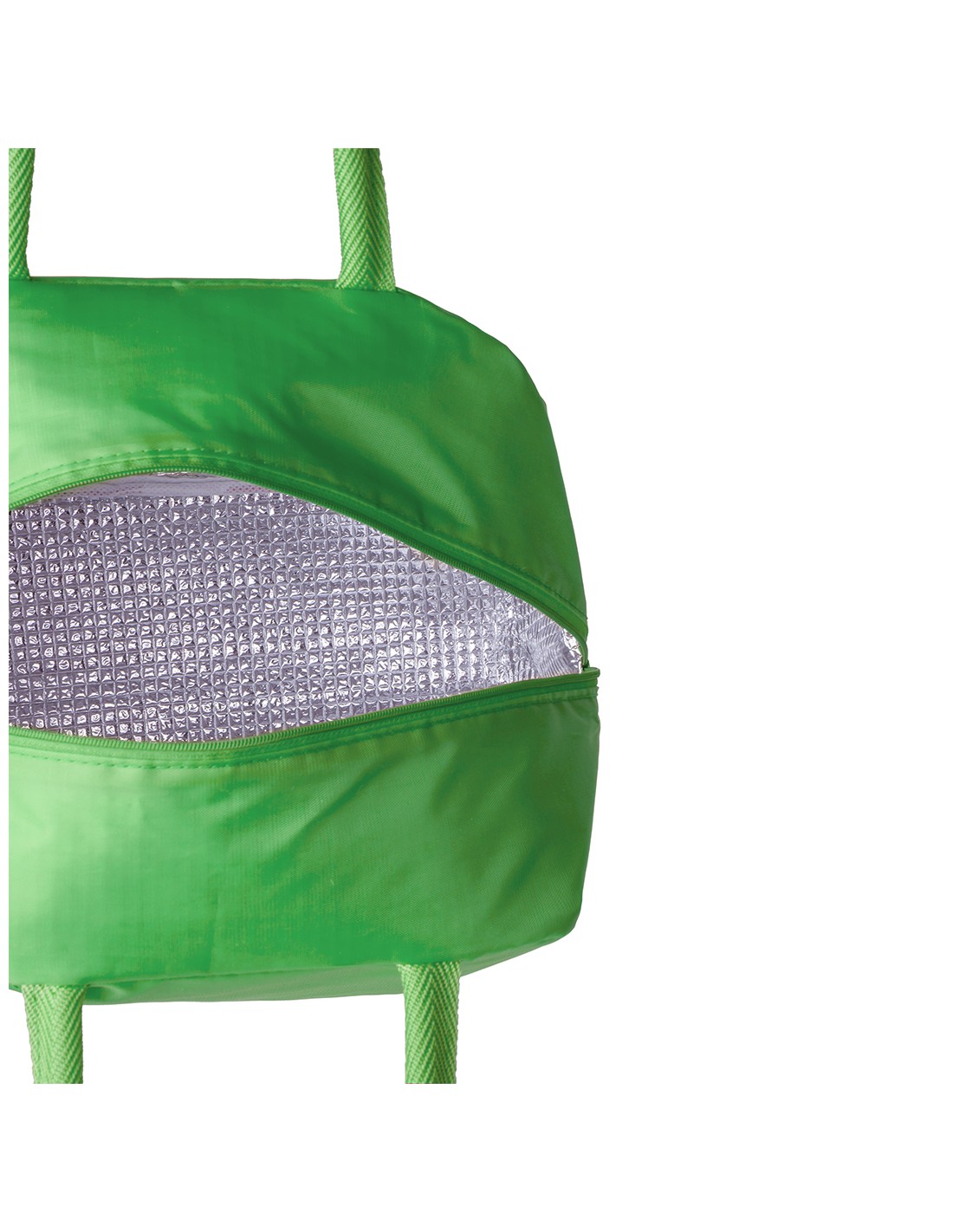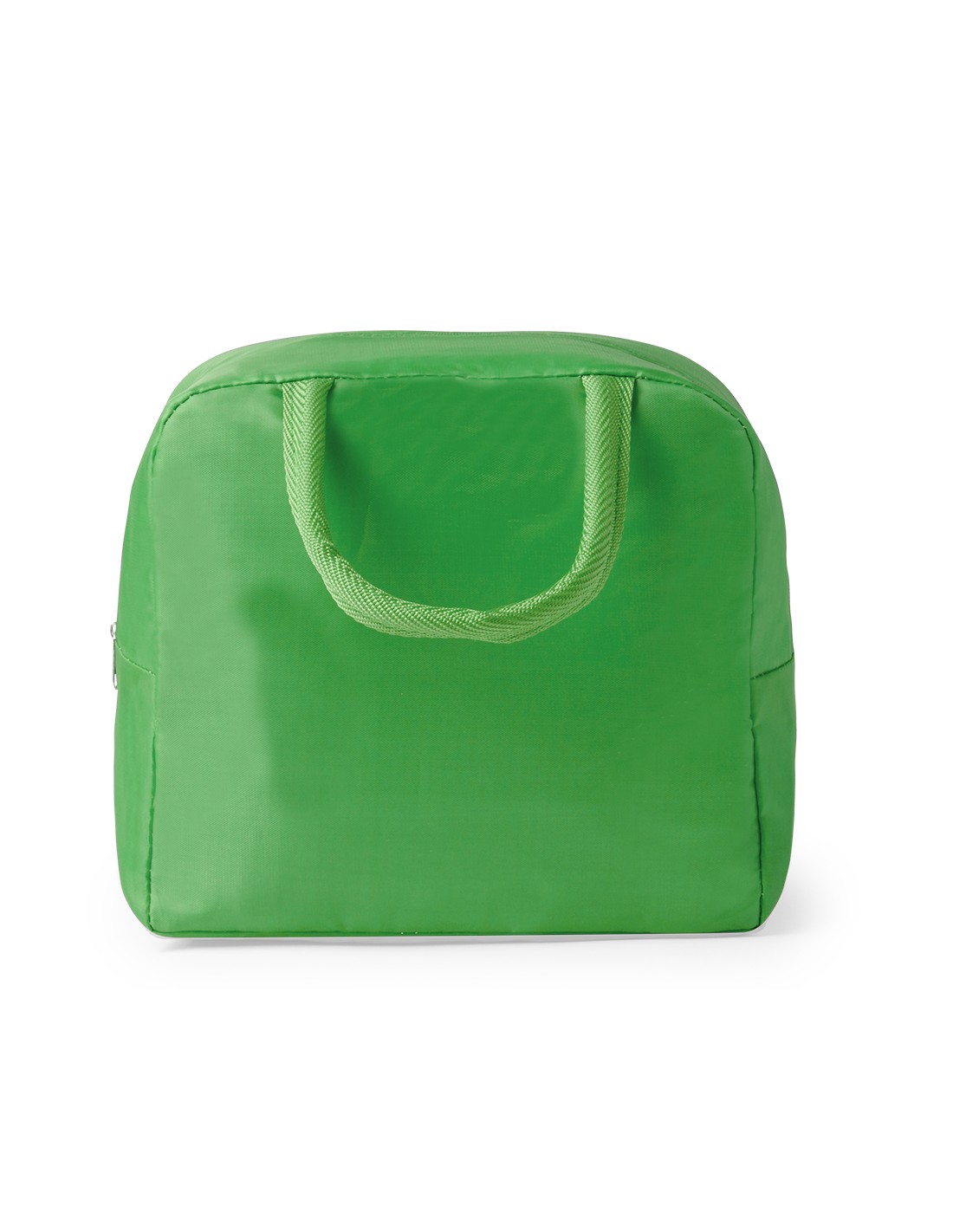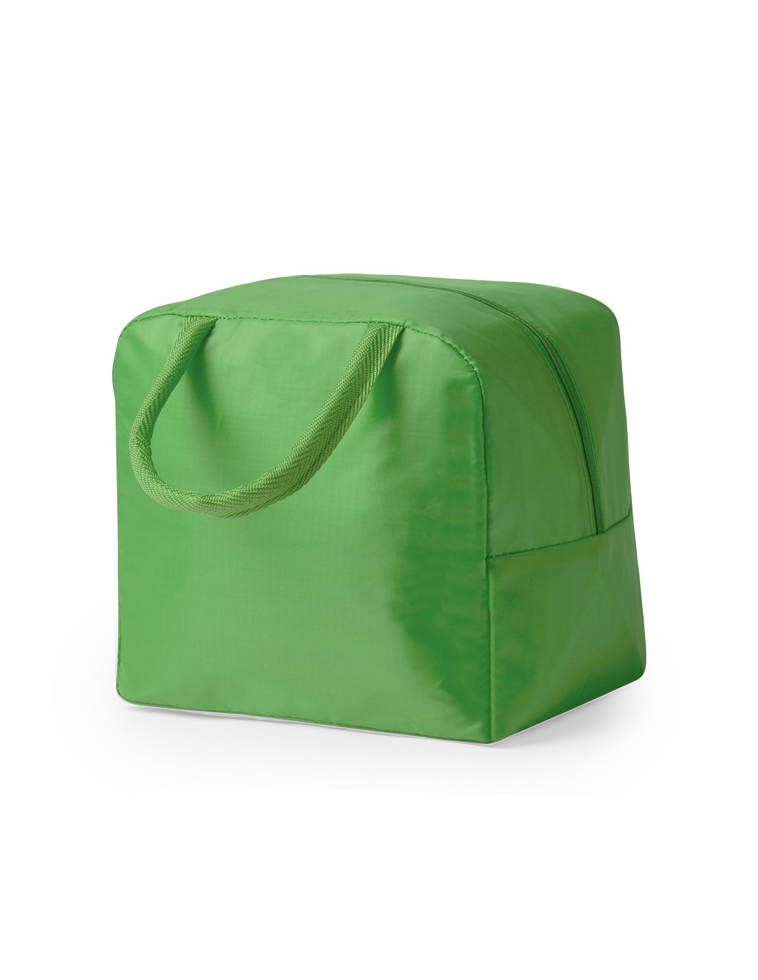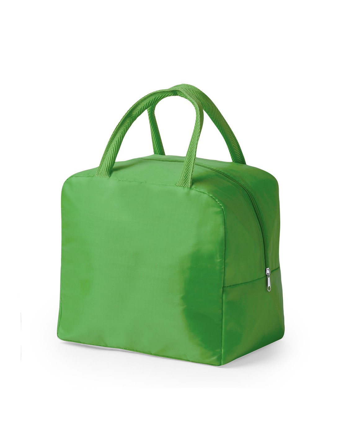 Nevera en resistente poliéster 210D. Compartimento principal con cierre de cremallera e interior en aluminio con base reforzada. Incluye asas a conjunto. Disponible en variada gama de colores. Presentada individualmente en bolsa reciclada.