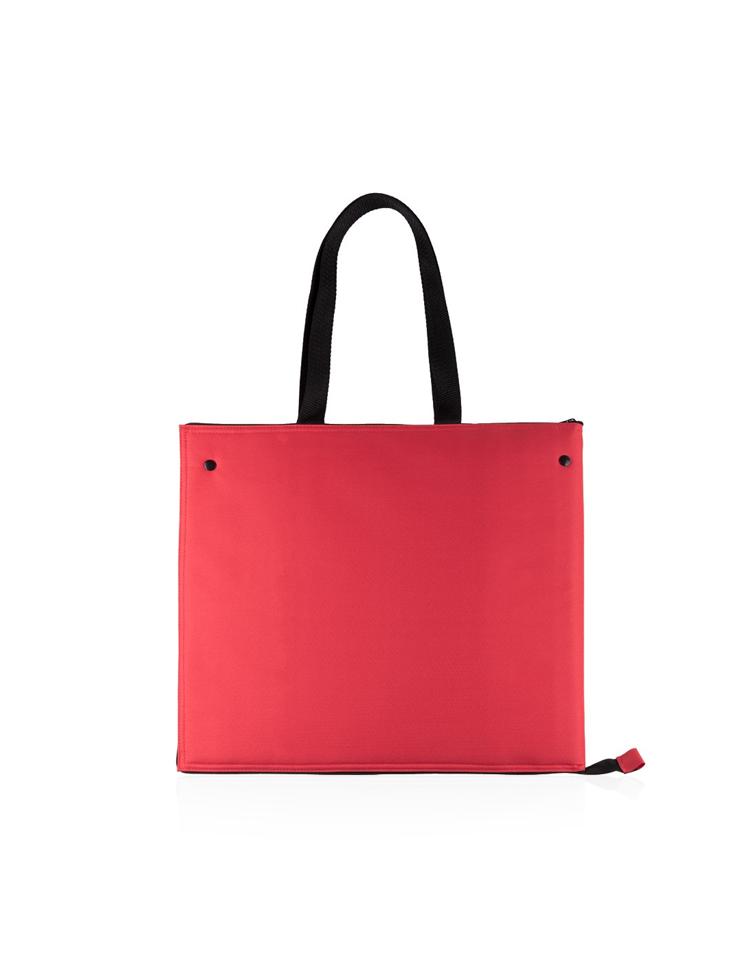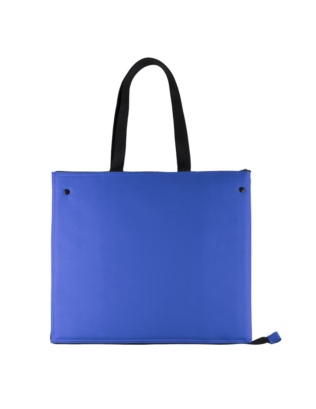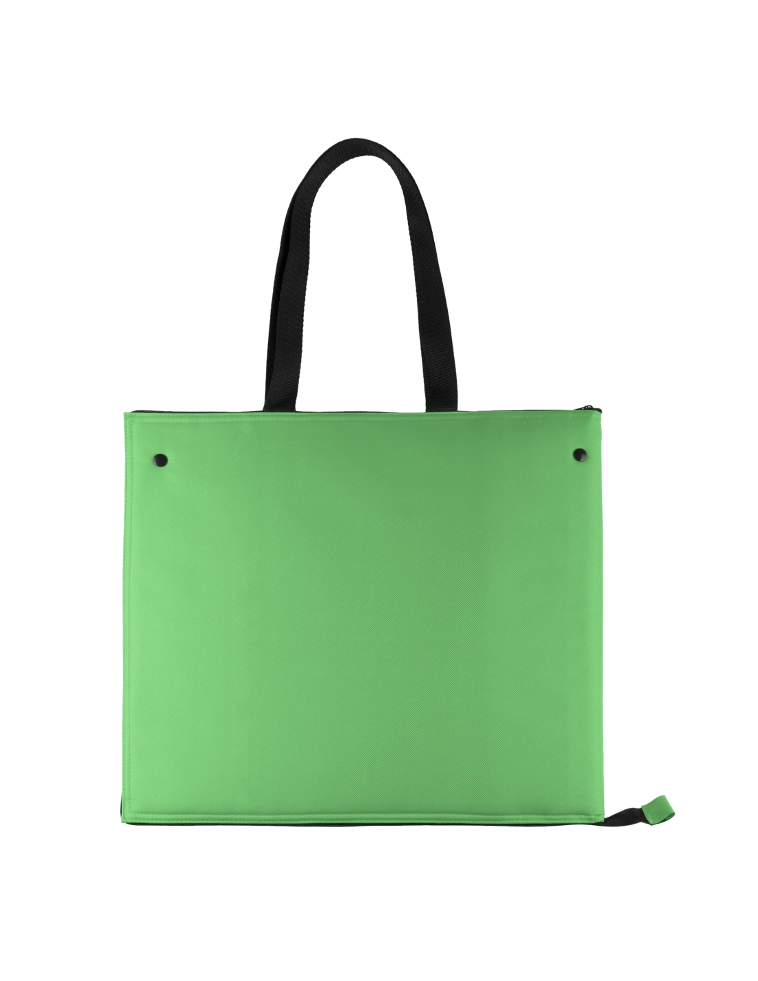 Bolsa nevera en resistente poliéster 600D con cierre de cremallera de apertura total. Con cómodas asas de transporte en nylon, refuerzos con cierre de corchete en esquinas superiores e interior isotermo en acabado de aluminio