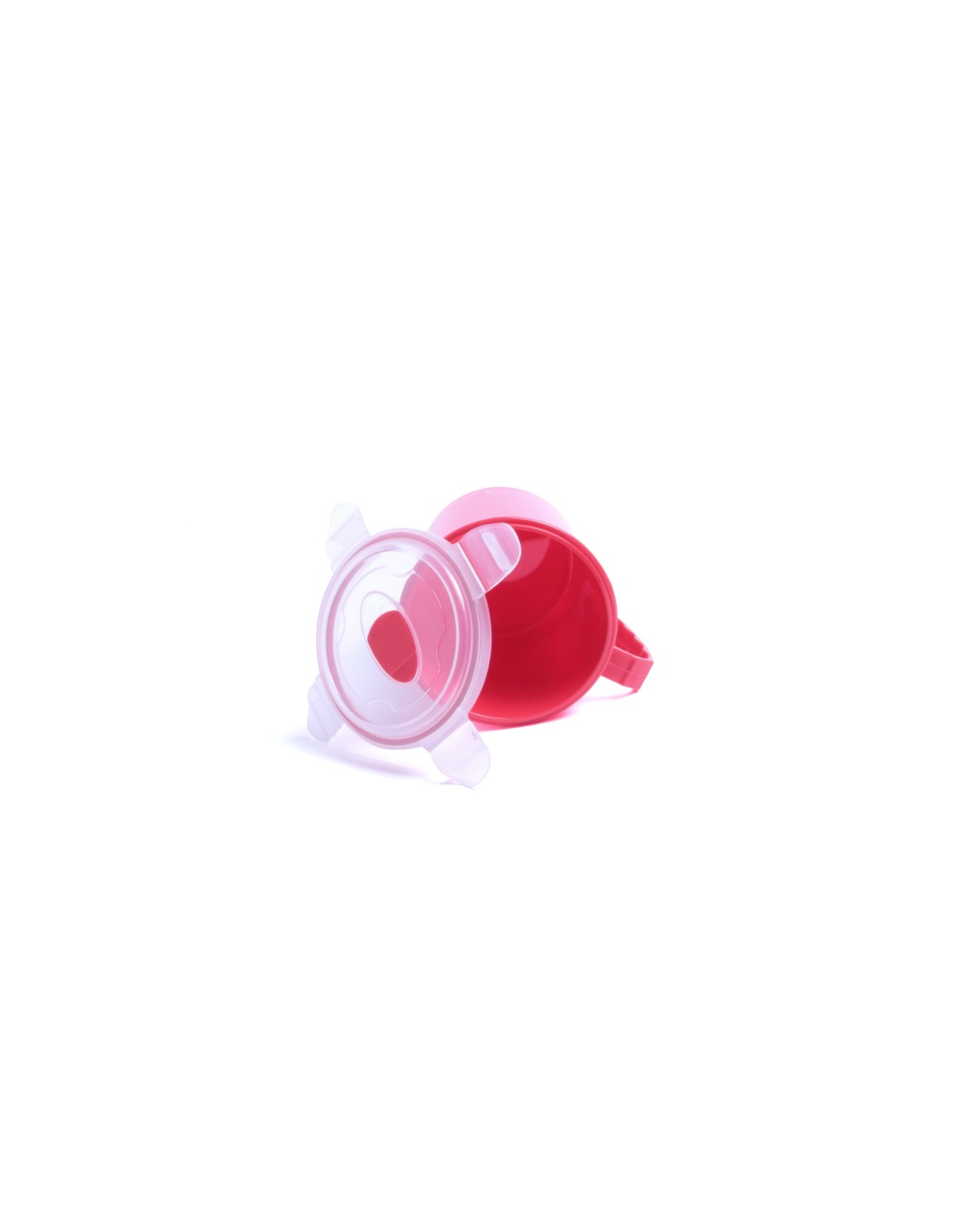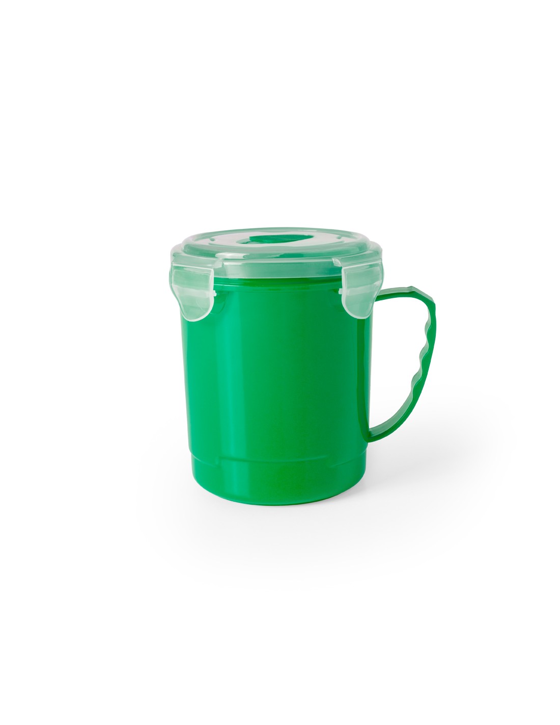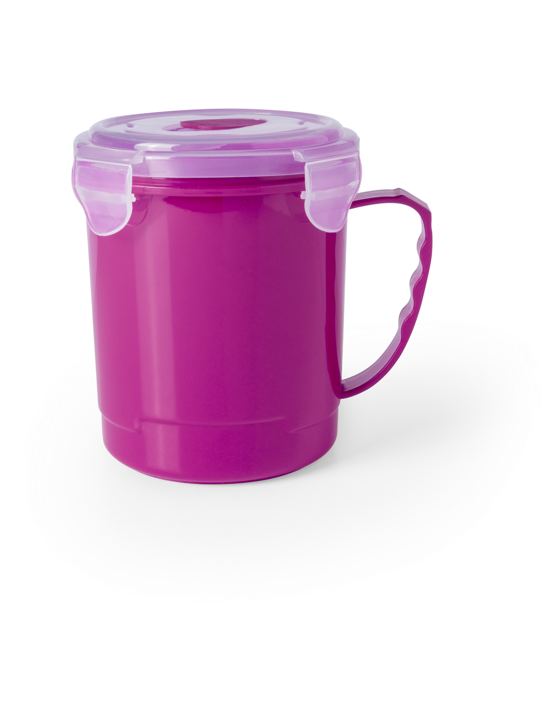 Tarro de 710ml de capacidad en resistente PP especialmente diseñado para líquidos. En variada gama en vivos colores, tapadera translúcida con 4 cierres, anilla de seguridad interior y dosificador integrado. Asa ergonómica a juego
