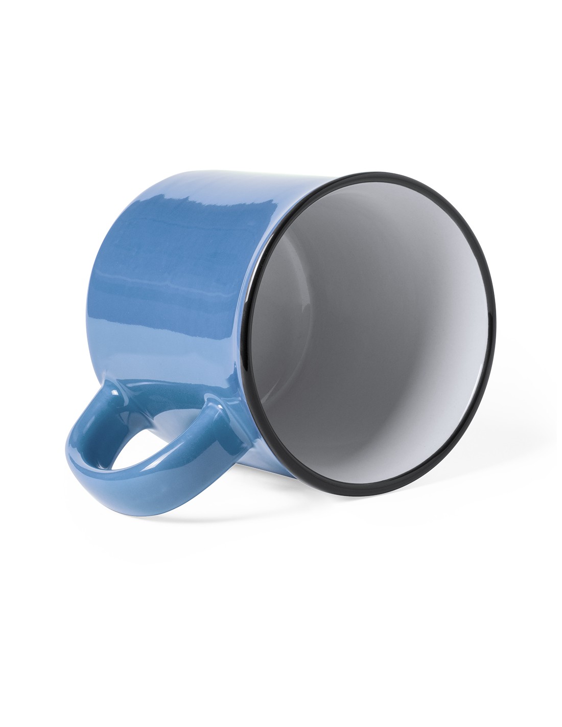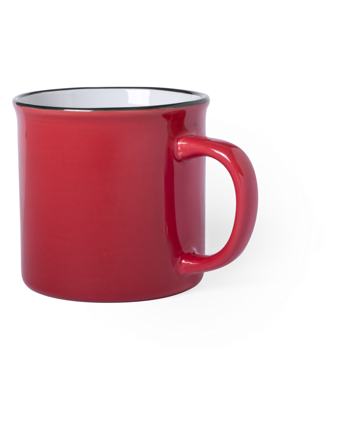 Taza de cerámica de 300ml de capacidad con diseño vintage. en combinación de exterior en variada gama de colores e interior en color blanco con borde negro. Presentada en caja individual.Disponible manual de instrucciones en español e inglés.