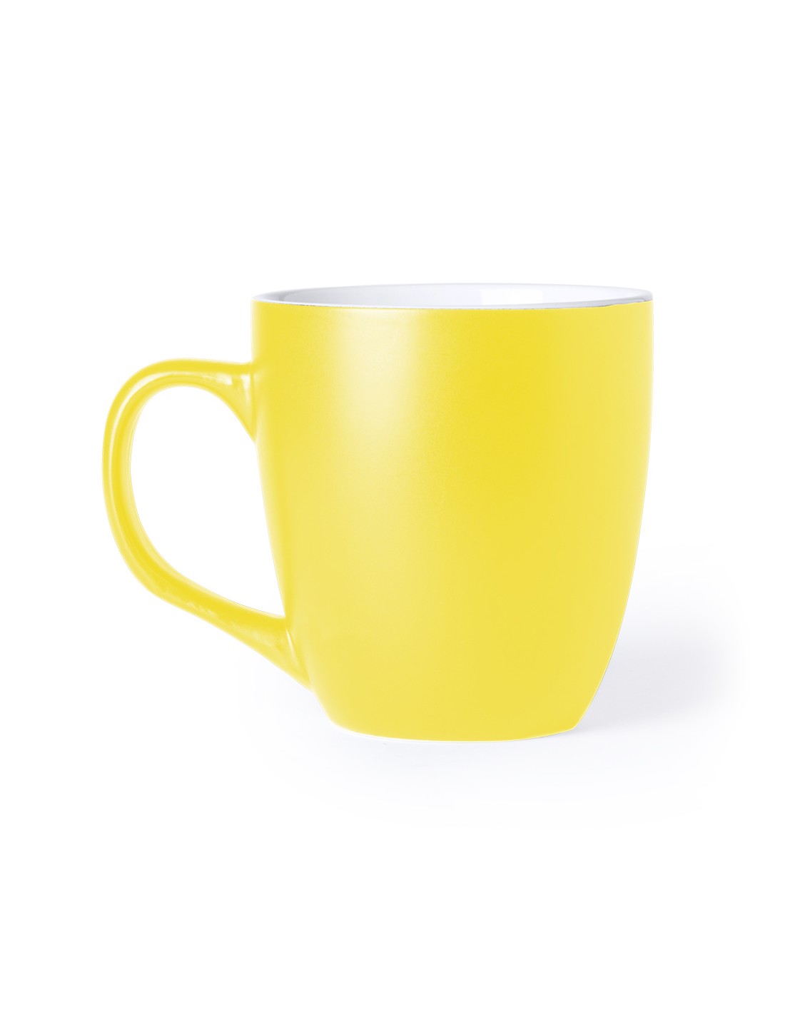 Taza de cerámica de 470ml de capacidad con exterior en variada gama de vivos colores e interior en color blanco. Presentada en caja individual.