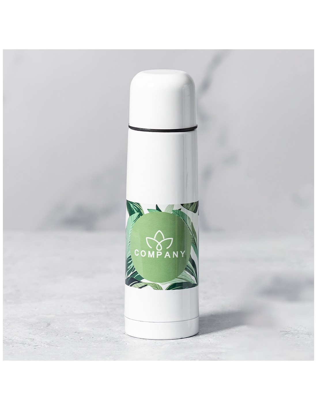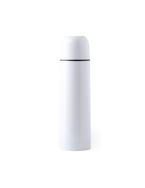 Termo de 500ml de capacidad en resistente acero inox. Superficie exterior especialmente diseñada para marcaje en sublimación. Con tapón de seguridad y presentado en atractiva caja individual de diseño.