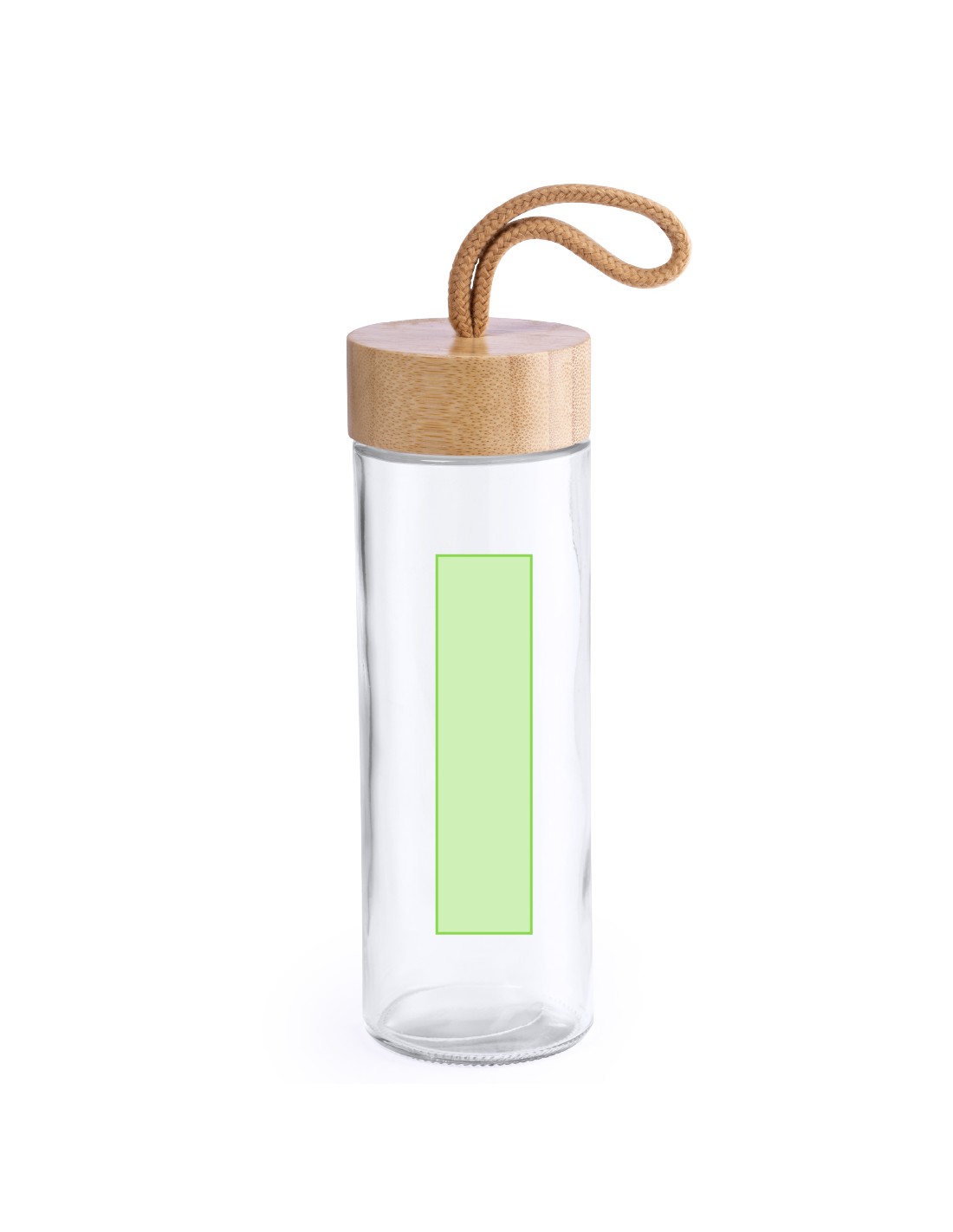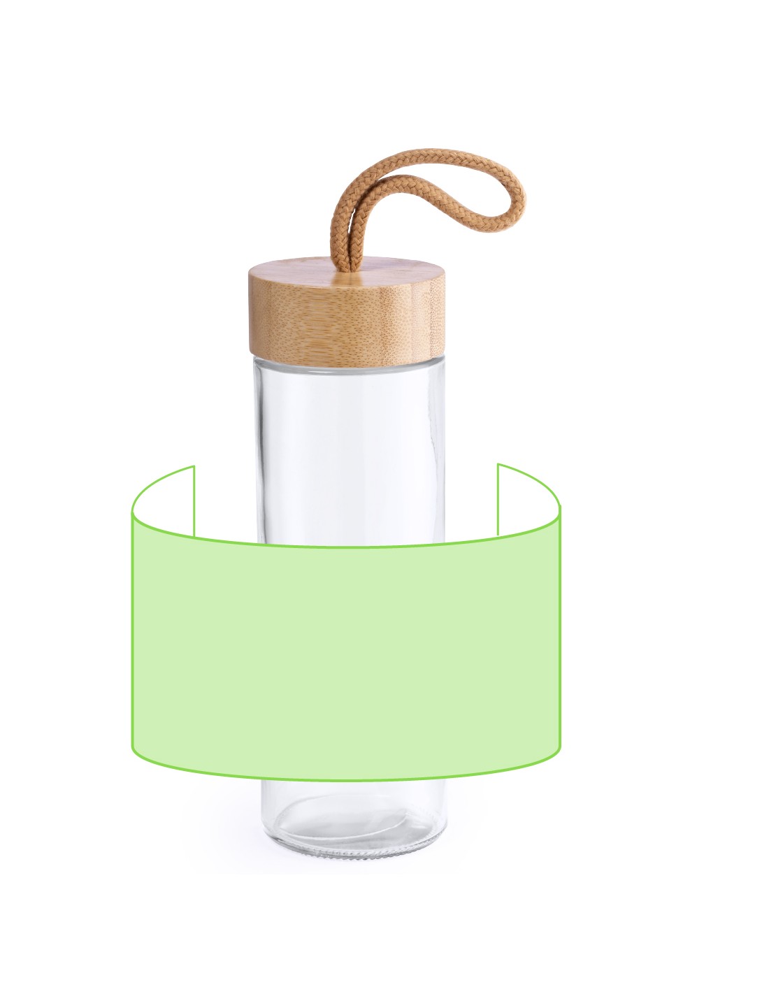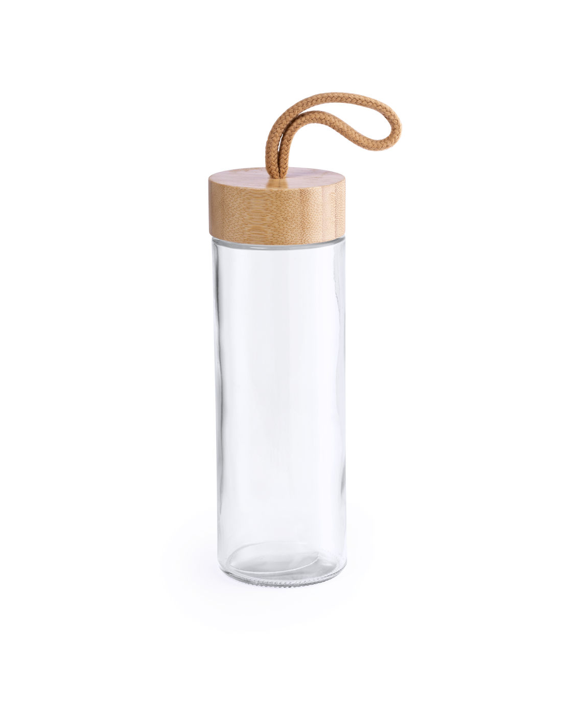 Tarro de línea nature de 420ml de capacidad. Fabricado con cuerpo de cristal y tapón a rosca de bambú, con práctica asa de transporte trenzada en color natural. Presentado en caja individual de atractivo diseño.