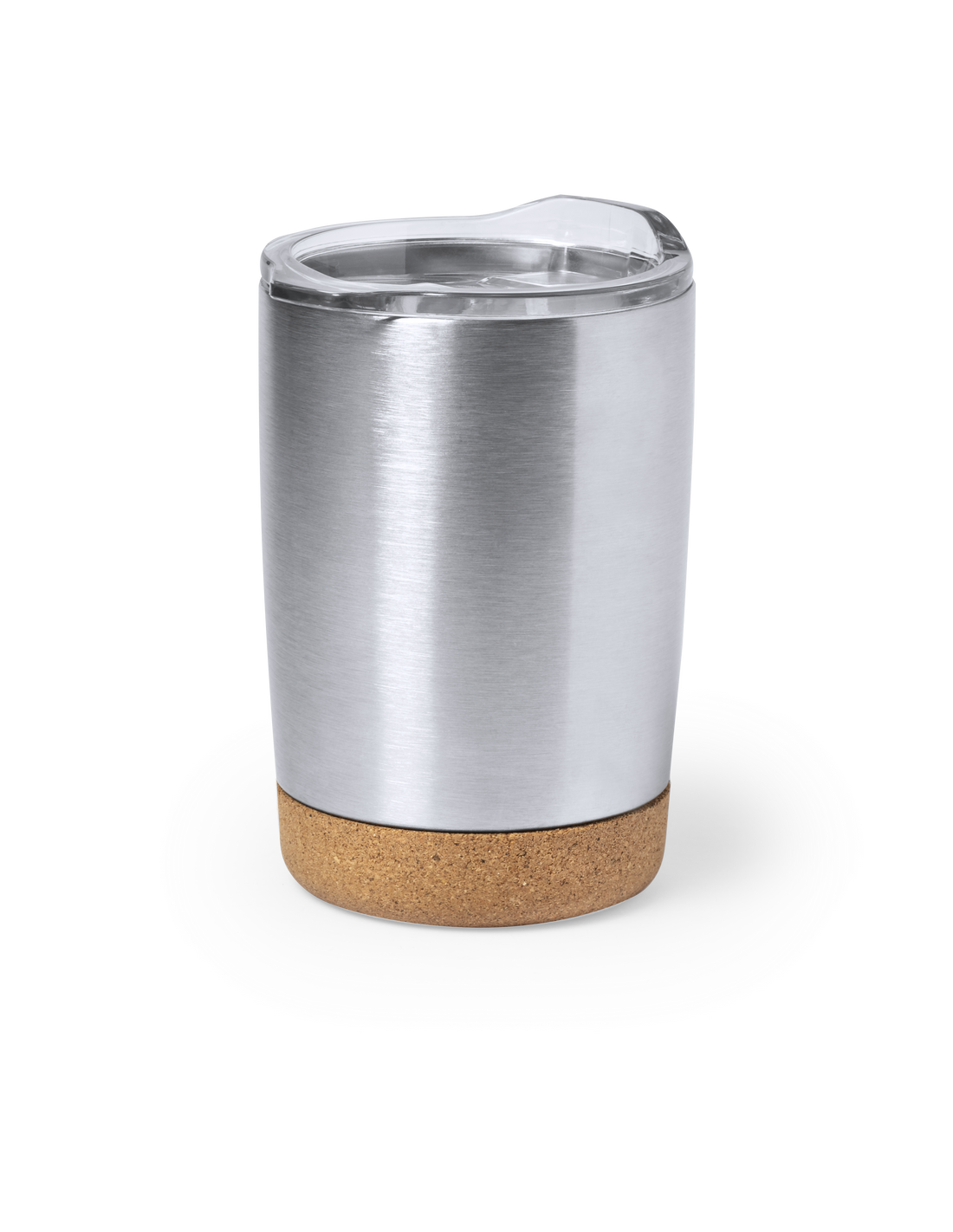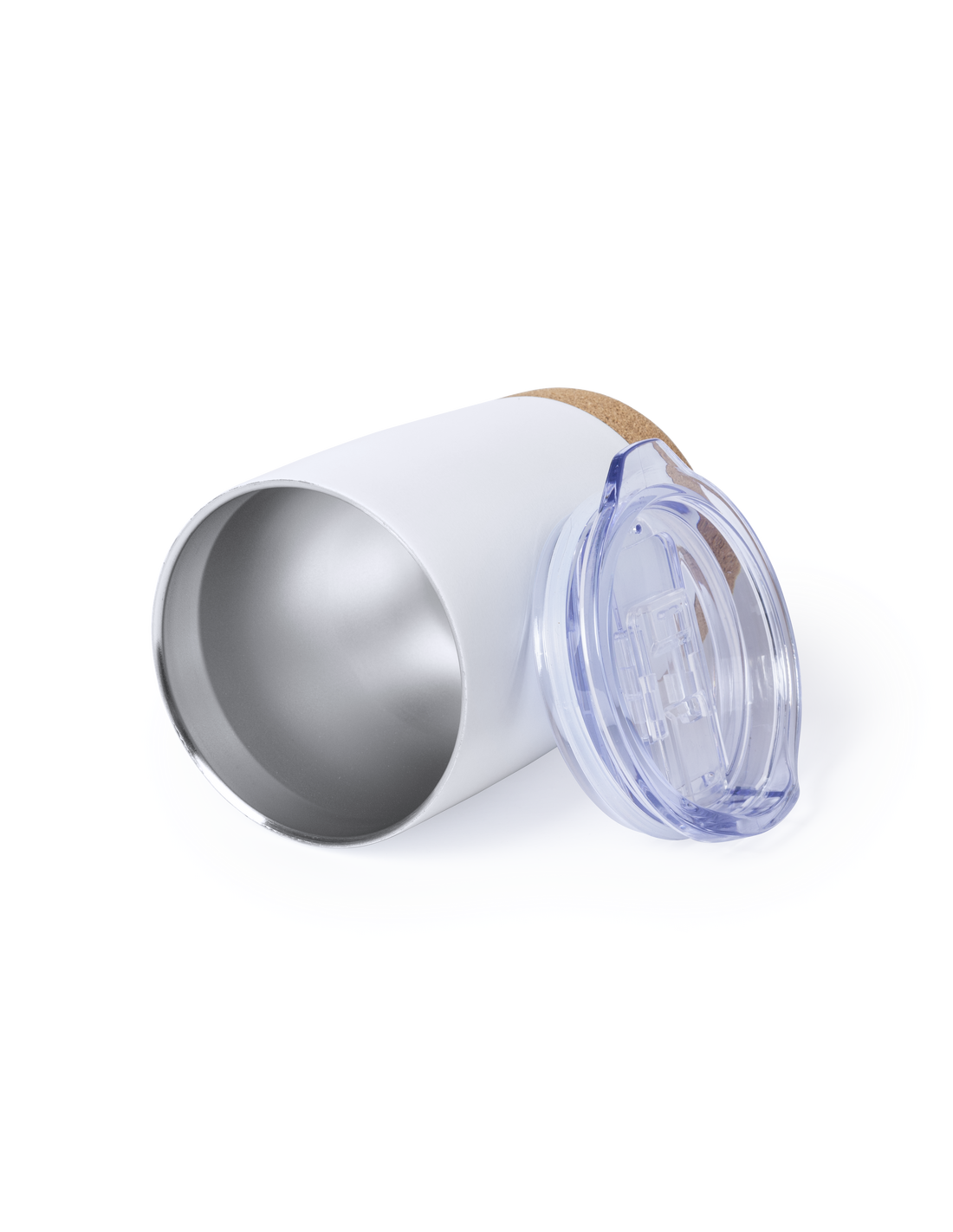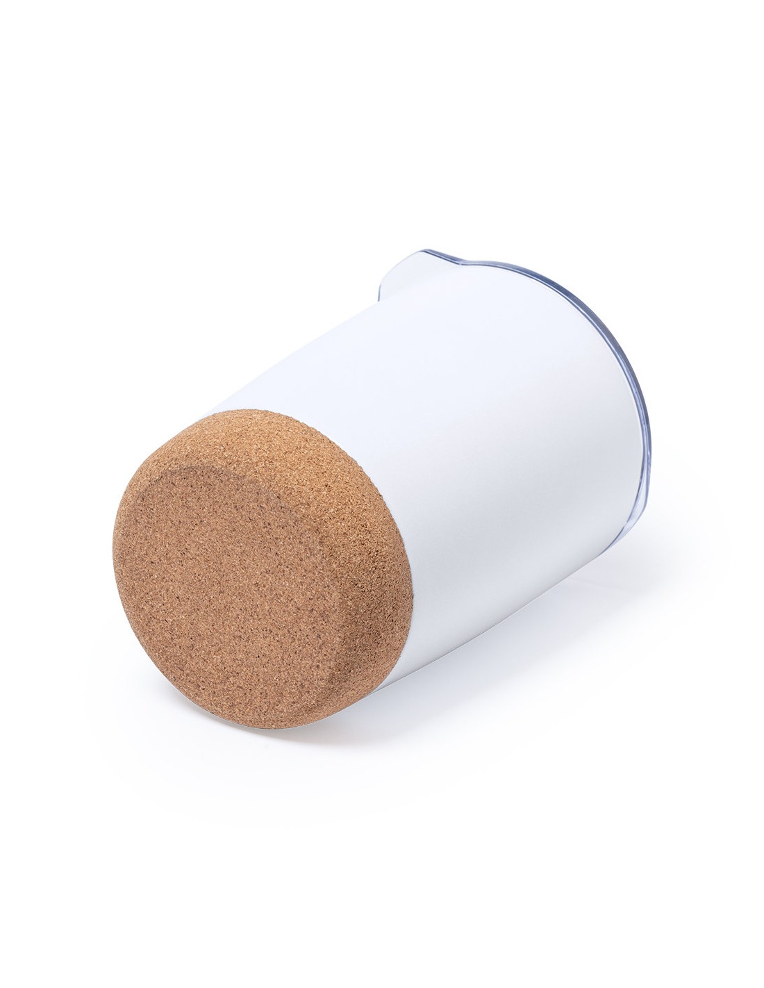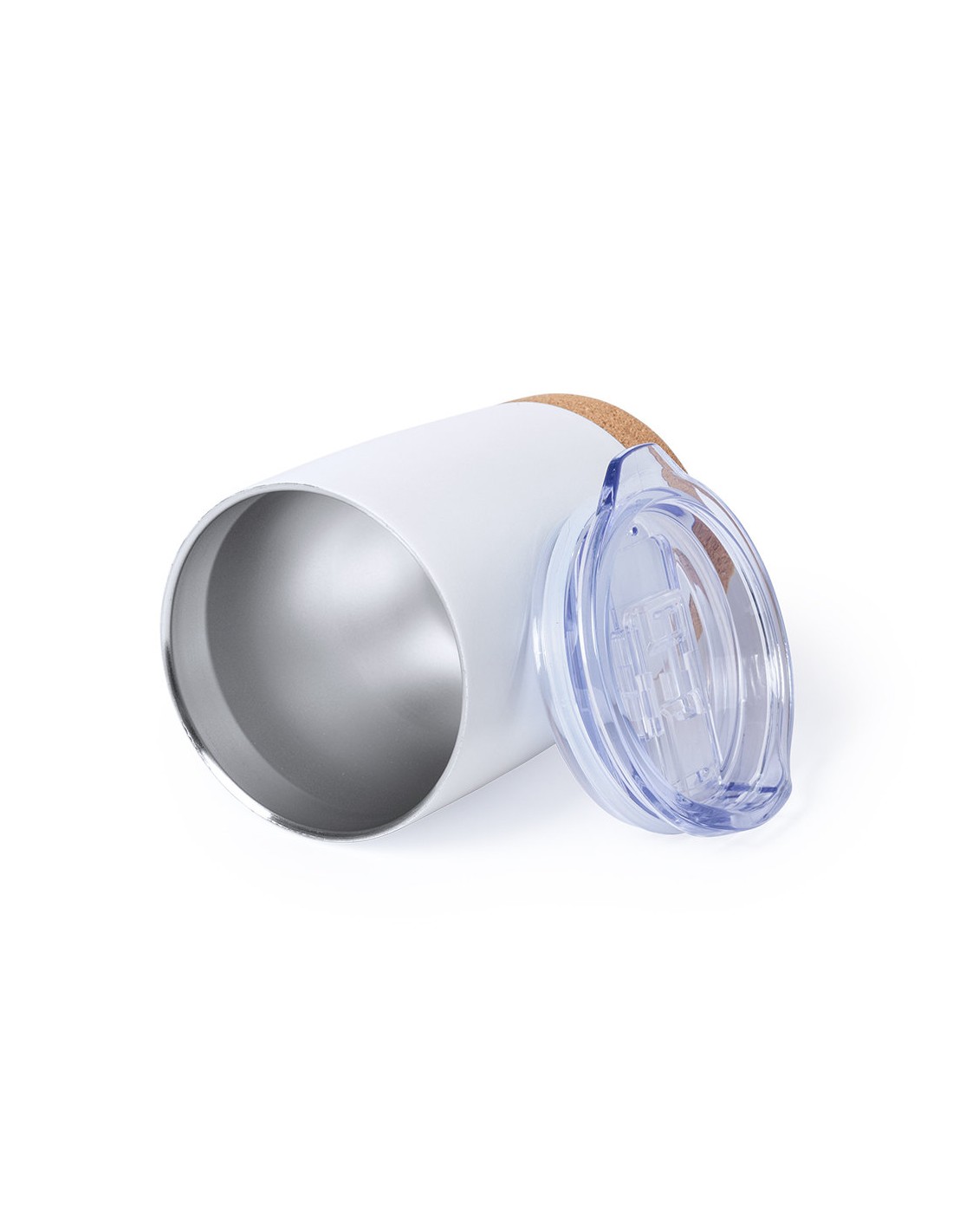 Vaso de sobremesa fabricado en combinación de base en corcho natural con cuerpo en acero inox de acabado blanco, de 380 ml de capacidad. Con doble cobertura para mejor y mas duradera conservación de la temperatura y original tapón dosificador con abrefácil transparente. Presentado en atractiva caja de diseño.