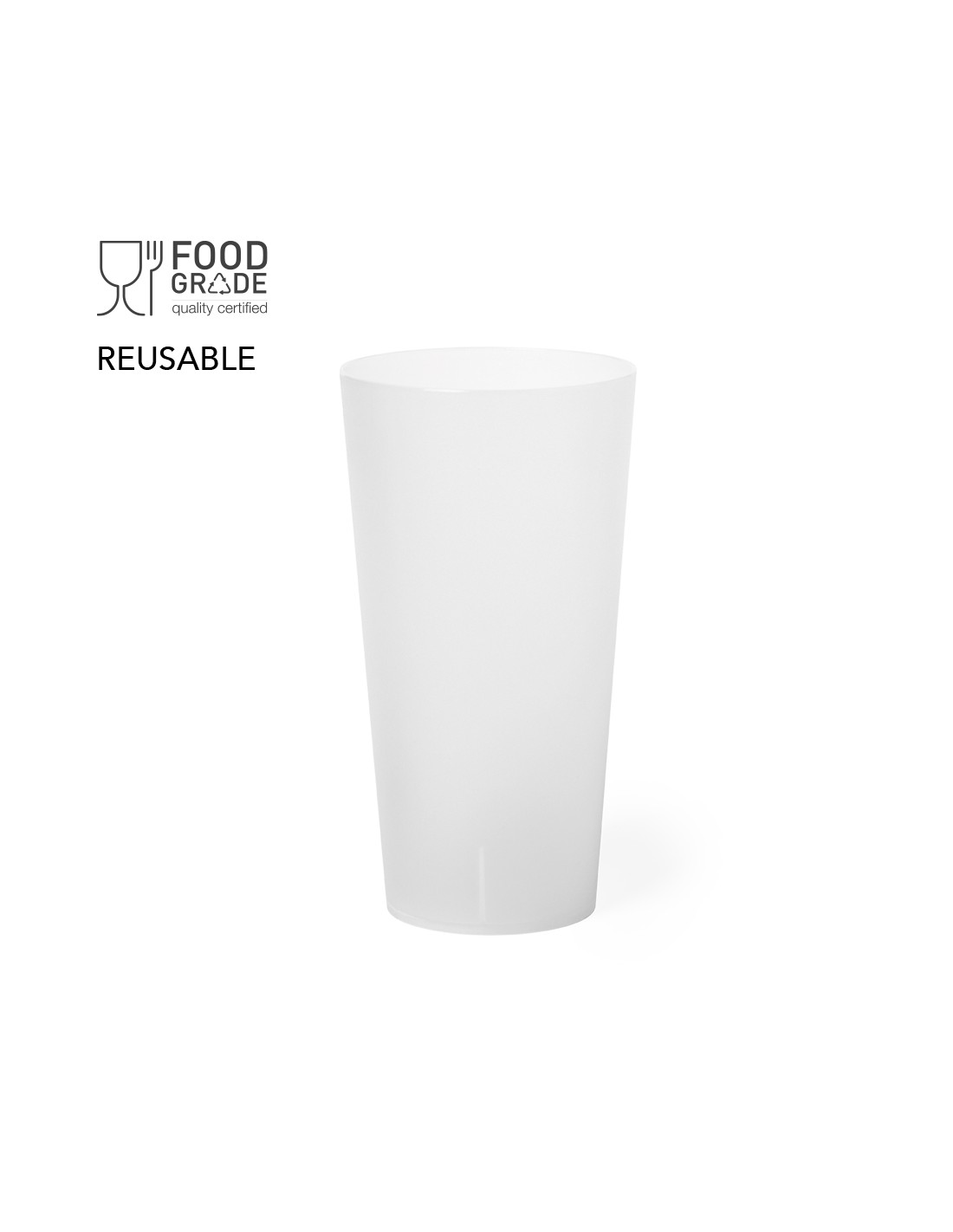 Vaso de PP de 400 ml, libre de BPA. Eco-reutilizable y de acabado frosted.Disponible manual de instrucciones en español e inglés.