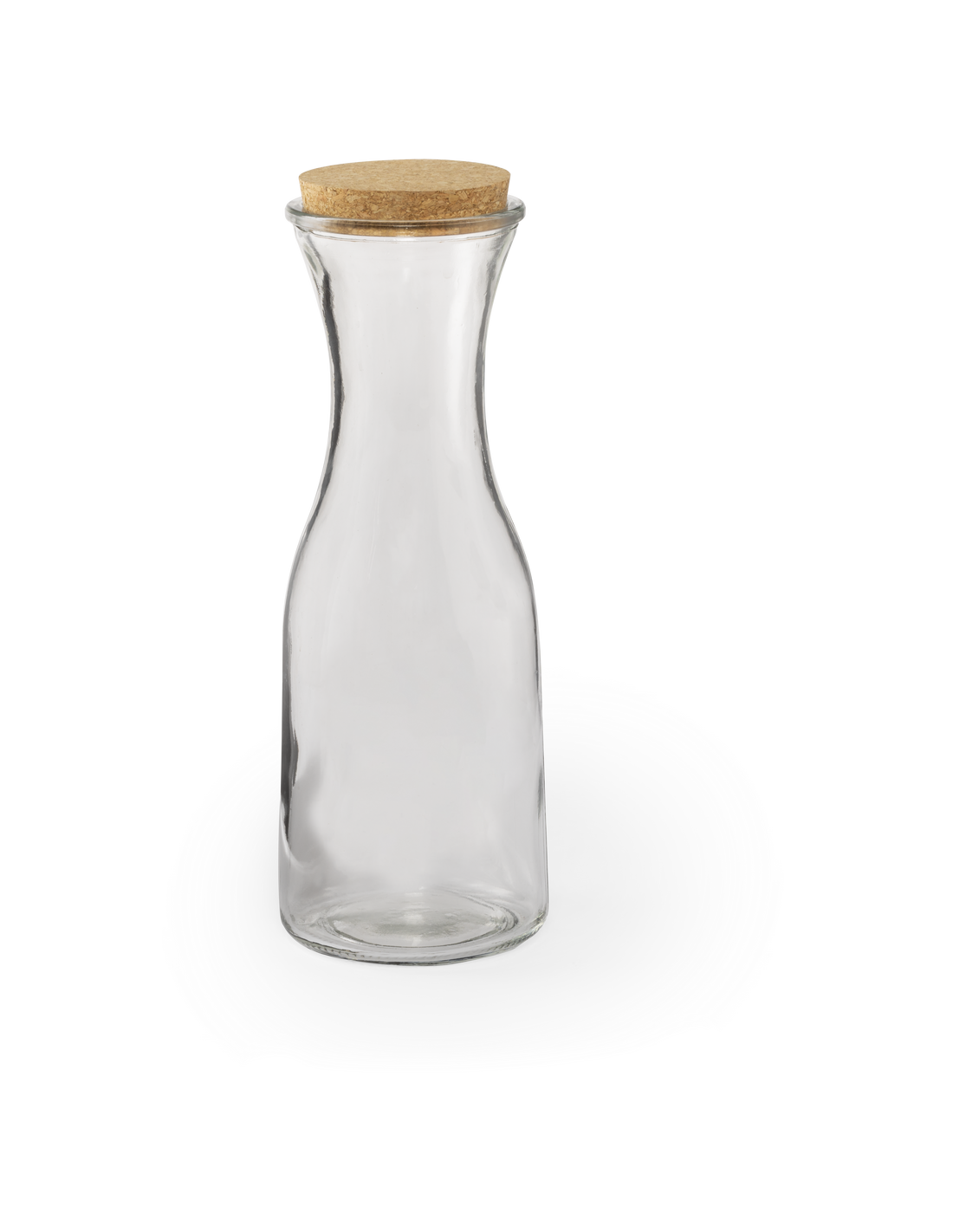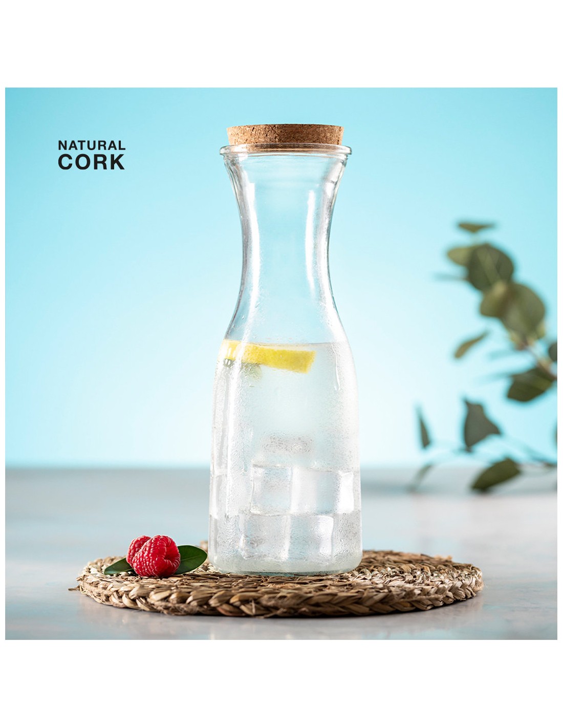 Botella de línea nature de 1l. Fabricada en cristal, con tapón de corcho natural y especialmente recomendada para agua y vino. Presentada en caja individual de diseño eco.