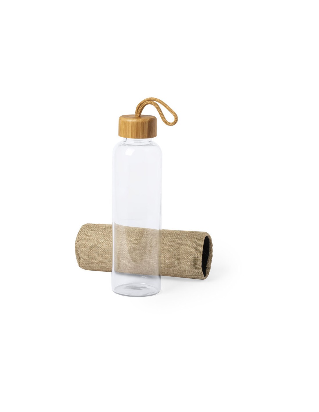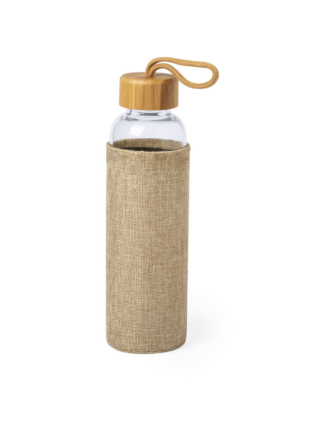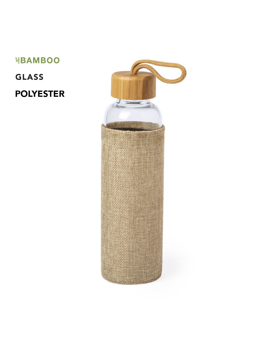 Bidón de línea nature en combinación de materiales bambú y cristal. 500 ml de capacidad, con tapón a rosca en bambú y funda en acabado de inspiración eco. Asa de transporte en color nature y presentado en atractiva caja de diseño eco. Disponible manual de instrucciones en español e inglés.