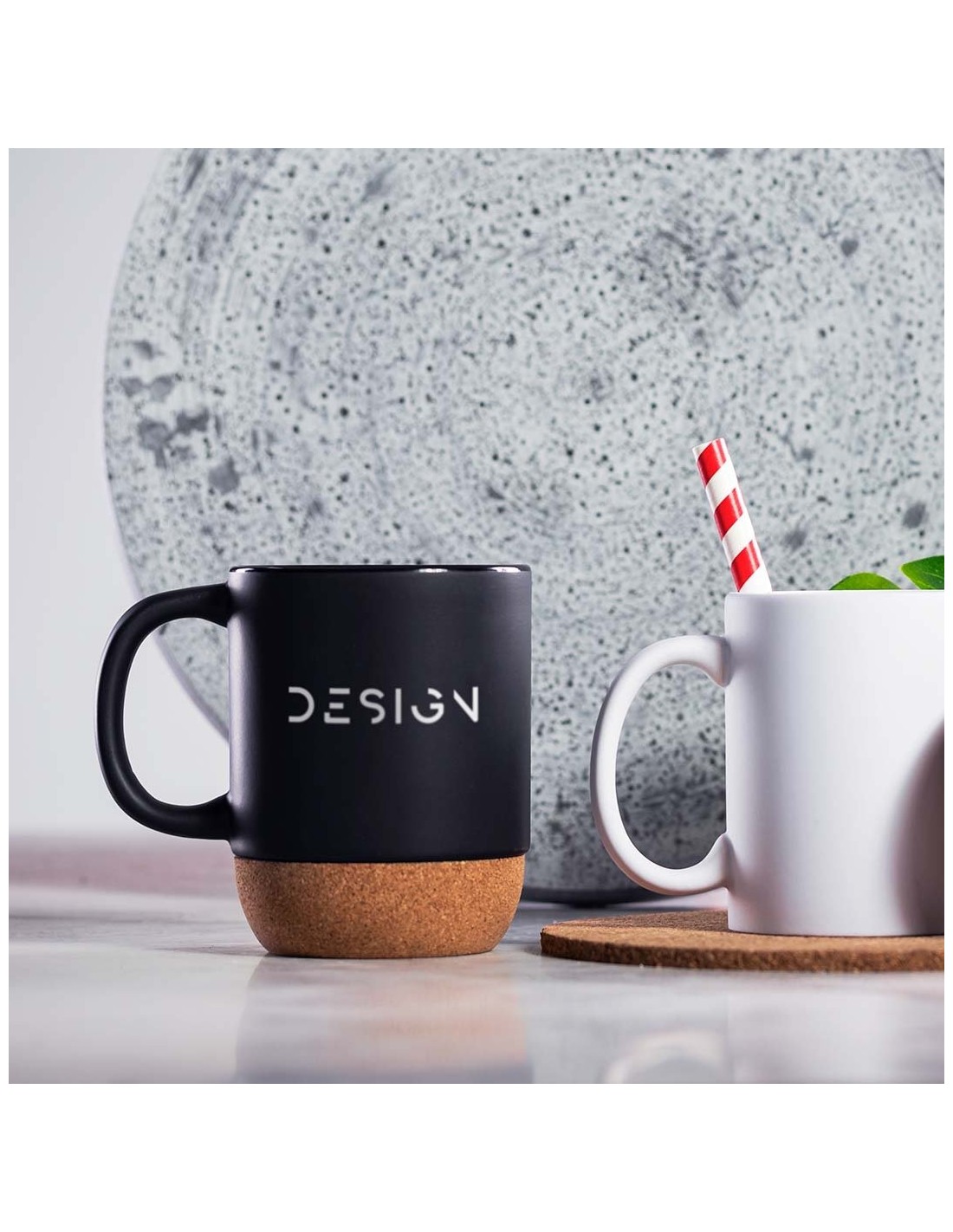 Taza de línea nature de 420 ml de capacidad. Fabricada en cerámica, con base de corcho natural. Disponible en elegantes acabados blanco y negro y presentada en caja individual de diseño eco.Disponible manual de instrucciones en español e inglés.