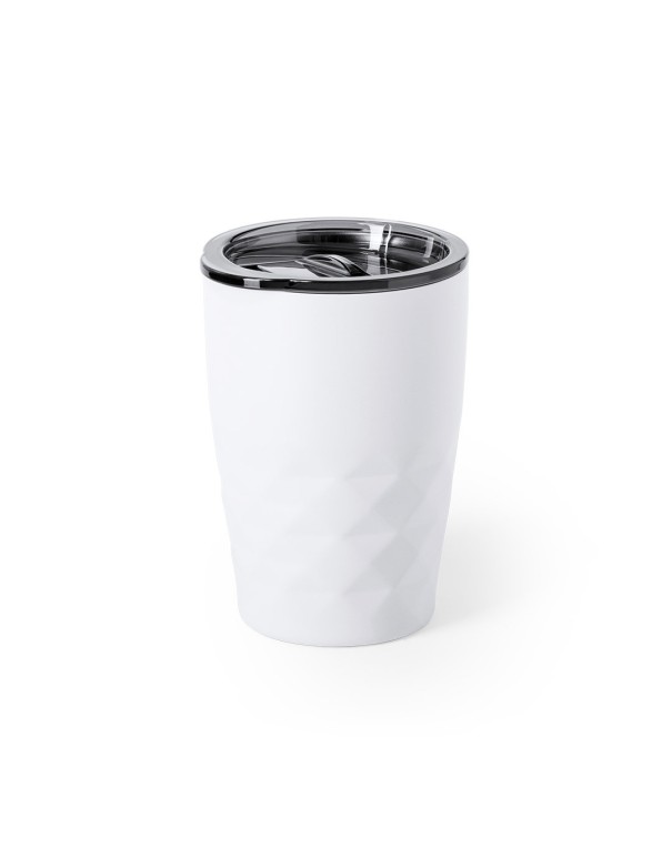 Vaso térmico fabricado en acero inoxidable, con doble capa y aislamiento de cobre al vacío, de 350ml de capacidad. Es ideal para tener en tu escritorio, mesa o en cualquier superficie donde disfrutar tranquilamente de tu bebida favorita. El mismo le permite mantener el calor y el frio durante un tiempo más prolongado, llegando a las 8 y 24 horas respectivamente. Incluye tapa con dosificador y abrefácil.