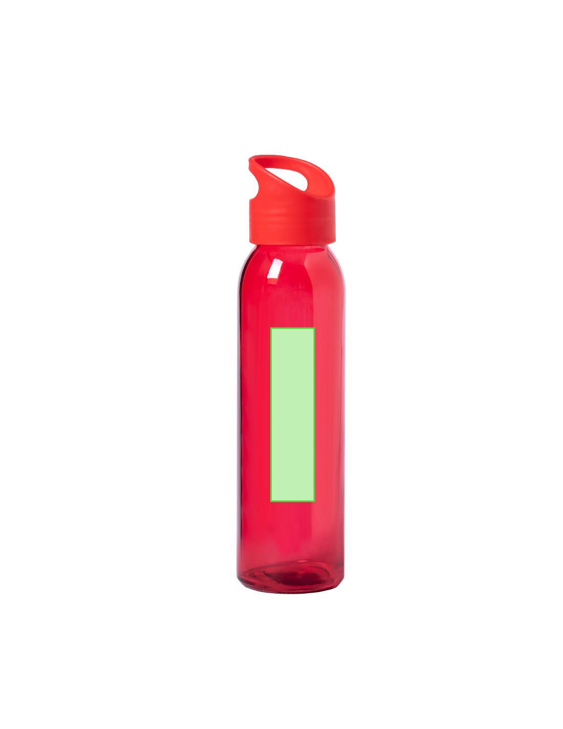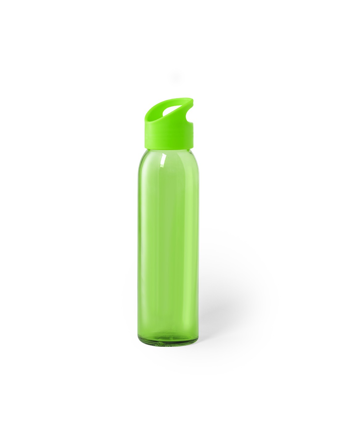 Bidón de 470ml de capacidad. Fabricado con cuerpo de cristal y disponible en variada gama de colores. Tapón a rosca en PP, libre de BPA, a juego. Presentado en caja individual de atractivo diseño.