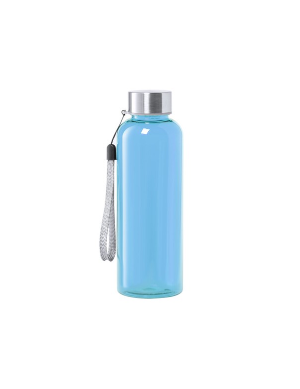 Bidón de 500ml de capacidad. Libre de BPA, con cuerpo fabricado en tritán transparente y de alta resistencia al calor. Tapón a rosca en acero inox, con cordón de transporte. Disponible en variada gama de colores.