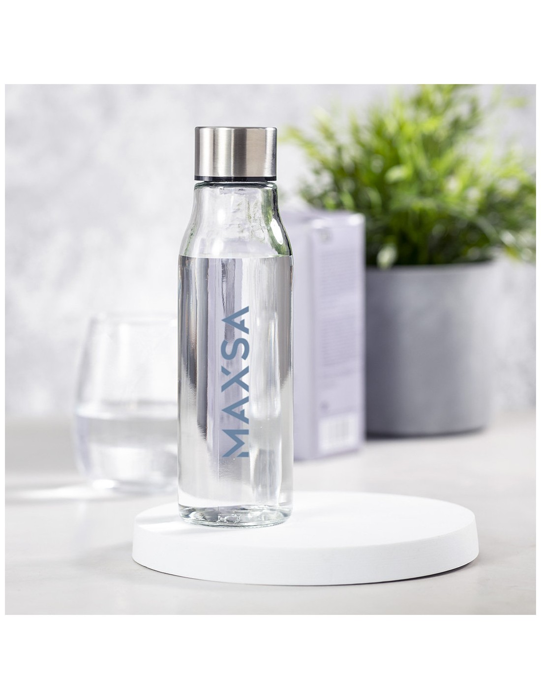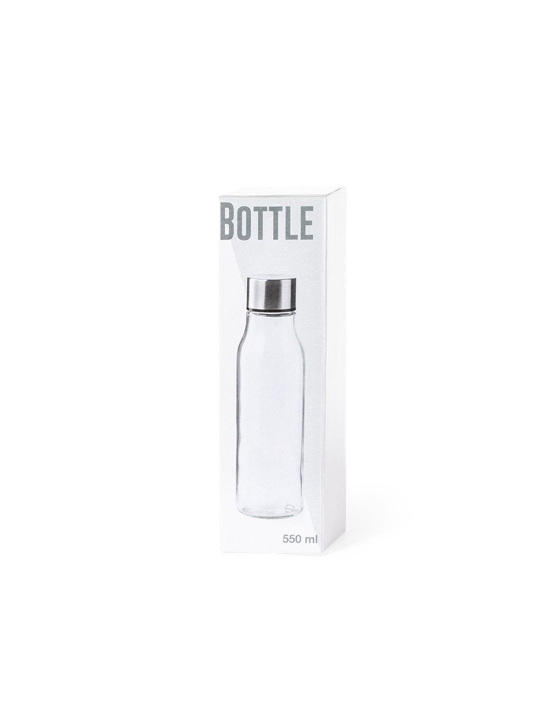 Bidón en alta calidad, de 550ml de capacidad. Fabricado en cristal de borosilicato, que ofrece una resistencia y durabilidad excepcionales, alargando su vida útil y pudiendo ser reutilizado infinidad de veces. Tapón en acero inox, libre de BPA. Presentado en atractiva caja de diseño.