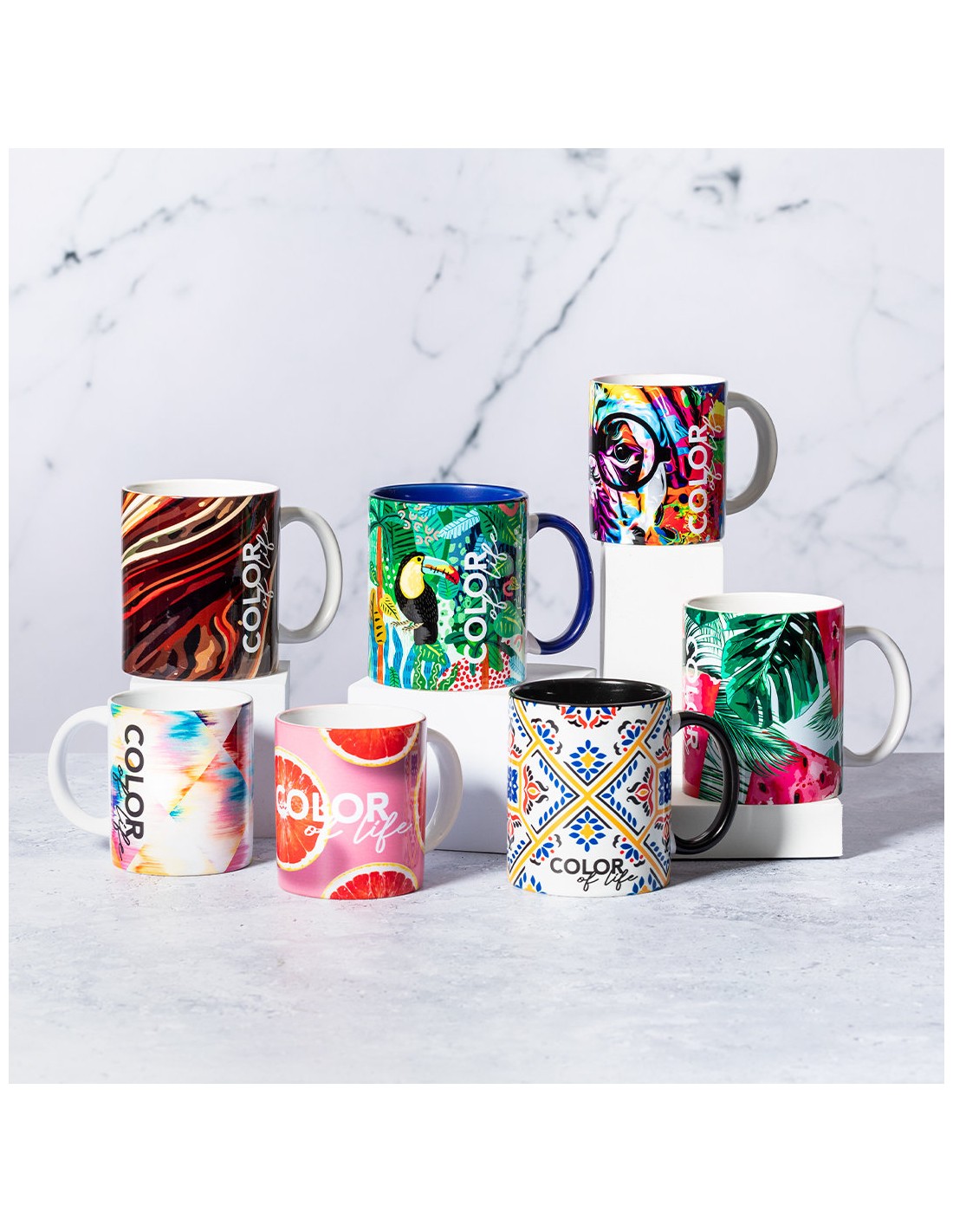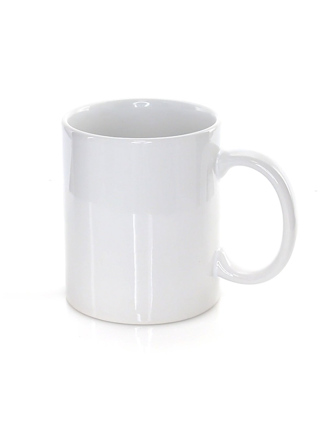 Taza de cerámica de 350ml. Diseño en color blanco especialmente diseñada para la sublimación, pudiendo transferir todo tipo de diseños a todo color. Cada taza viene presentada en caja individual kraft.