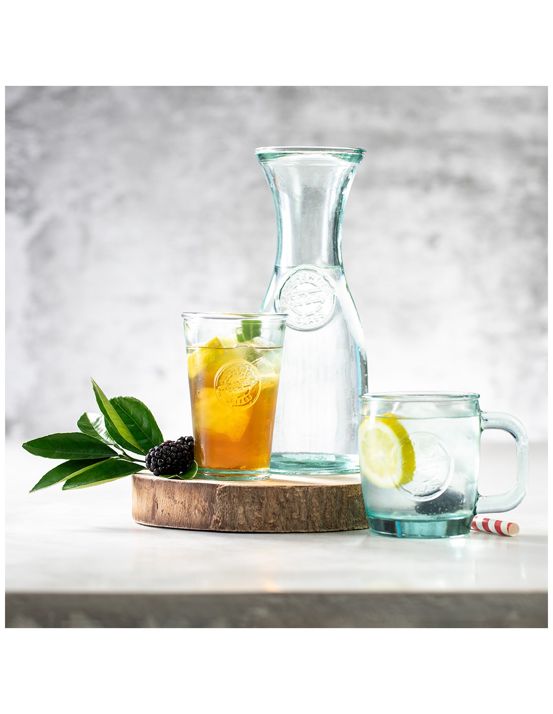 Taza de línea nature de 400 ml de capacidad. De fabricación europea y hecha en vidrio reciclado GRS (Global Recycled Standard / Estándar de Reciclaje Global), que garantiza el origen reciclado del material usado para fabricar el producto.