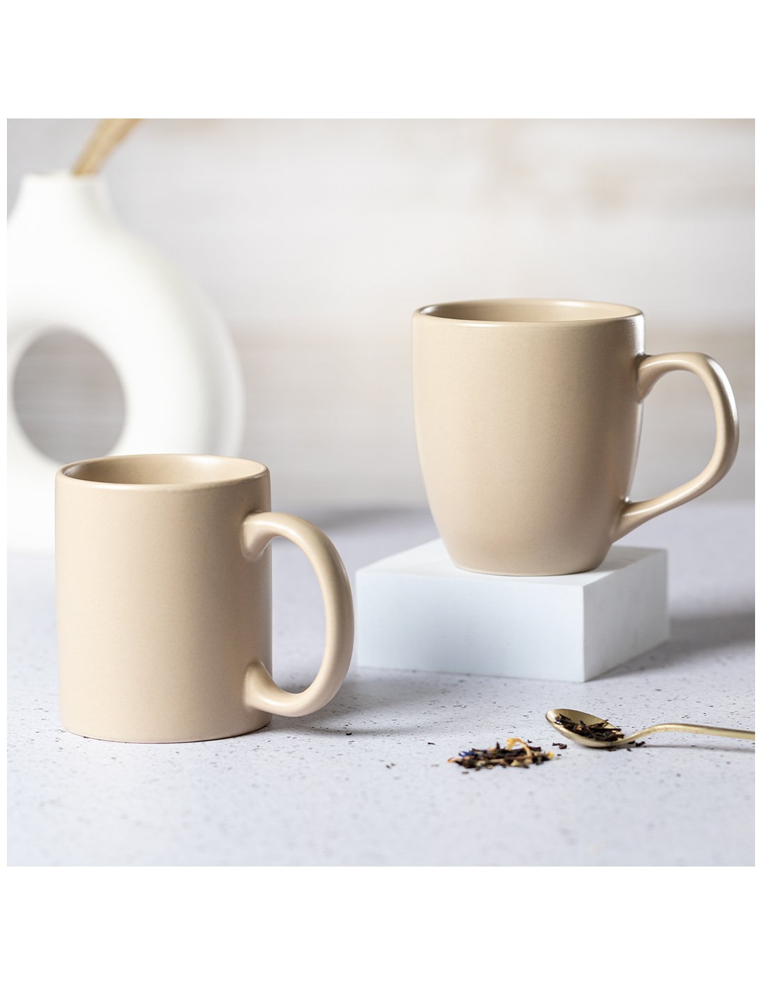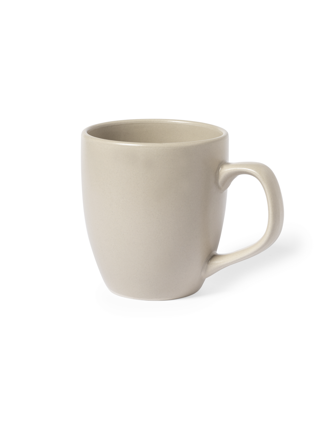 Taza de cerámica de 470ml de capacidad. De acabado mate y en color natural. Presentada en caja individual.