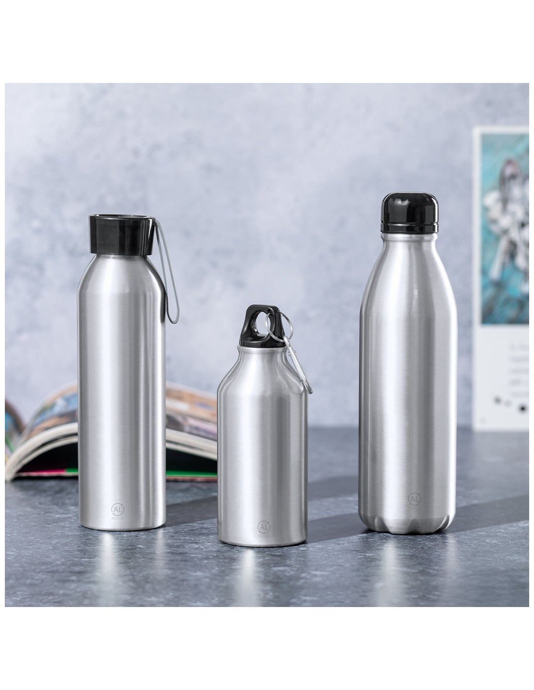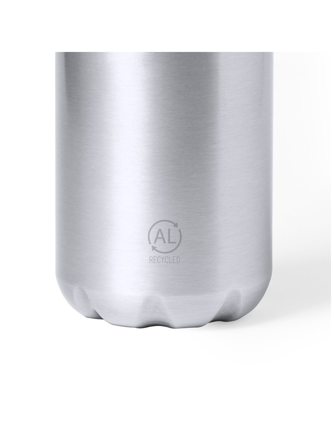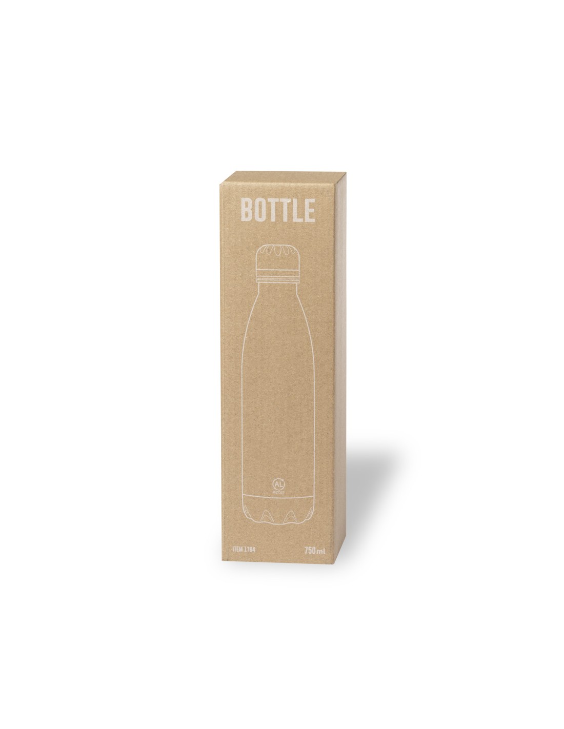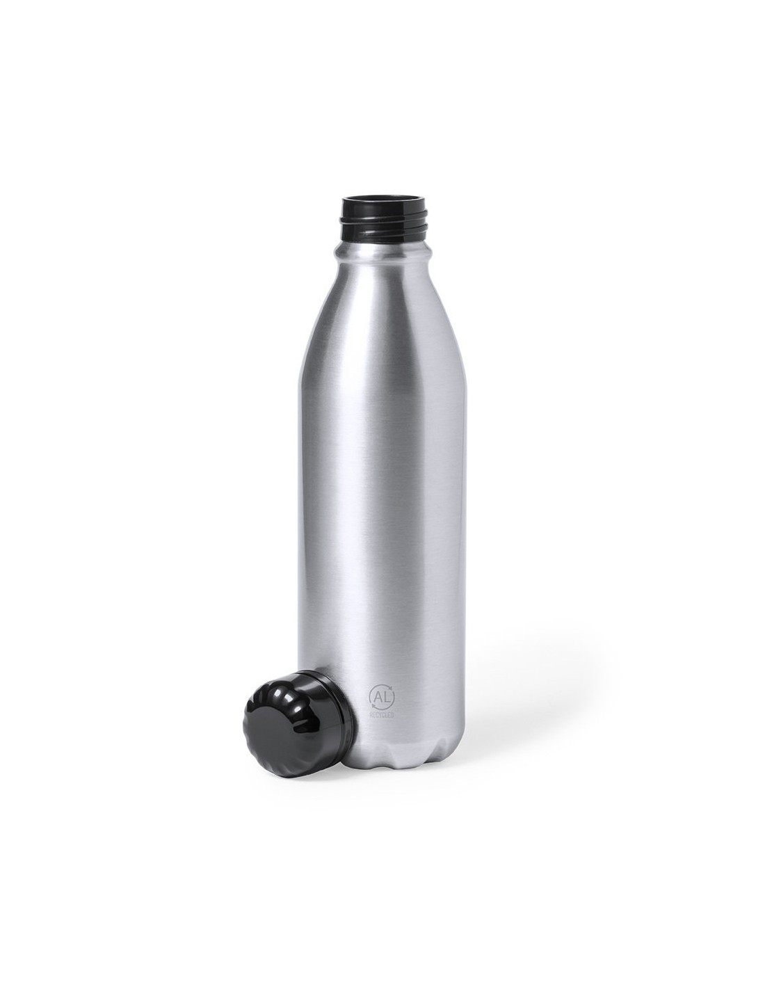 Bidón de 750 ml de capacidad. Fabricado en aluminio reciclado, con posibilidades de reciclaje casi infinitas, sin perder sus propiedades originales y consumiendo menos energía en este proceso. De acabado mate, con tapón a rosca en negro y libre de BPA. Presentado en caja individual de diseño kraft.Disponible manual de instrucciones en español e inglés.