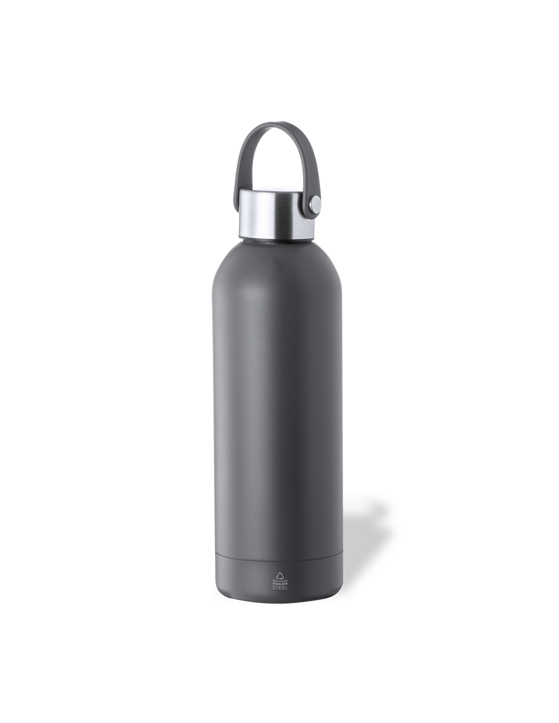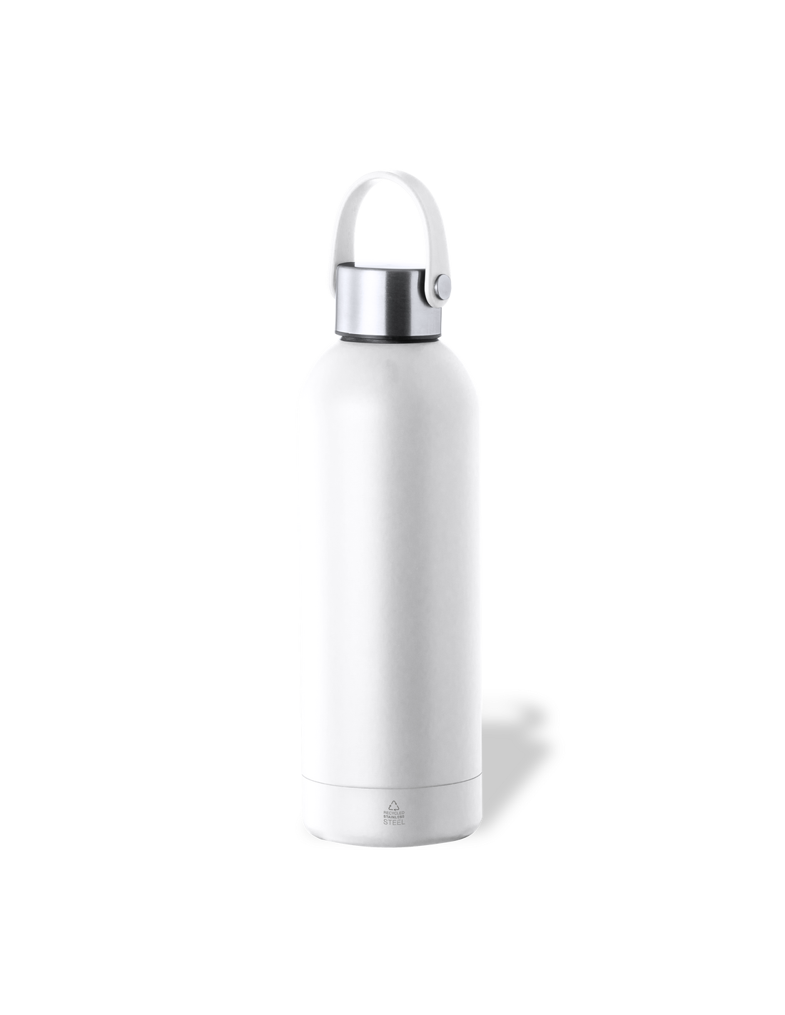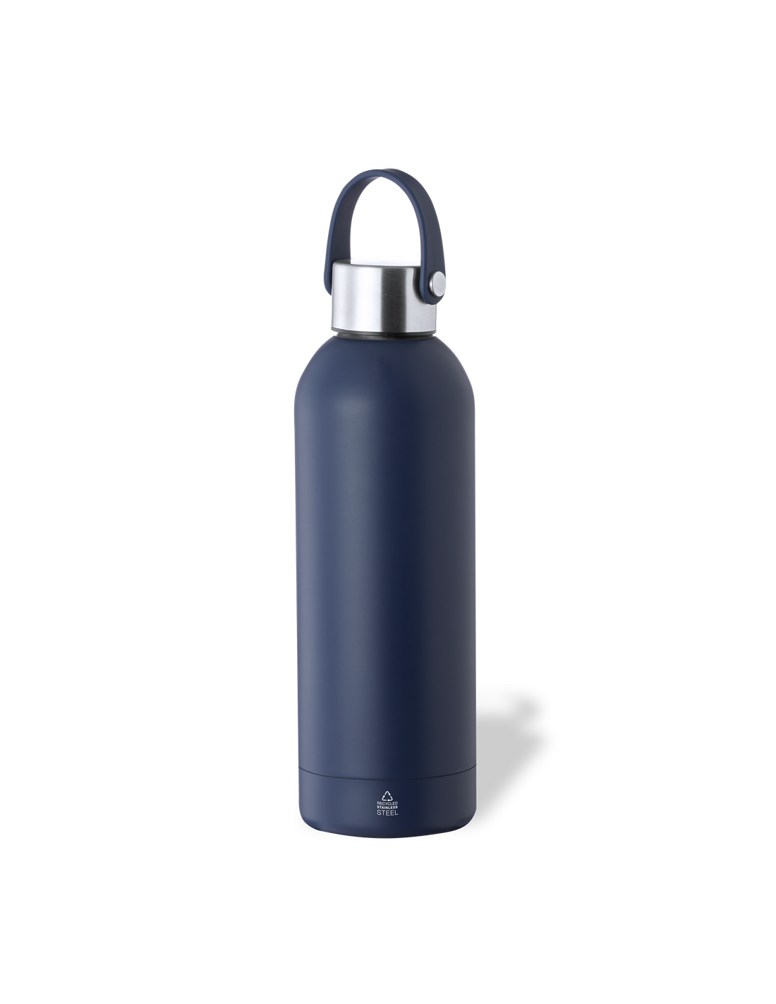 Bidón térmico de 500 ml de capacidad, fabricado en acero inox reciclado de doble pared, con tapón a rosca en mate y asa integrada a juego. Disponible en variada gama de colores satinados, libre de BPA y presentado en caja individual de diseño kraft. El acero es uno de los materiales más demandados y que puede encontrarse casi en todas partes, desde productos de uso diario a grandes construcciones. Con innumerables propiedades, entre las que cabe destacar la durabilidad y su alto grado de reutilización, convirtiéndolo en una alternativa muy valorada en soluciones de sostenibilidad. Debidamente tratado, permite obtener nuevos recursos de infinita utilización.