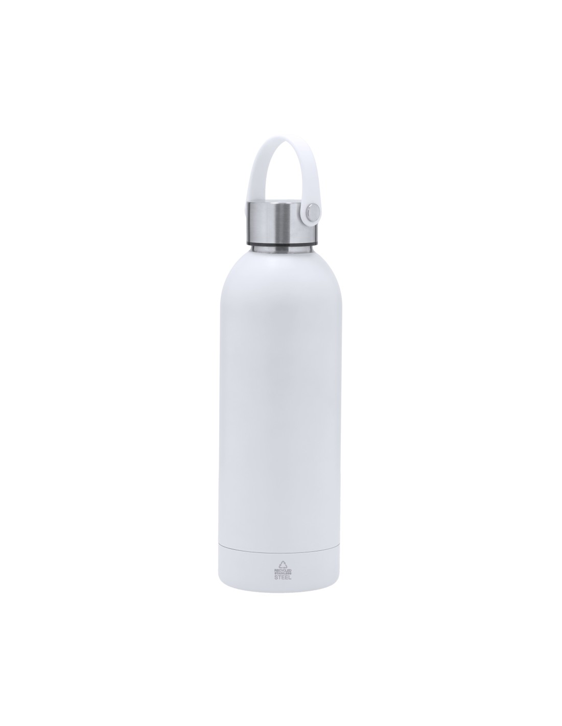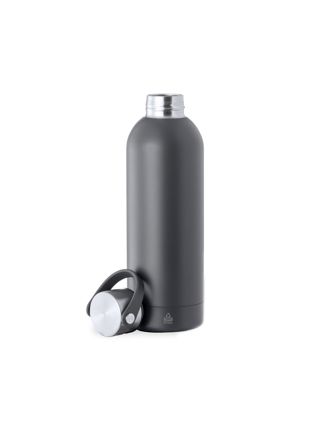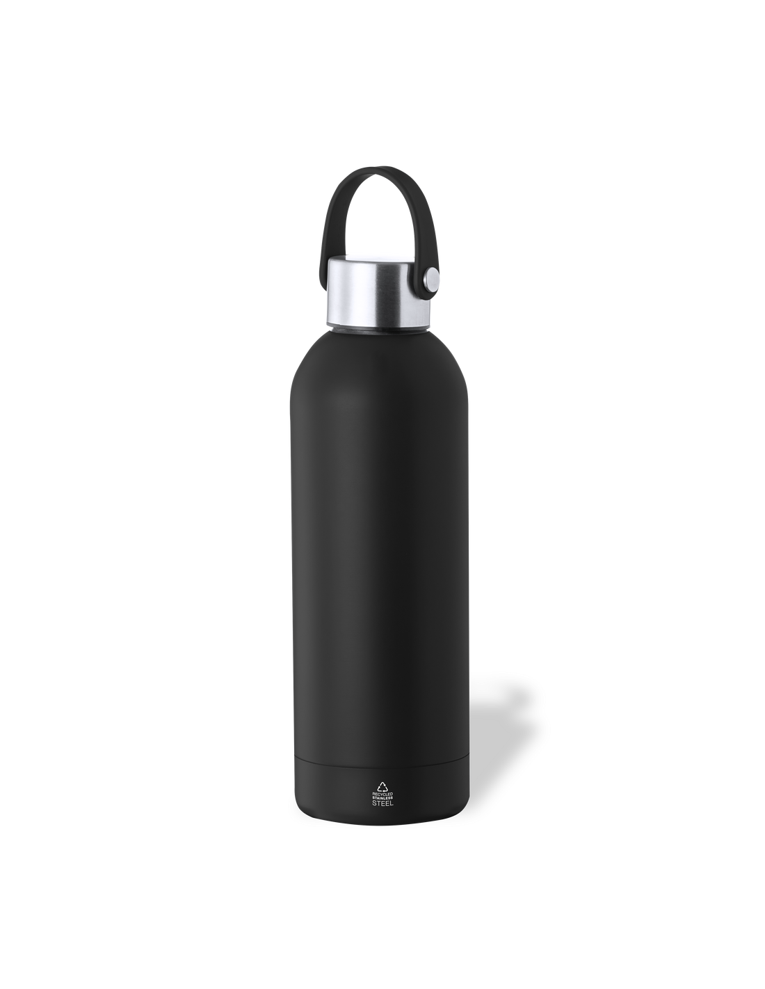Bidón térmico de 500 ml de capacidad, fabricado en acero inox reciclado de doble pared, con tapón a rosca en mate y asa integrada a juego. Disponible en variada gama de colores satinados, libre de BPA y presentado en caja individual de diseño kraft. El acero es uno de los materiales más demandados y que puede encontrarse casi en todas partes, desde productos de uso diario a grandes construcciones. Con innumerables propiedades, entre las que cabe destacar la durabilidad y su alto grado de reutilización, convirtiéndolo en una alternativa muy valorada en soluciones de sostenibilidad. Debidamente tratado, permite obtener nuevos recursos de infinita utilización.