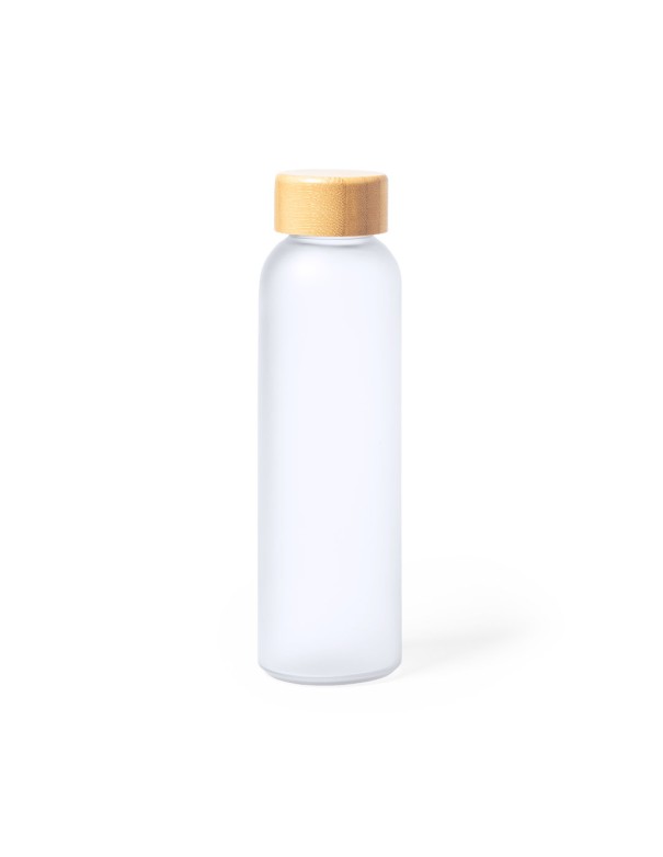 Bidón de línea nature y 500 ml de capacidad, fabricado especialmente para marcaje en sublimación. Cuerpo fabricado en cristal, con tapón a rosca de bambú y libre de BPA. Presentado en caja individual de diseño eco.
