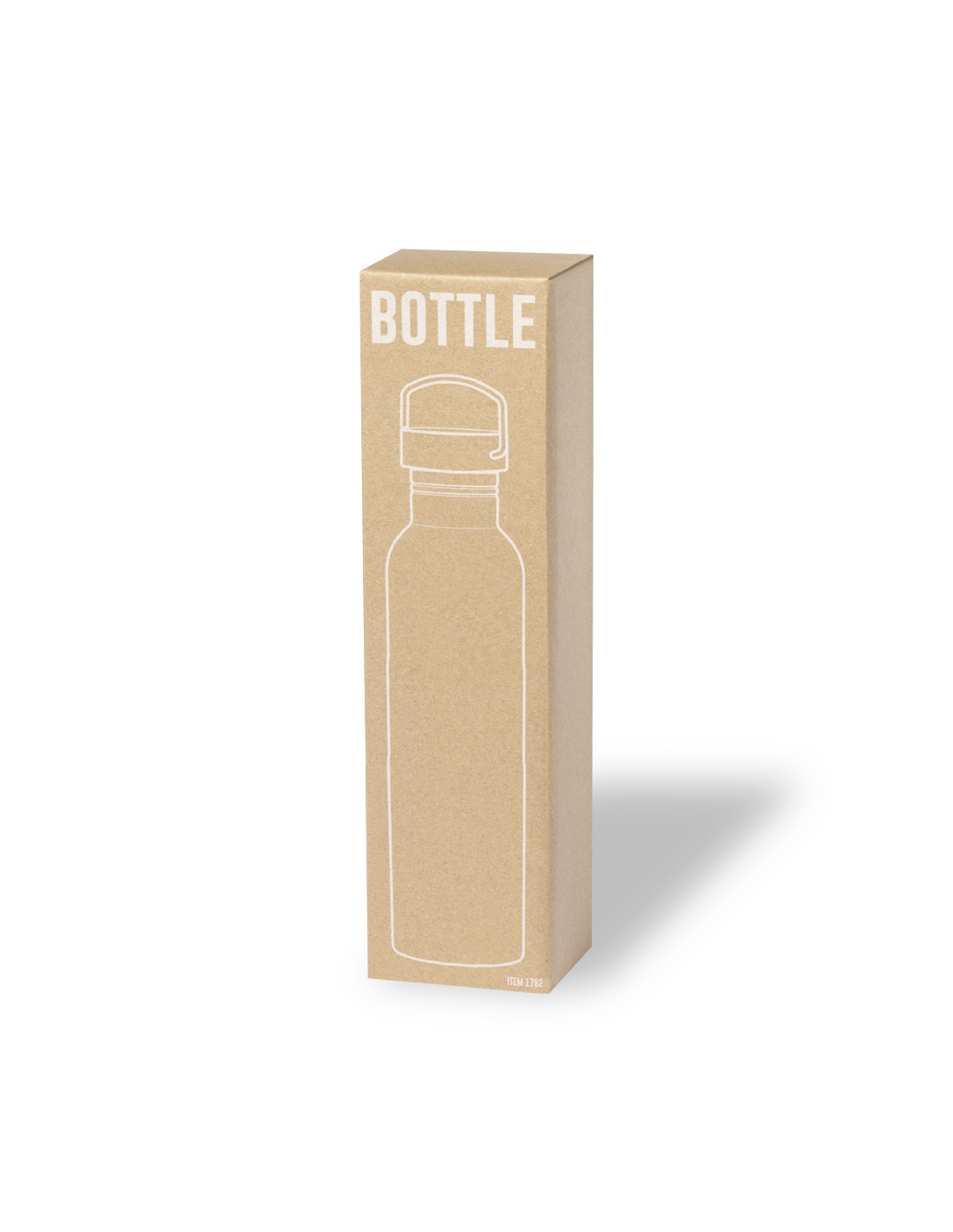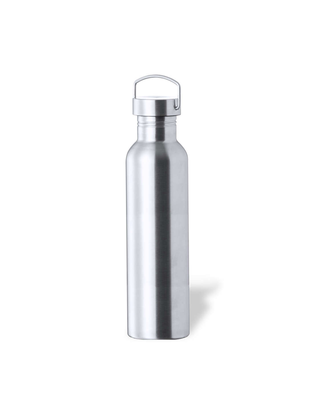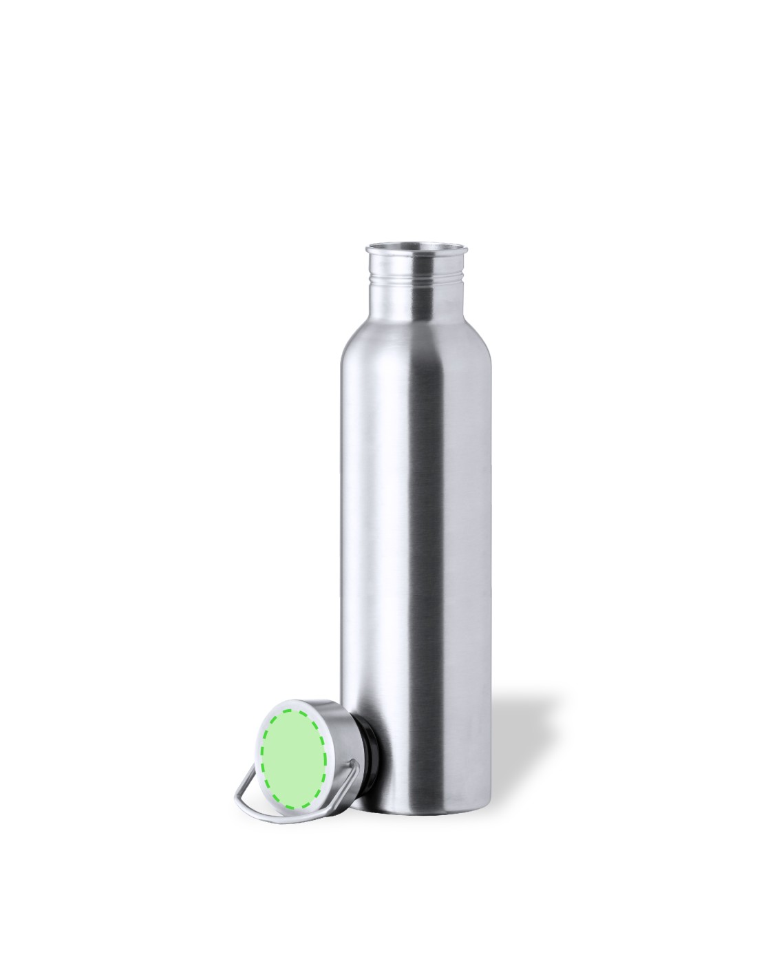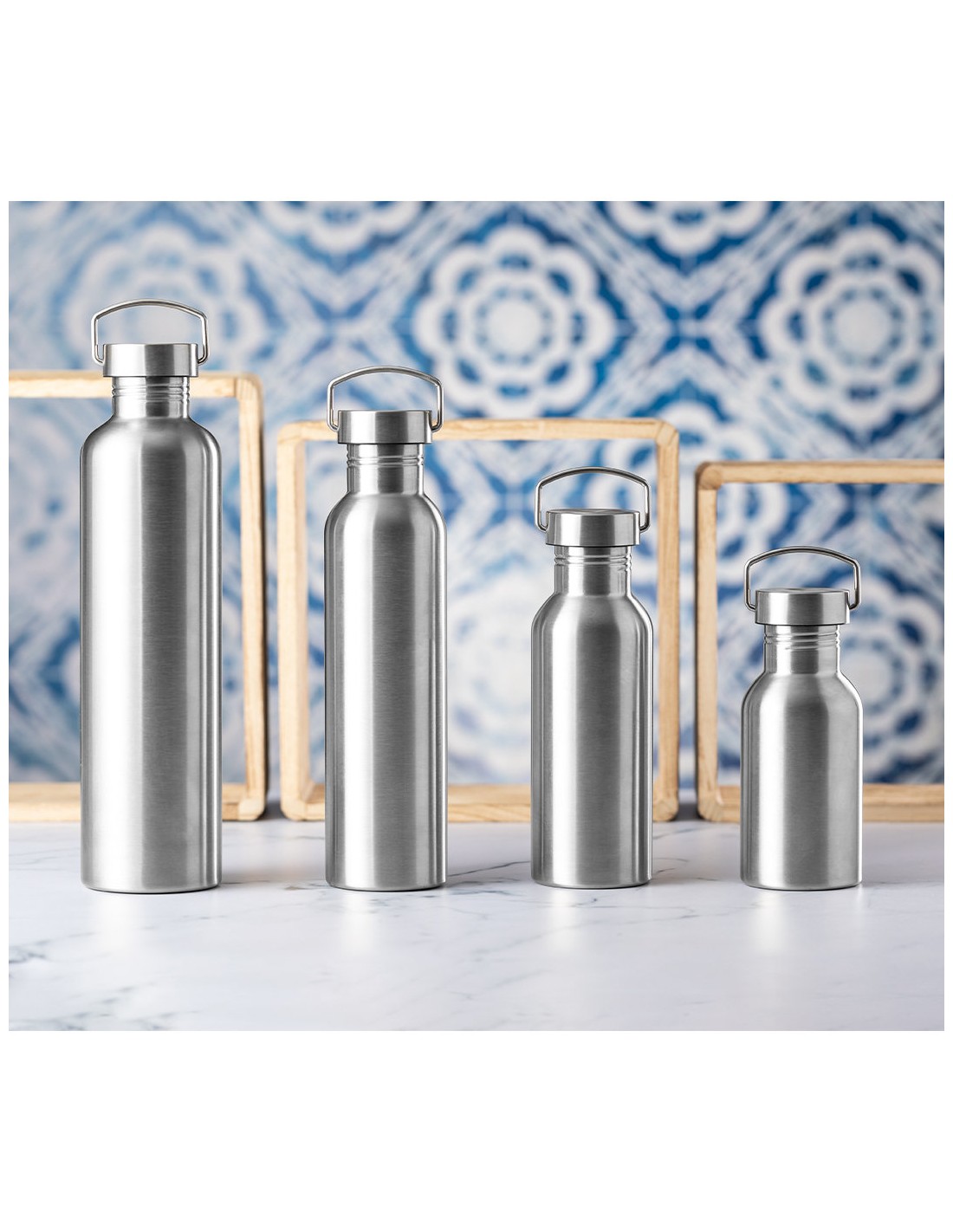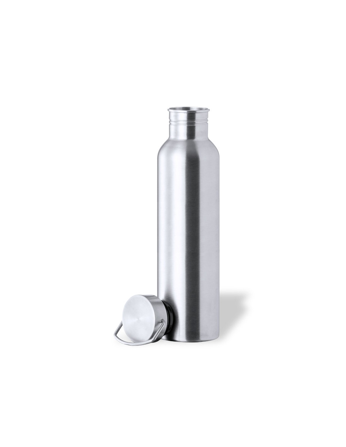 Bidón de 1 l de capacidad, fabricado en acero inox de acabado brillo. Con original tapón a rosca en acero inox, a juego y con asa integrada. Libre de BPA y presentado en caja individual de diseño kraft.Disponible manual de instrucciones en español e inglés.
